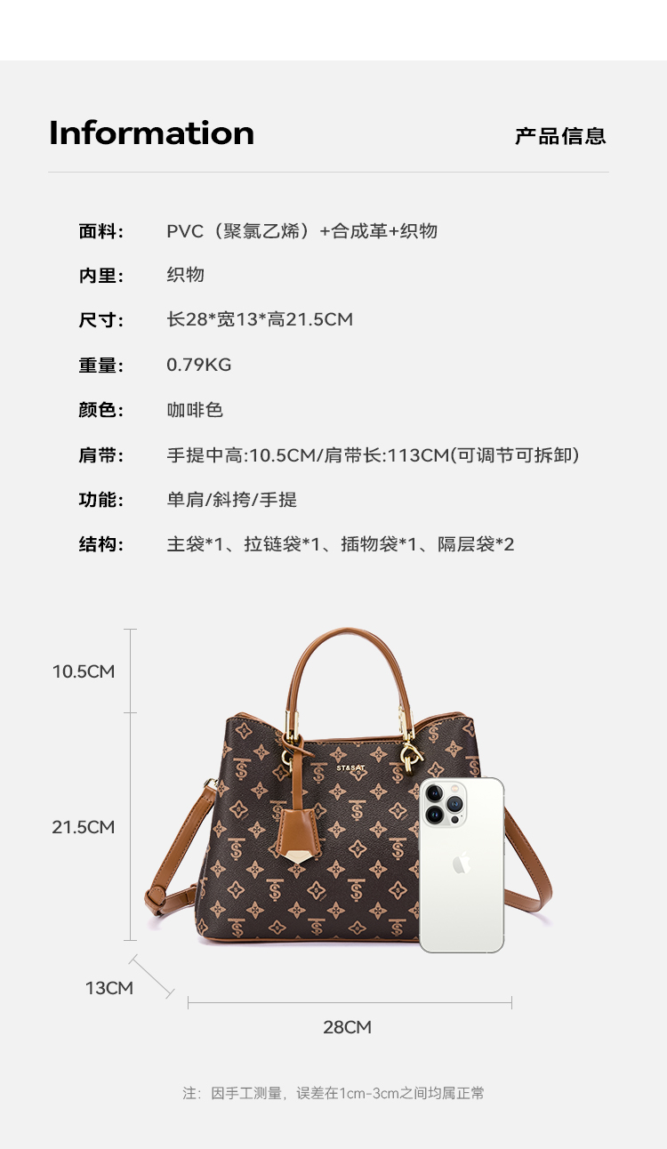 星期六经典老钱风大容量通勤手提包SSC521A02M