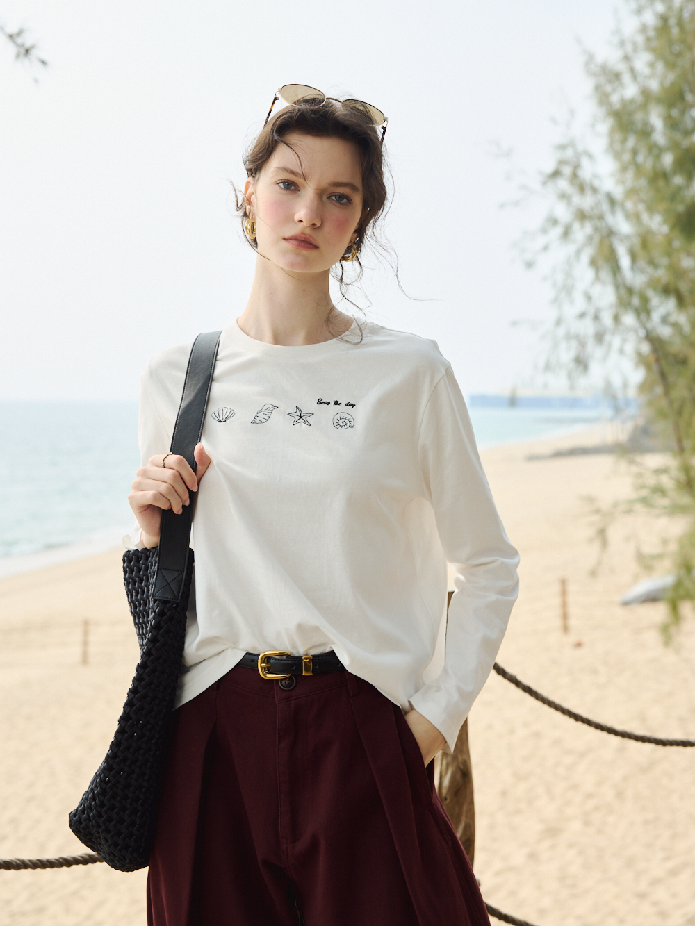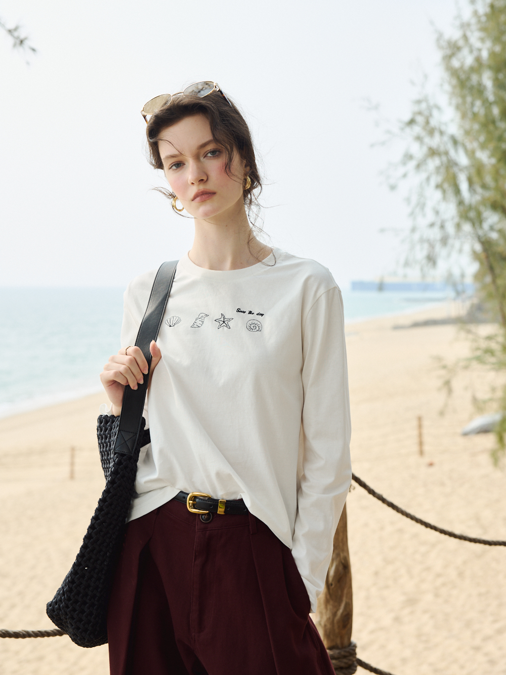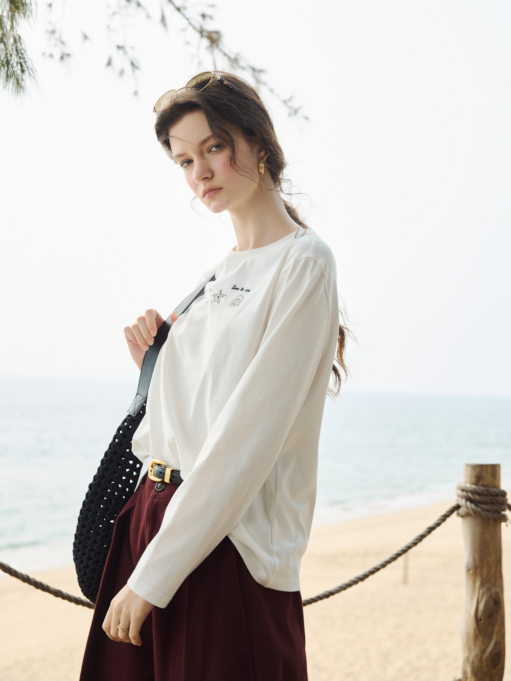OLrain欧芮儿2026米白色T恤百搭宽松透气休闲上衣