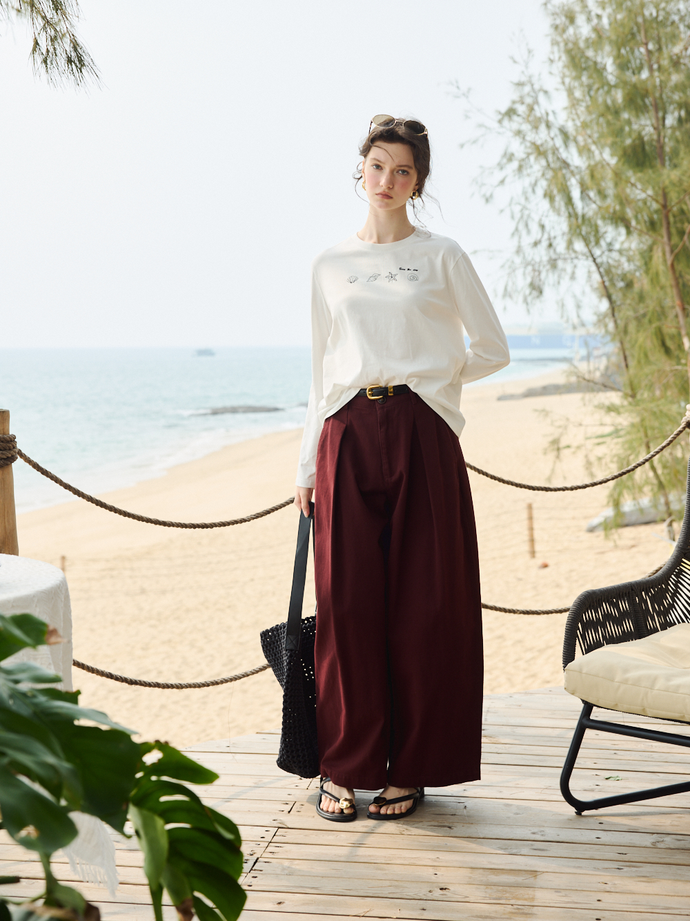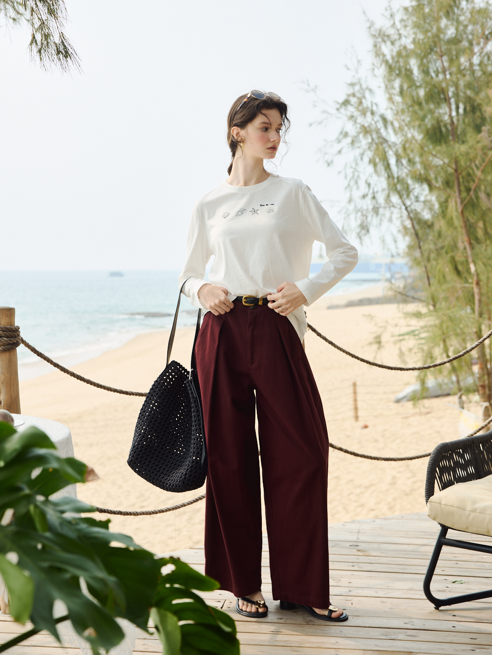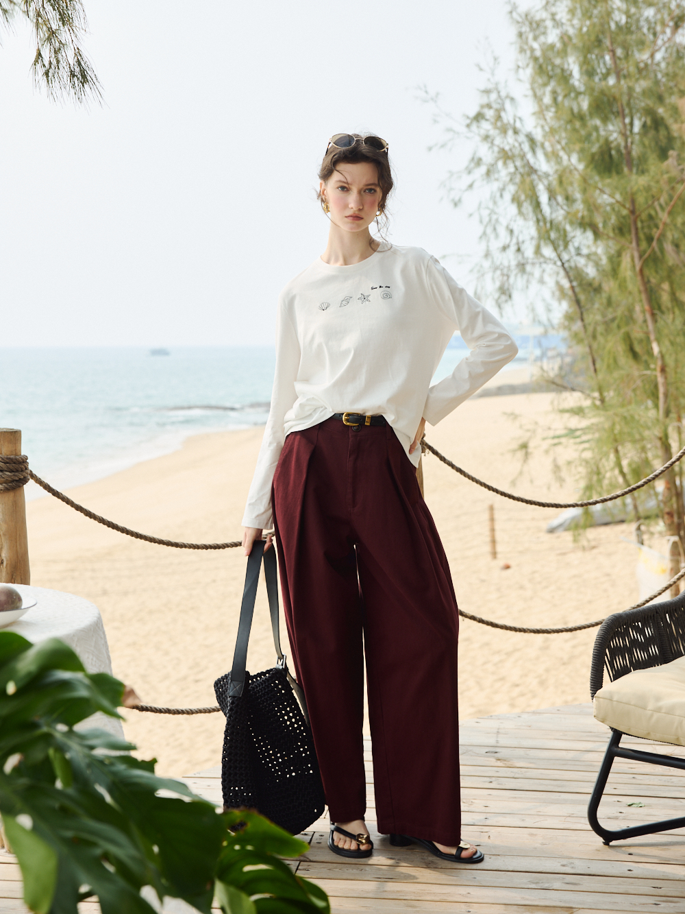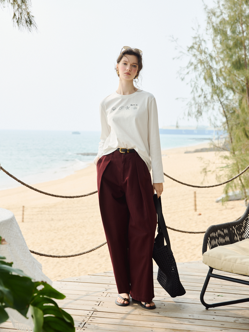 OLrain欧芮儿2026米白色T恤百搭宽松透气休闲上衣