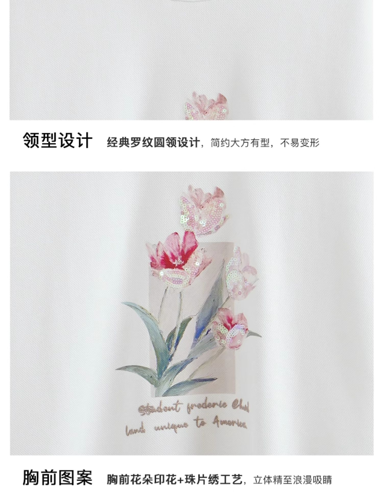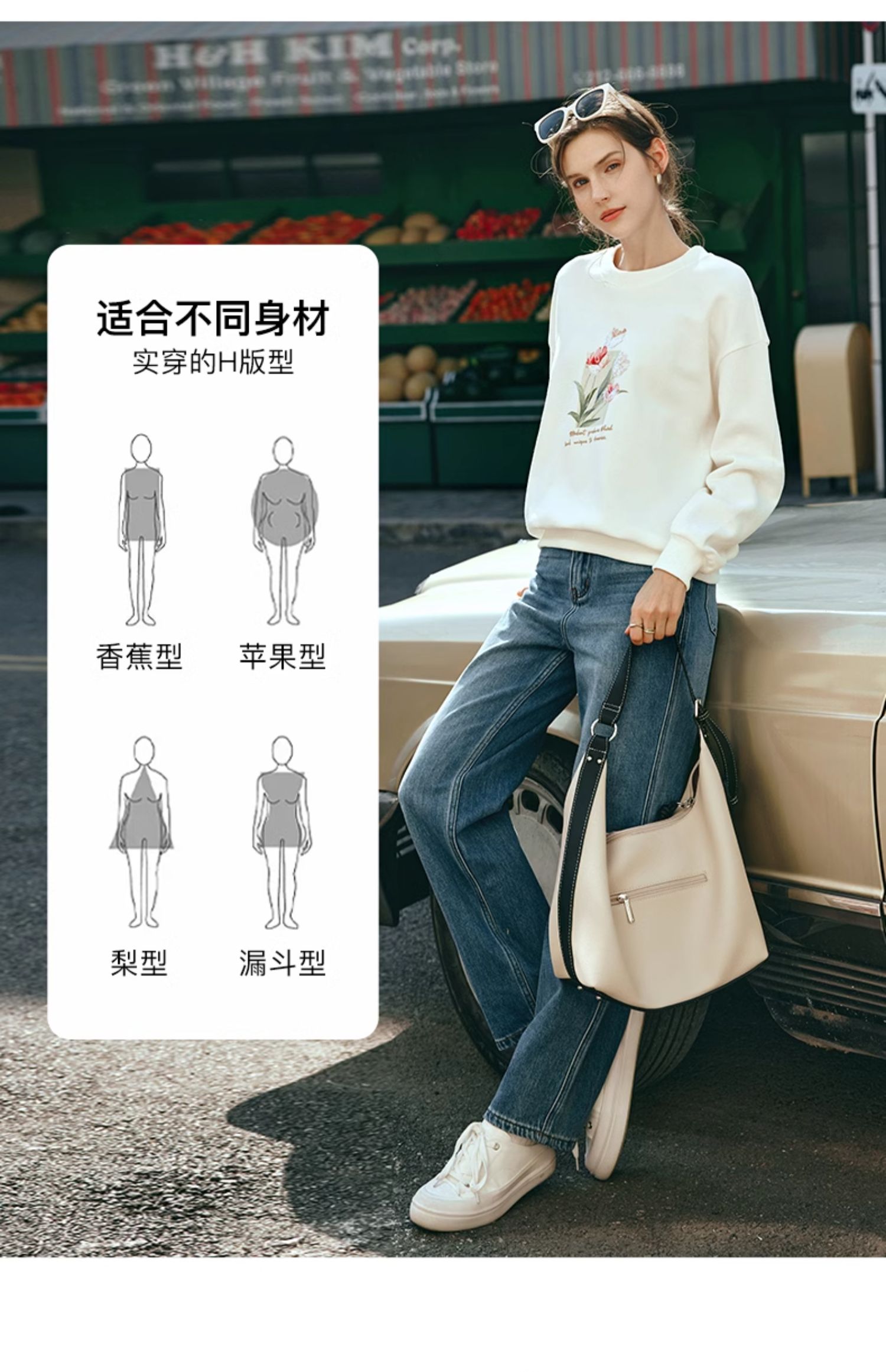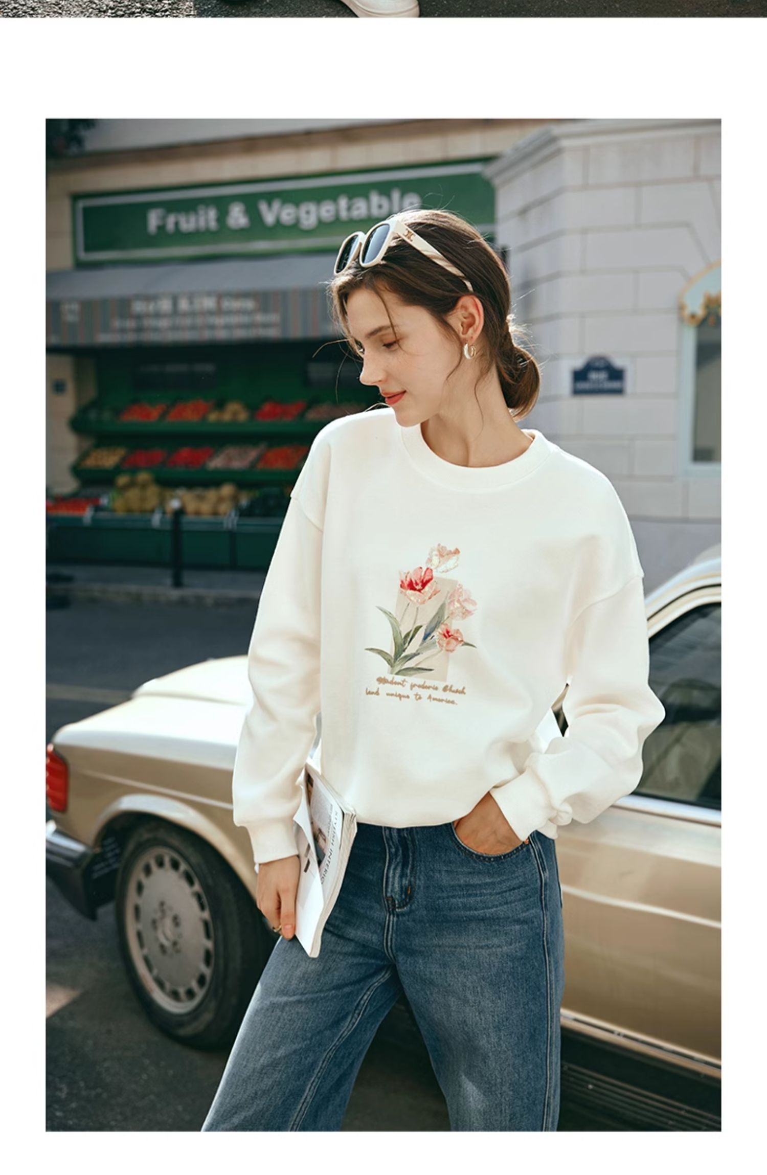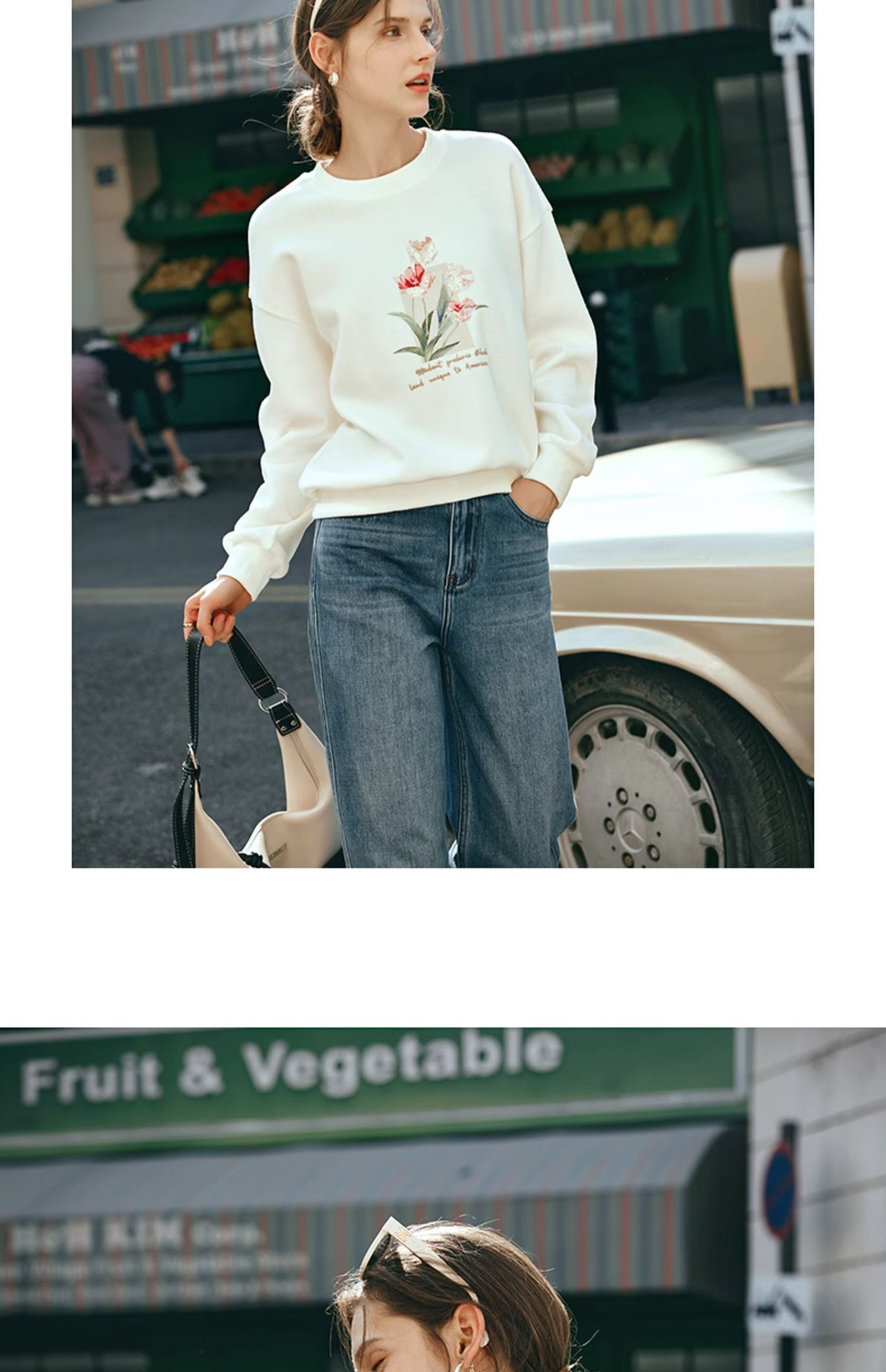 OLrain欧芮儿杏色圆领卫衣女早春2024年新款时尚百搭宽松绣花上衣