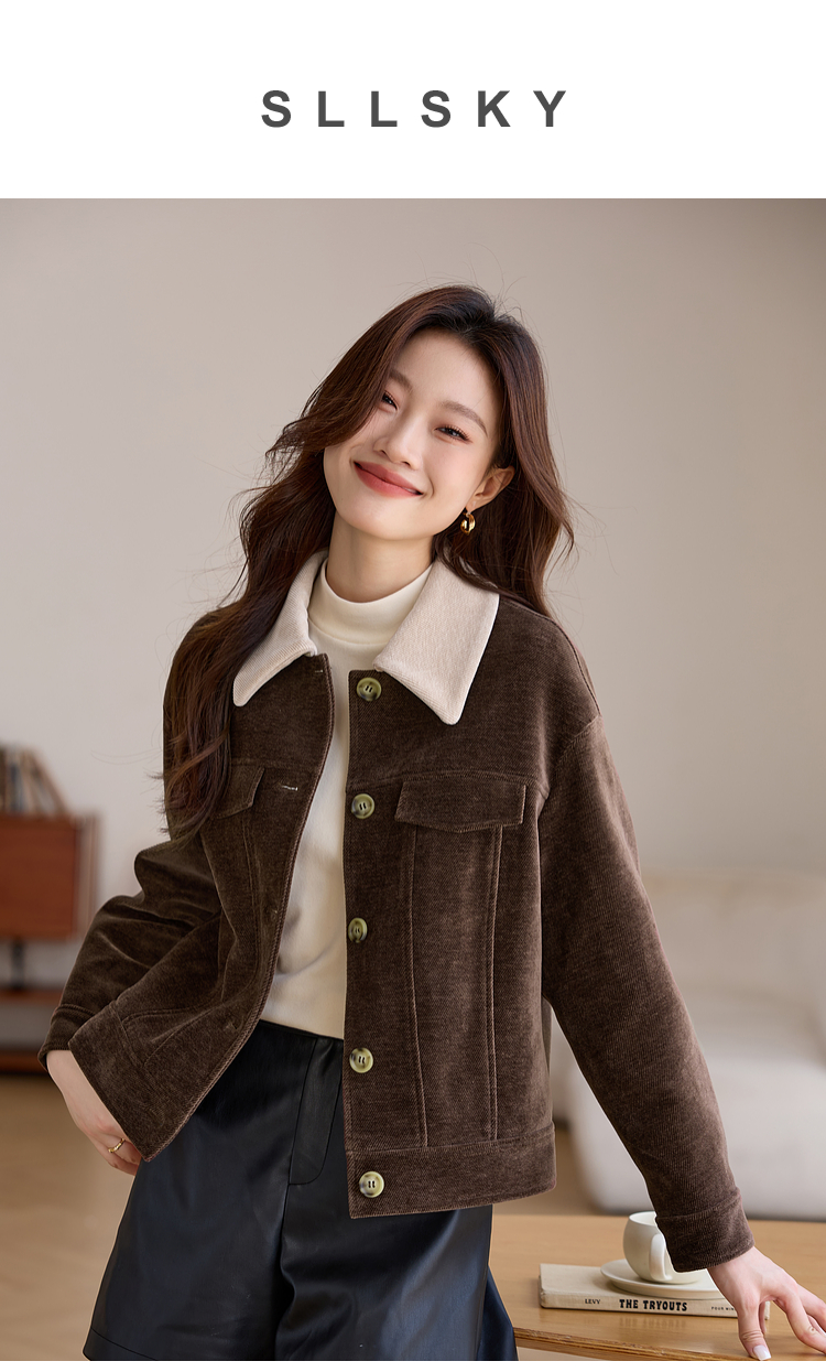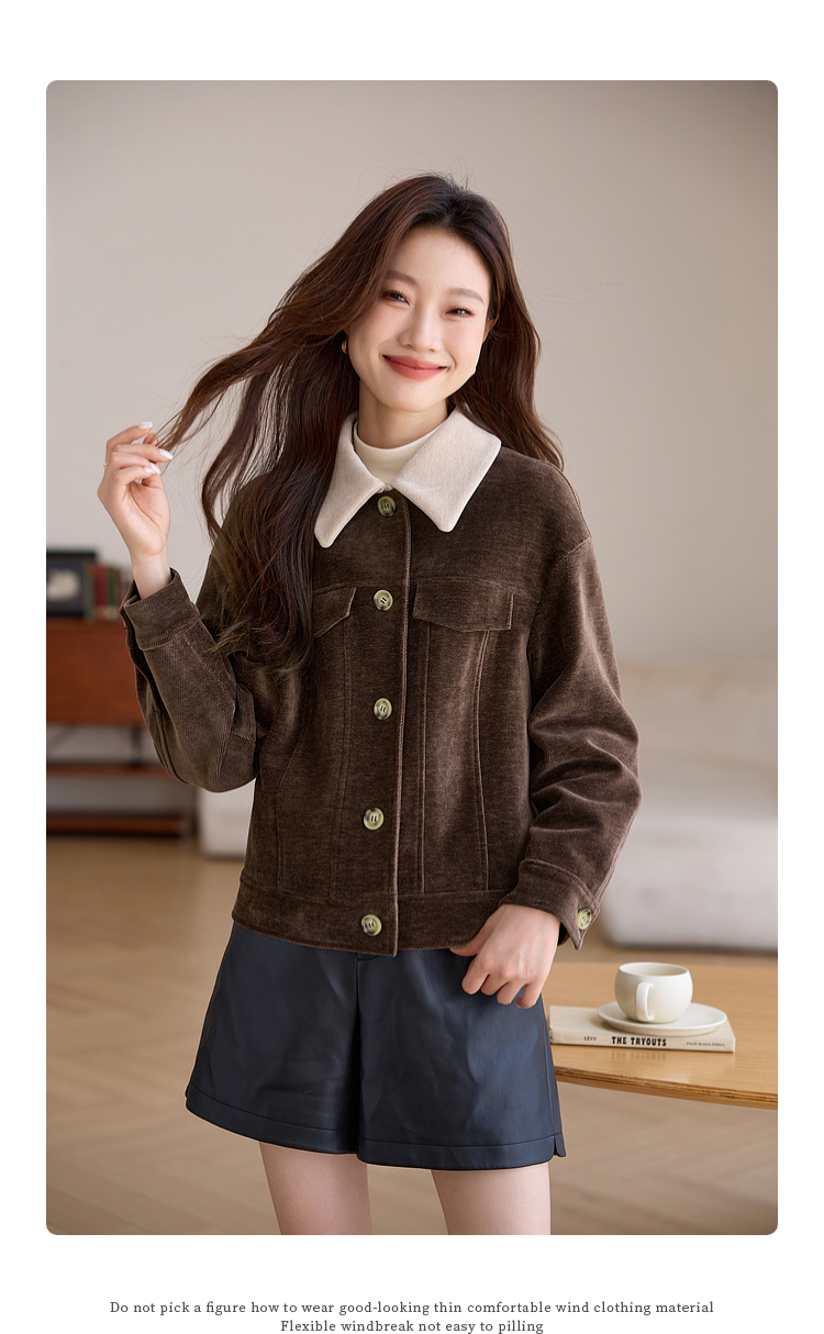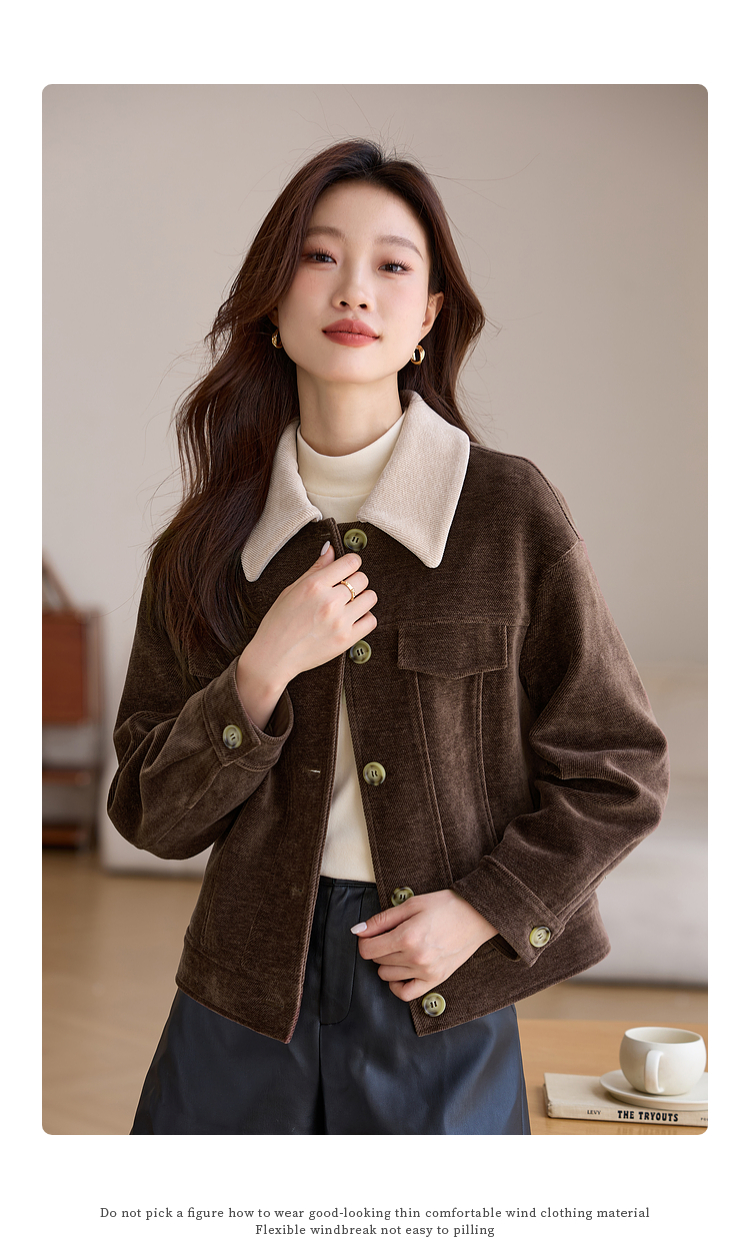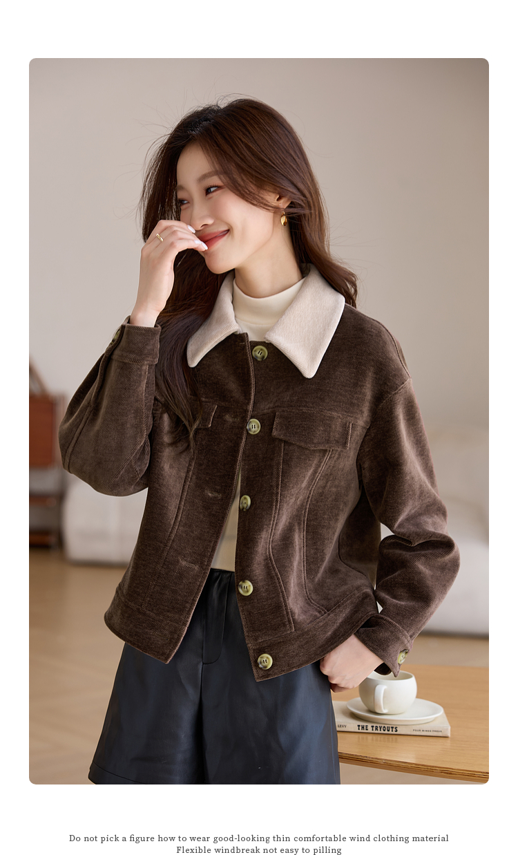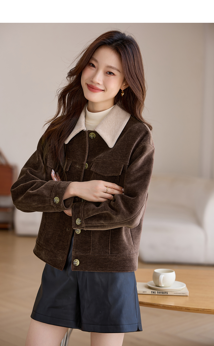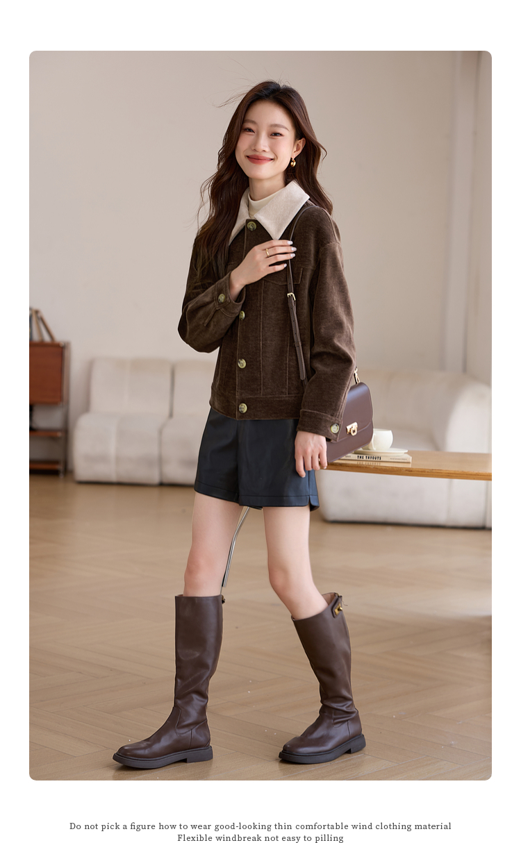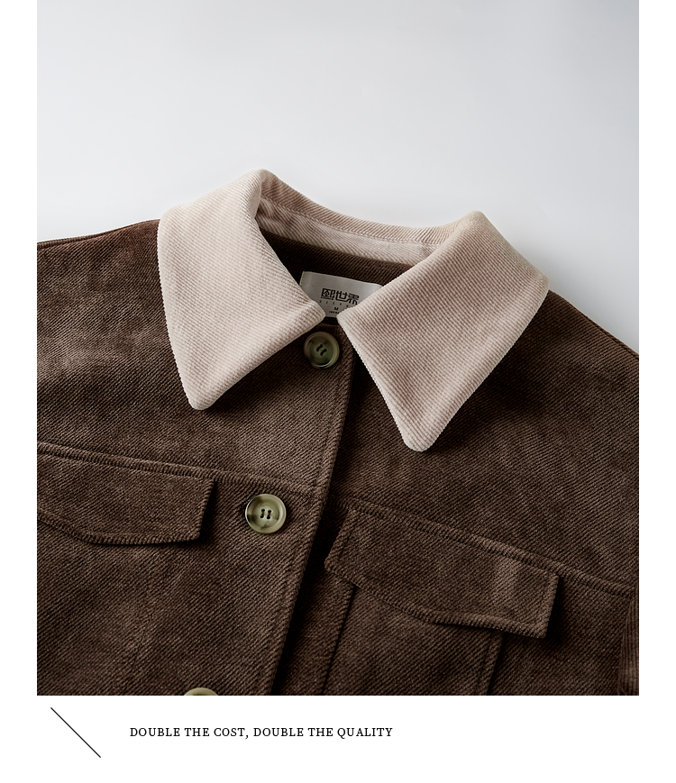 【年货节】熙世界美拉德咖色工装风毛呢外套女秋冬复古休闲短款呢子夹克上衣
