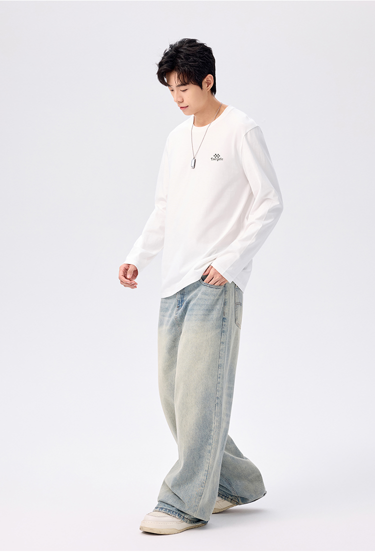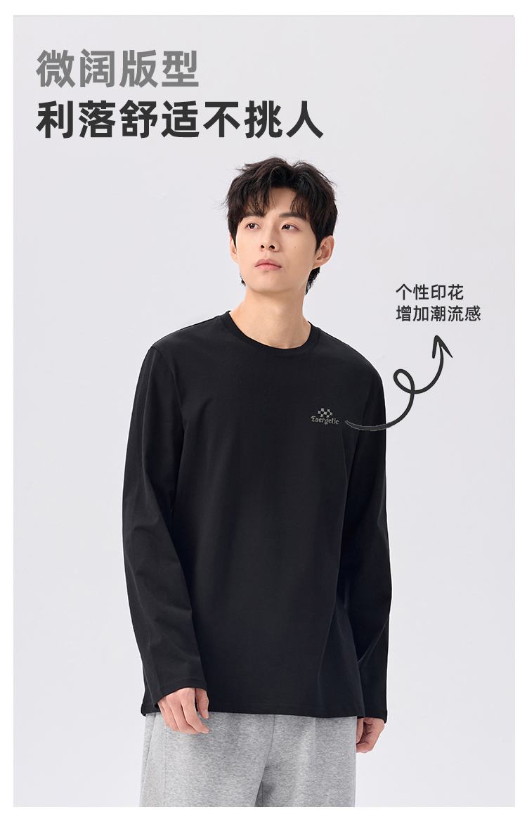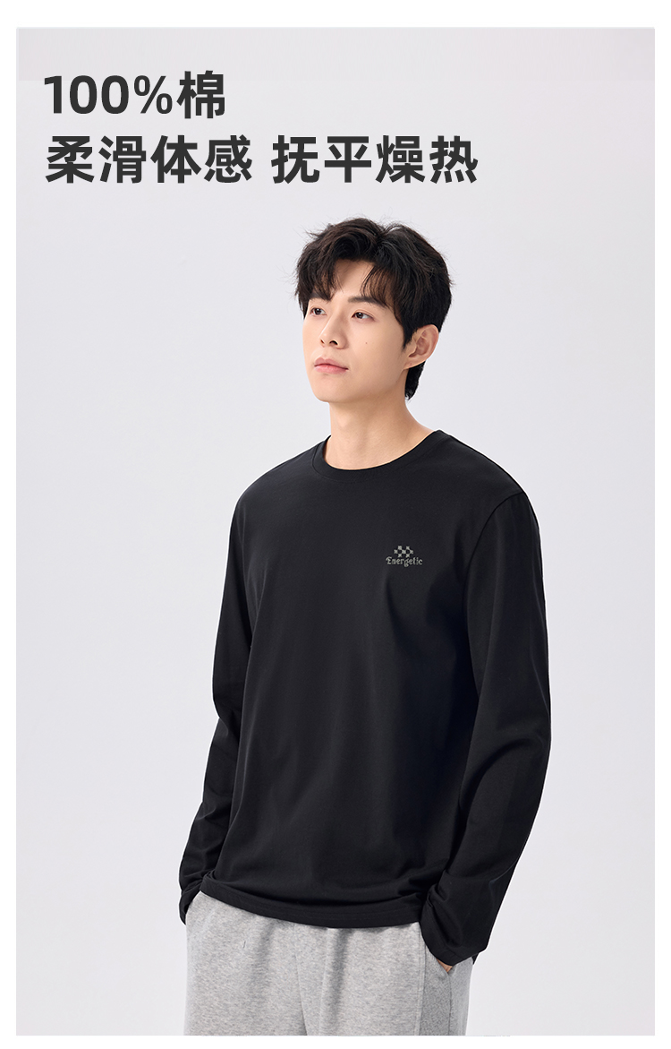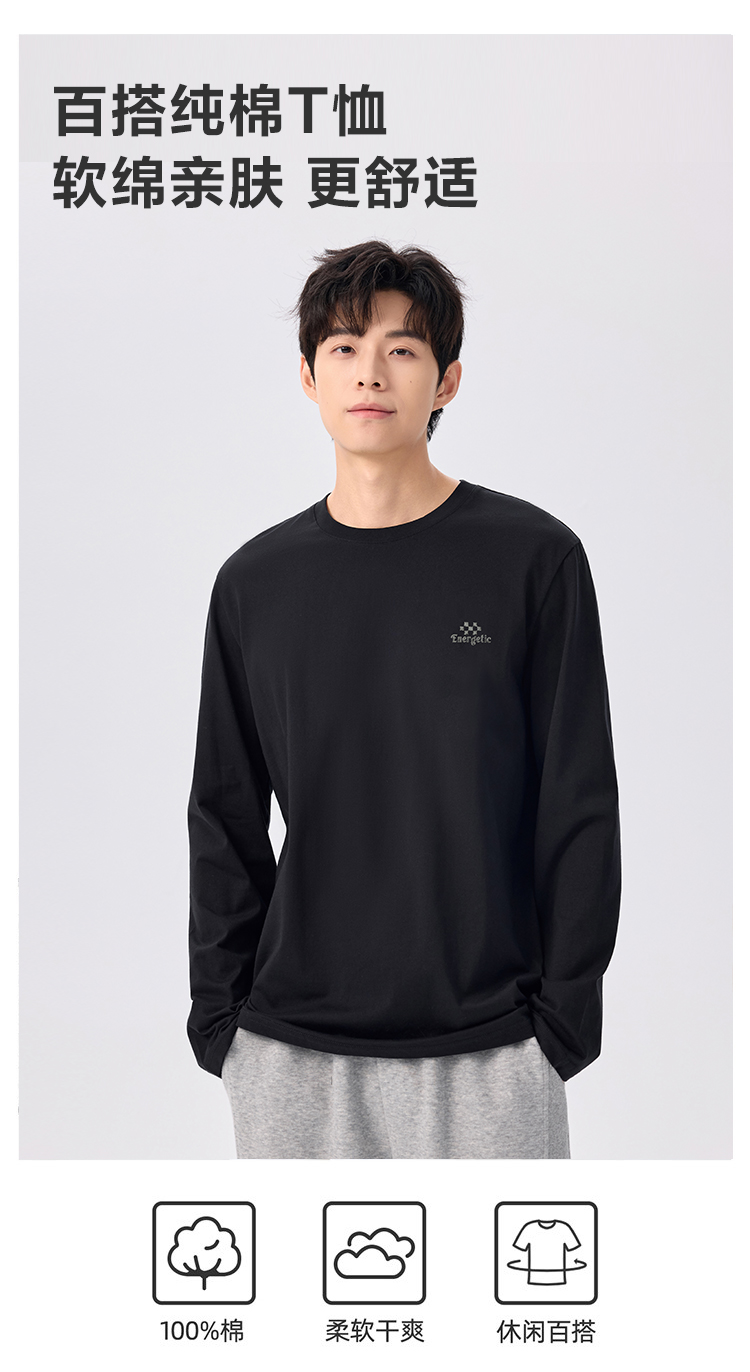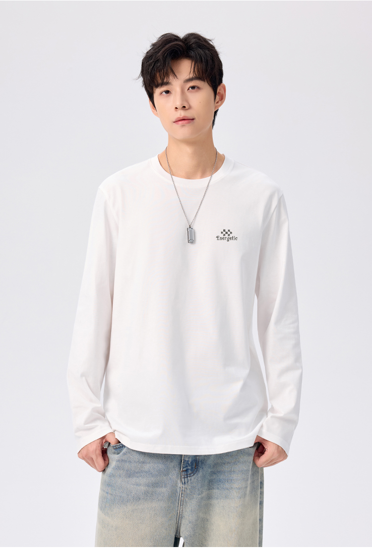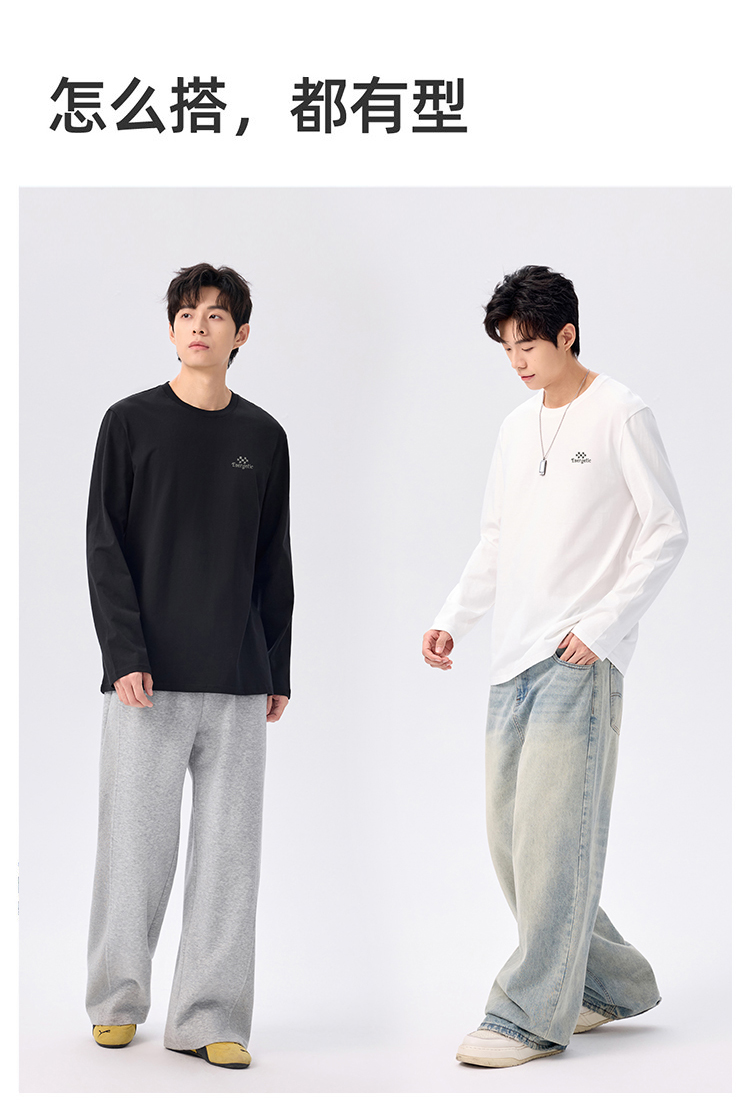 gxgjeans 男装【棉100%】情侣款长袖T恤25秋款简约舒适百搭校园男士上衣K&C