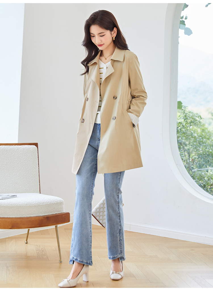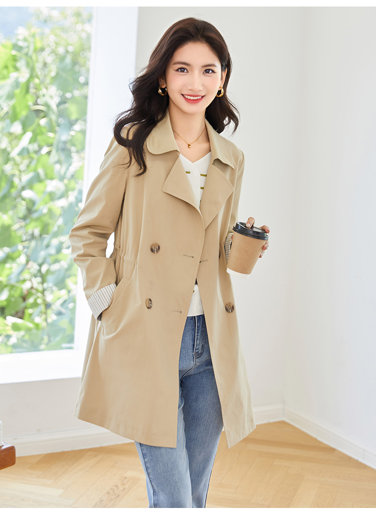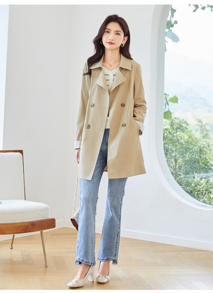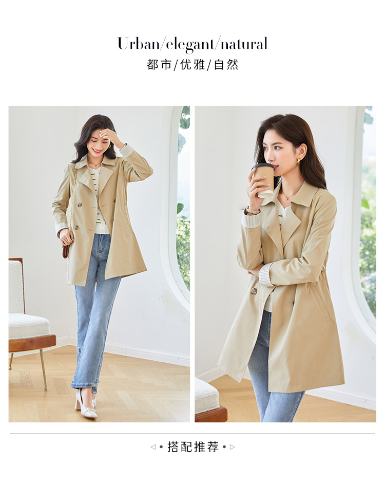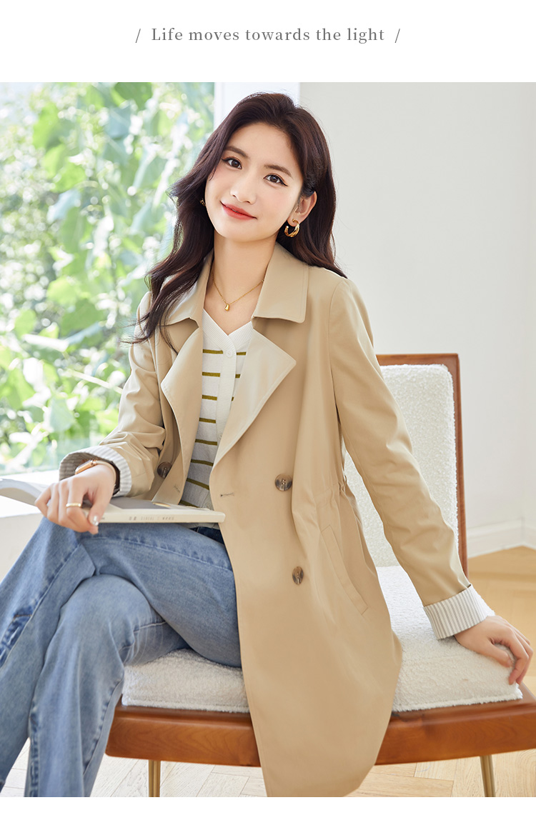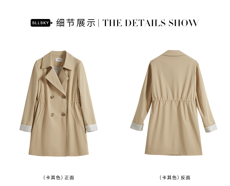 【专属特价】熙世界质感时尚风衣外套女秋装新款气质小个子中长款流行大衣