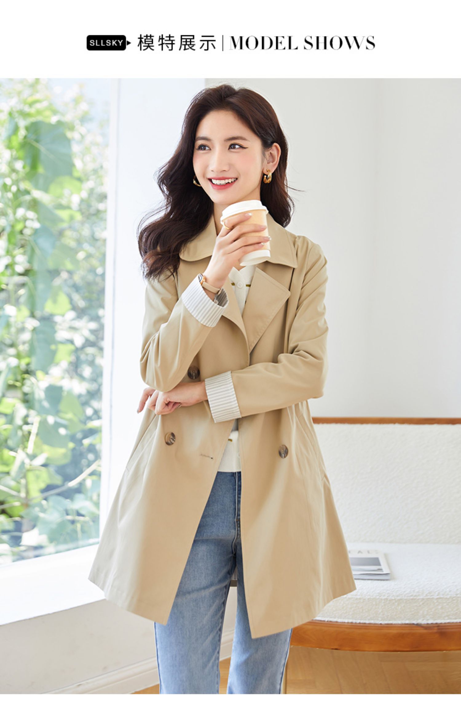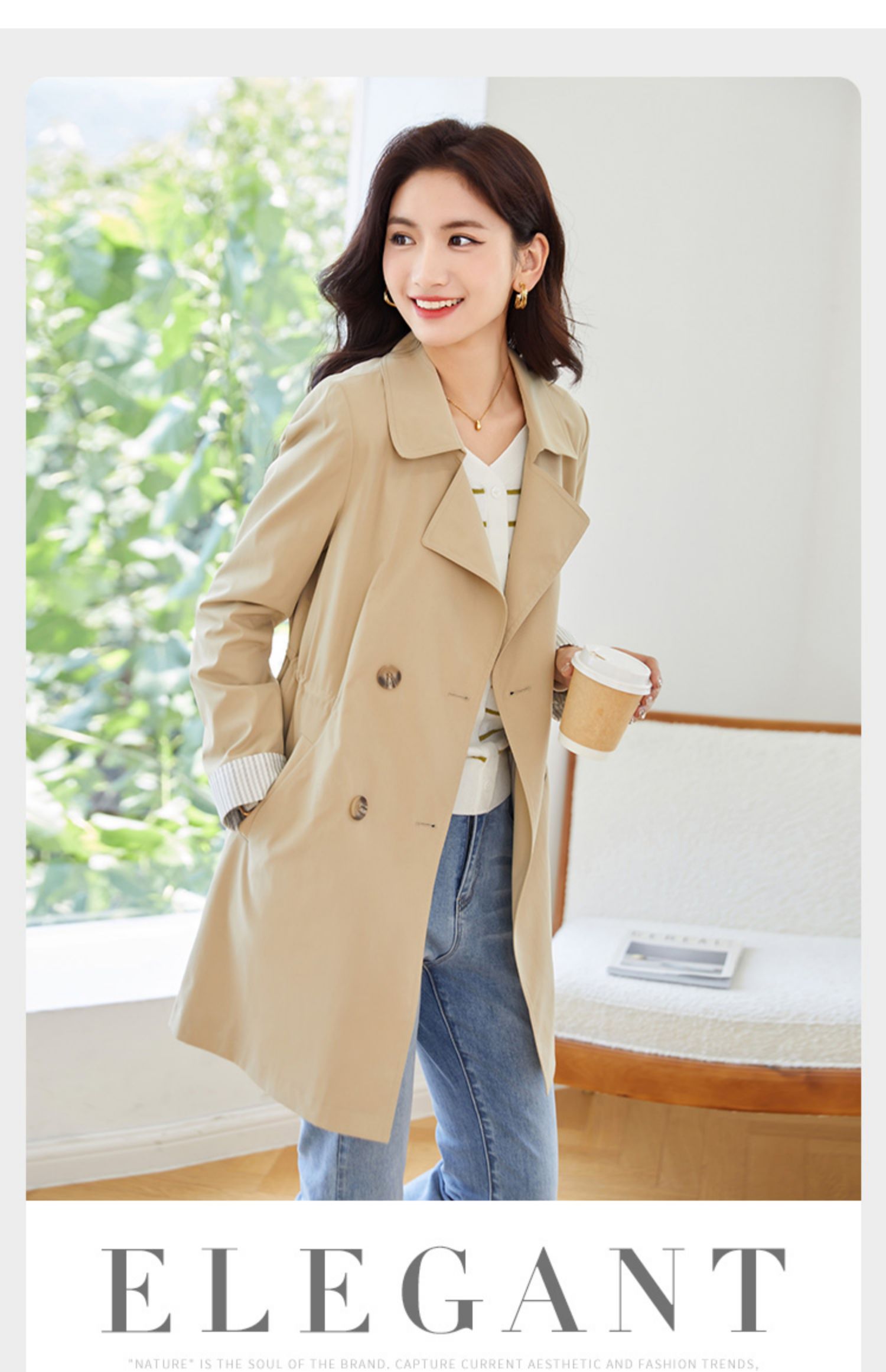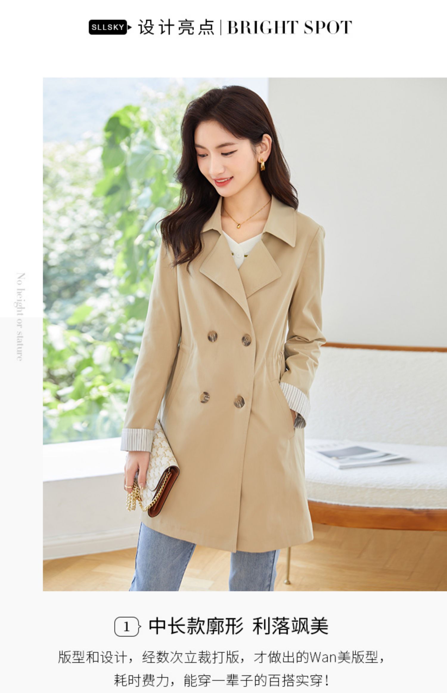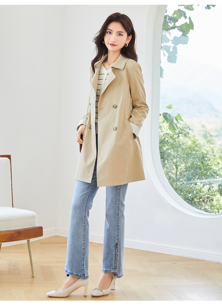【专属特价】熙世界质感时尚风衣外套女秋装新款气质小个子中长款流行大衣