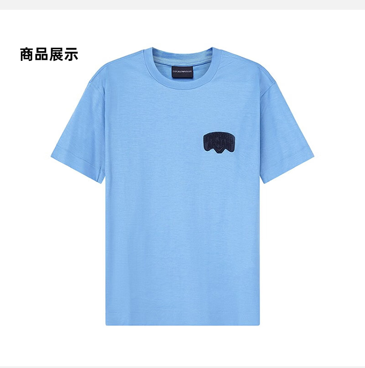EMPORIO ARMANI 阿玛尼 男士字母徽标圆领短袖T恤 浅蓝色 3R1TBE 1JUVZ 0708