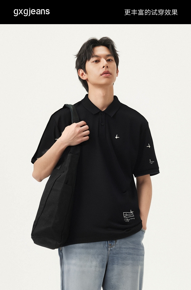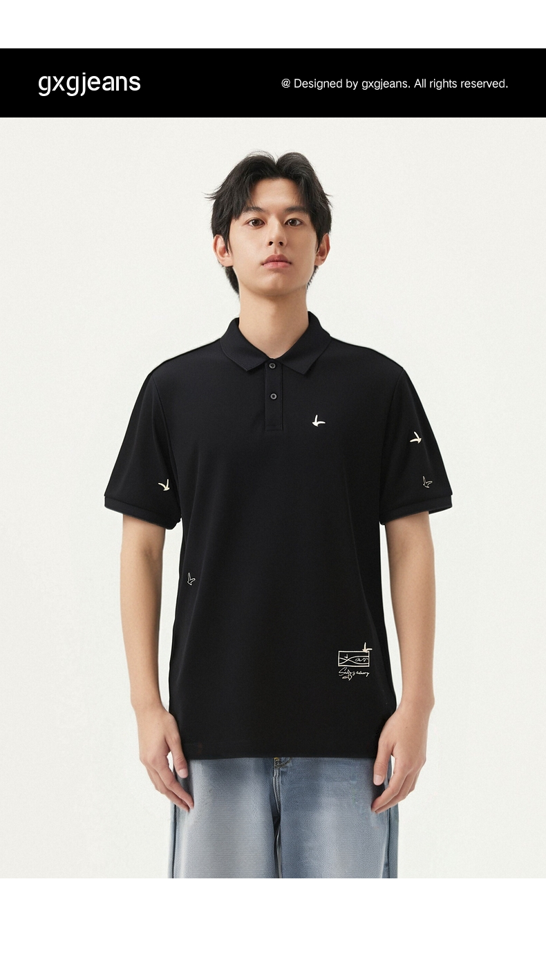 gxg.jeans男装 多色满身刺绣休闲时尚基础翻领短袖polo衫25夏热卖