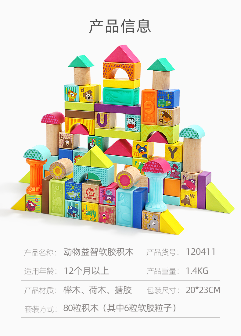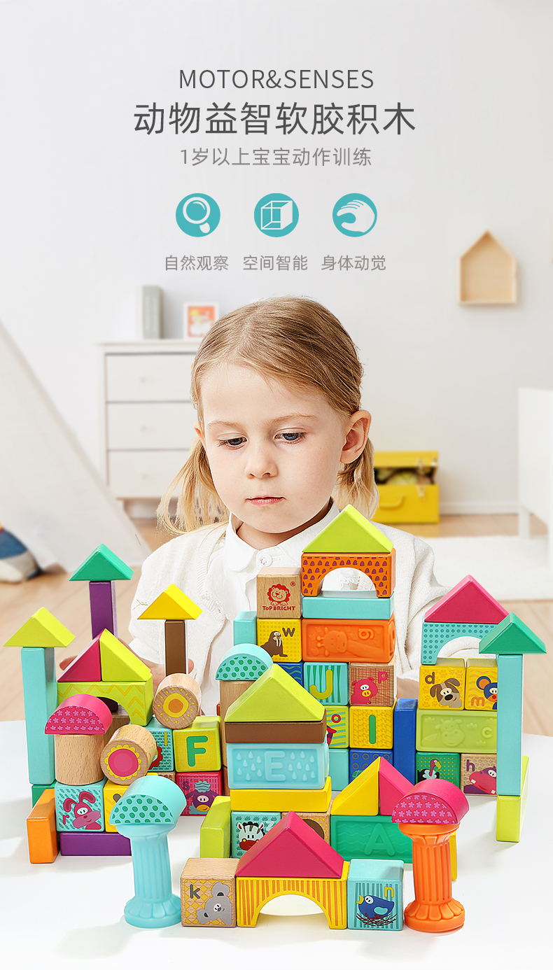 【高弹柔软的积木 体验双重触感】TOPBRIGHT特宝儿动物益智软胶积木 手眼协调 随心拼搭 木质桶装拼装积木