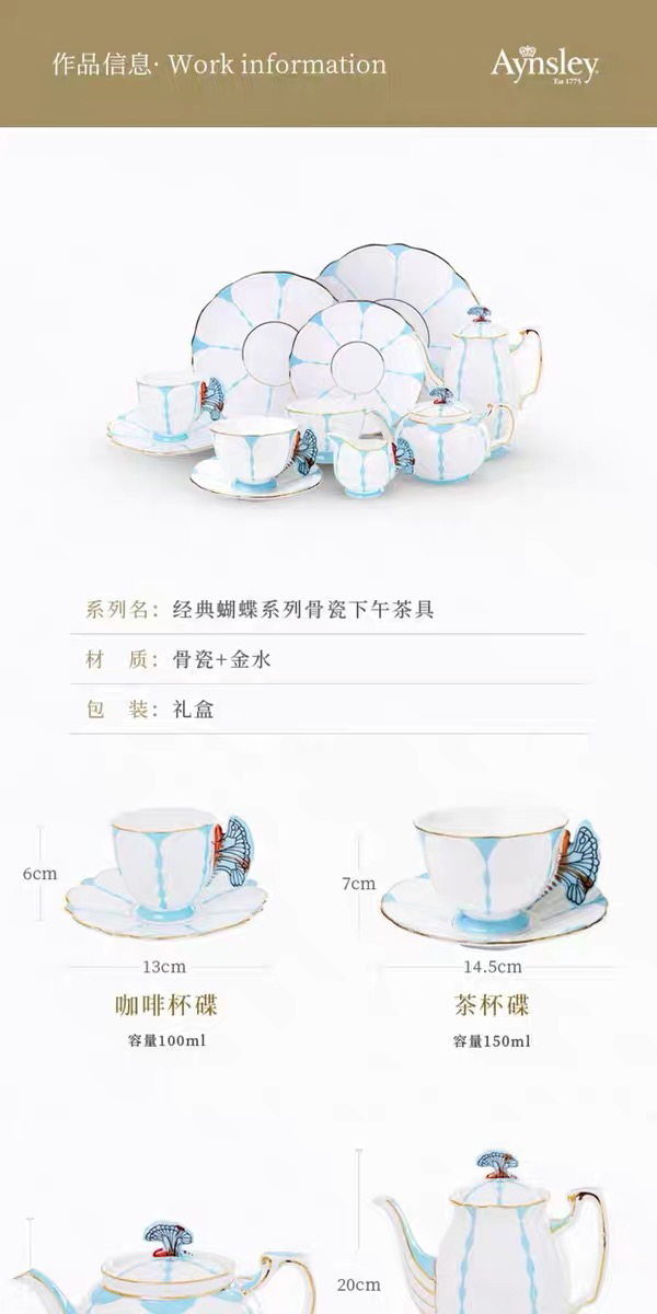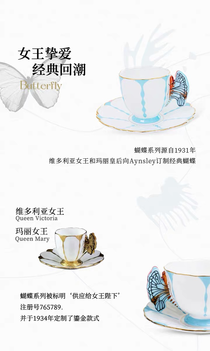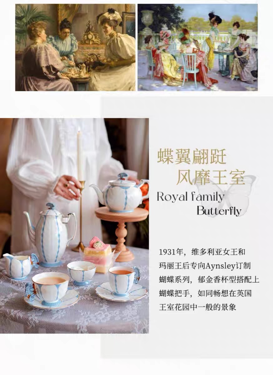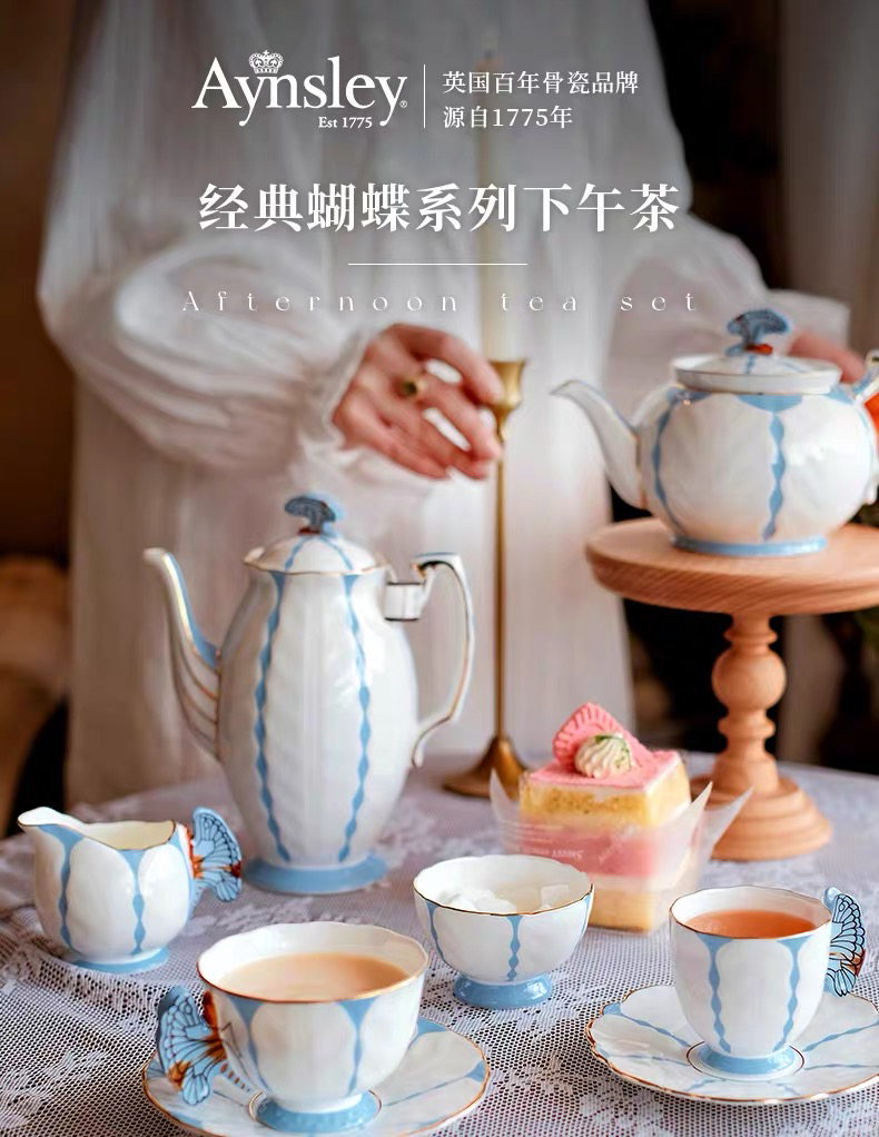 英国Aynsley安斯丽经典蝴蝶蓝色骨瓷咖啡杯碟礼盒下午茶茶具礼盒