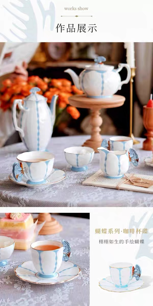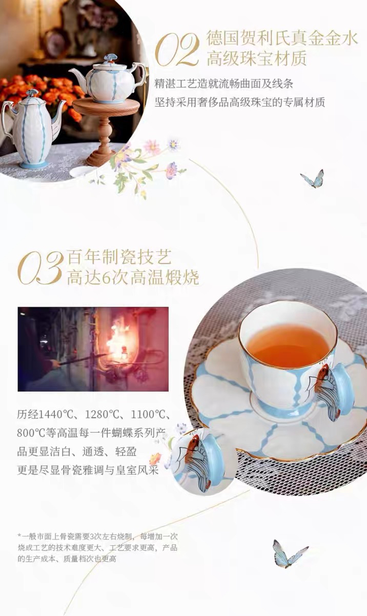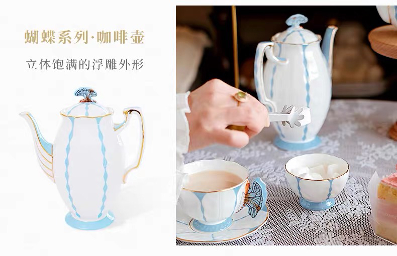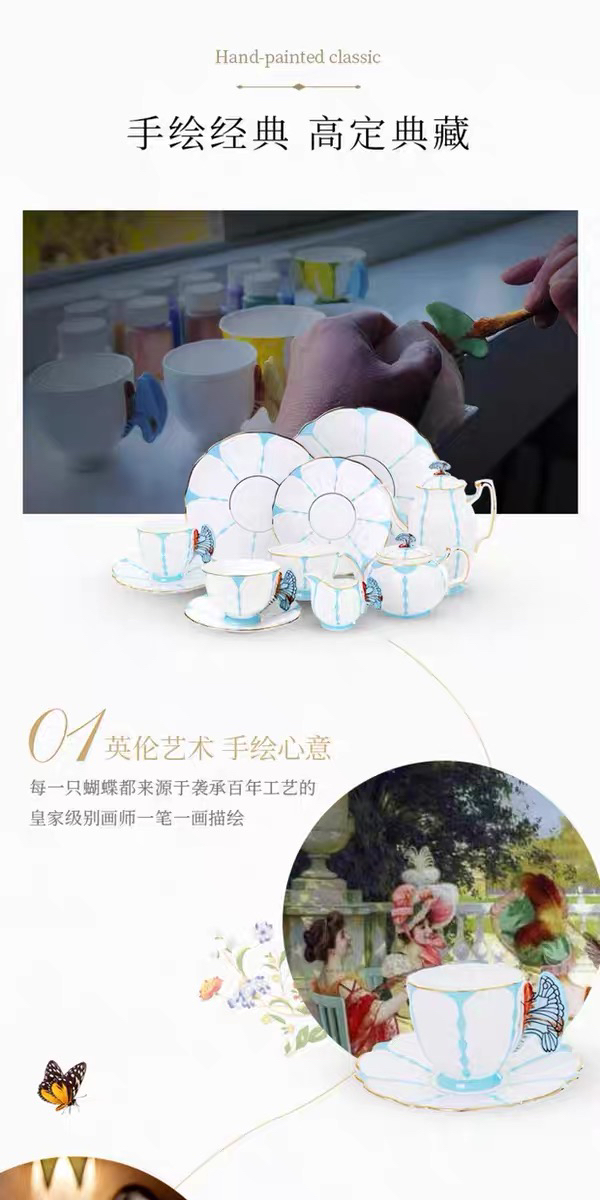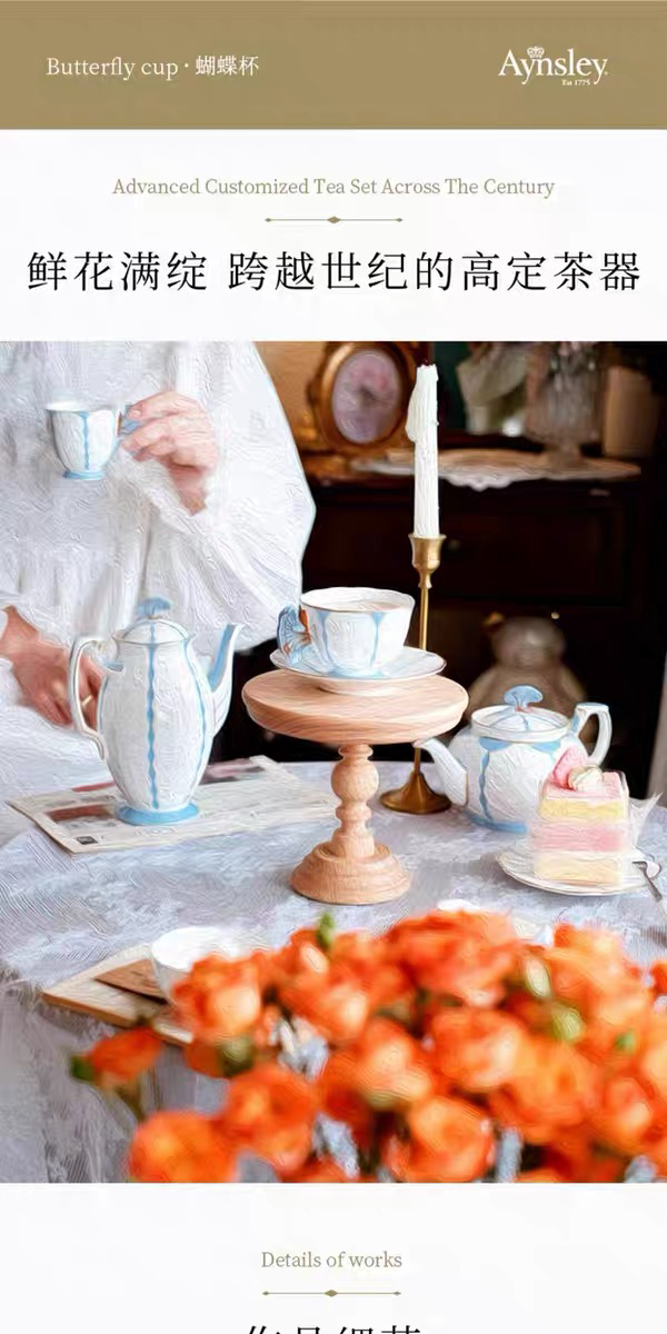 英国Aynsley安斯丽经典蝴蝶蓝色骨瓷咖啡杯碟礼盒下午茶茶具礼盒