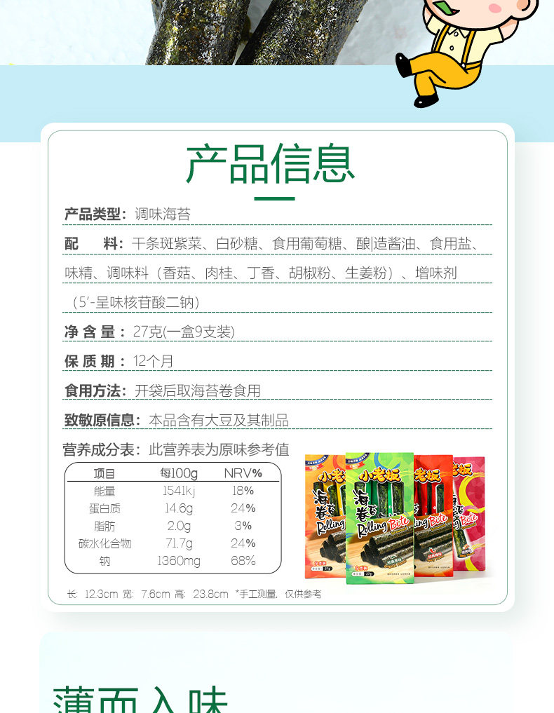 小老板烤海苔卷 原味/鱿鱼味/辣味/烧烤味 27g