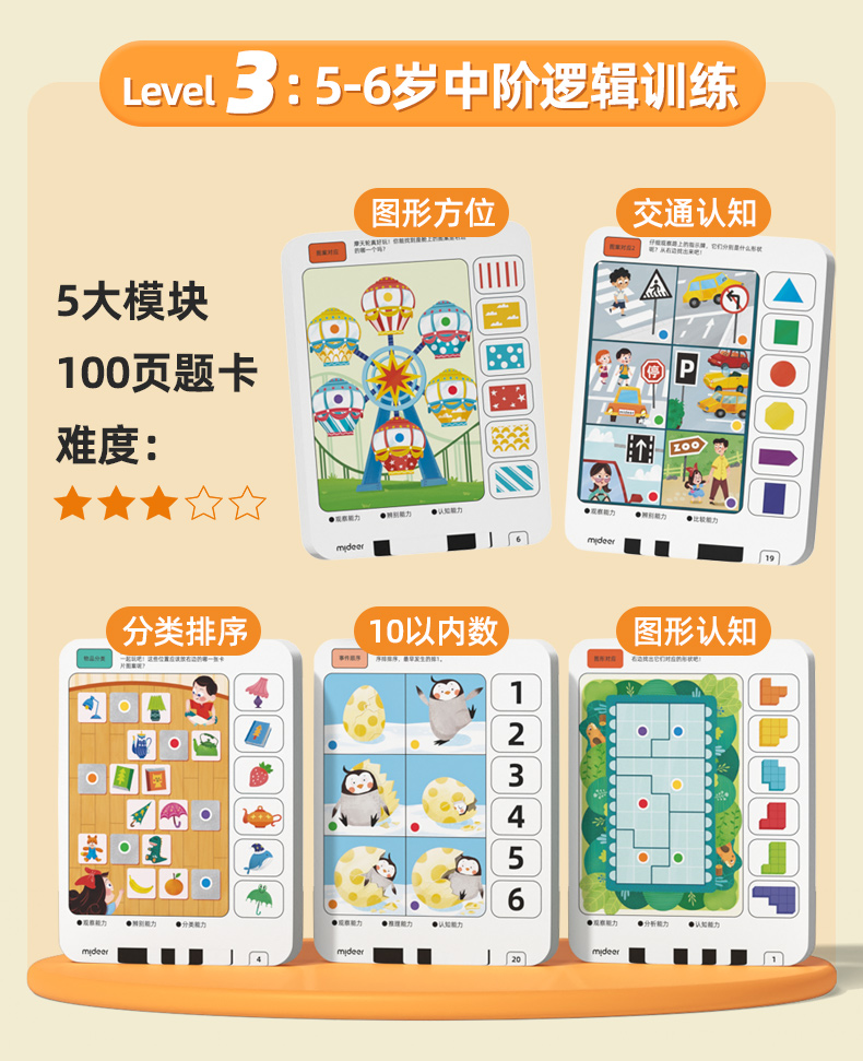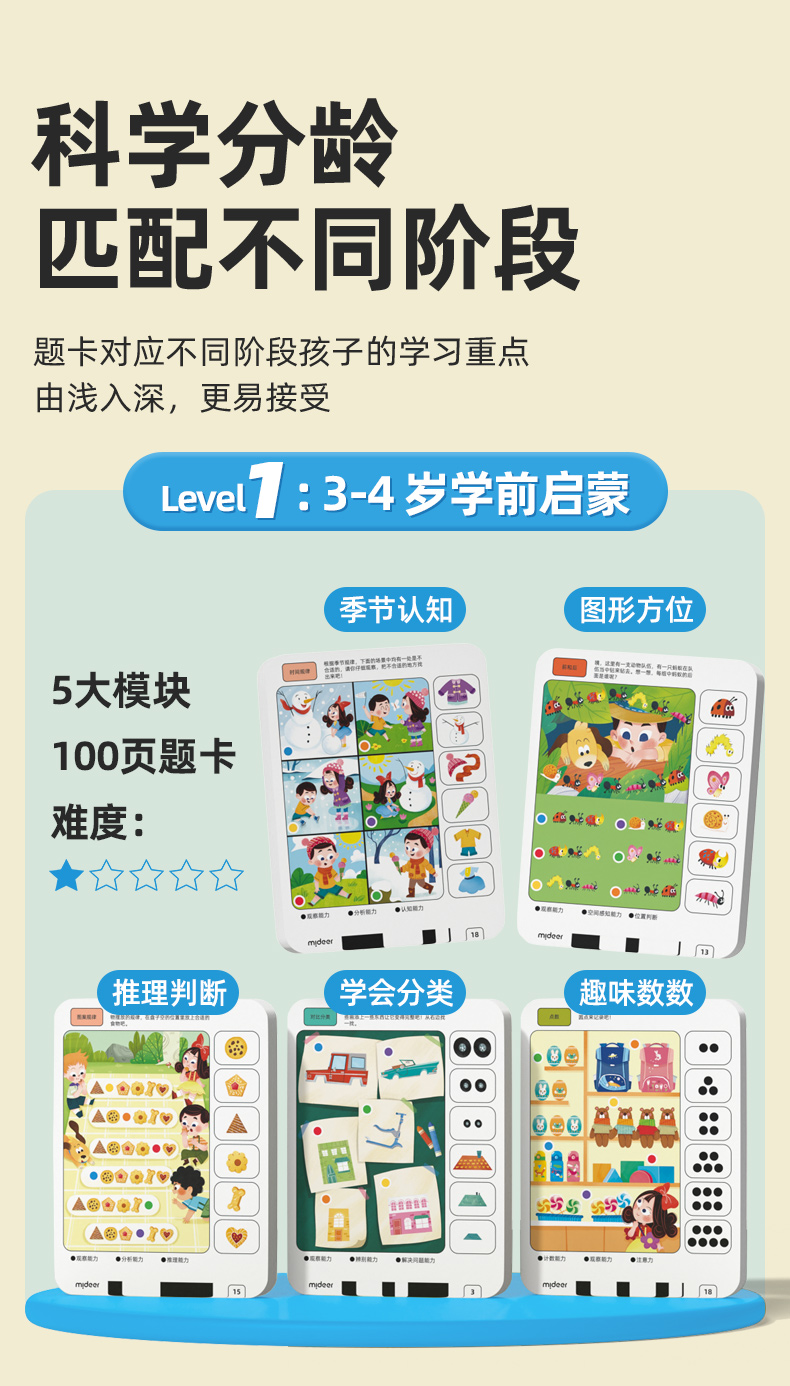 弥鹿儿童逻辑思维训练机题卡幼儿智能学习早教机题卡益智玩具新年