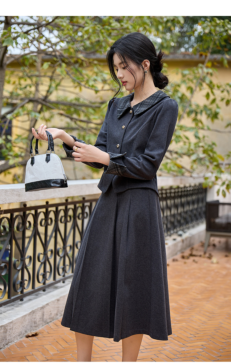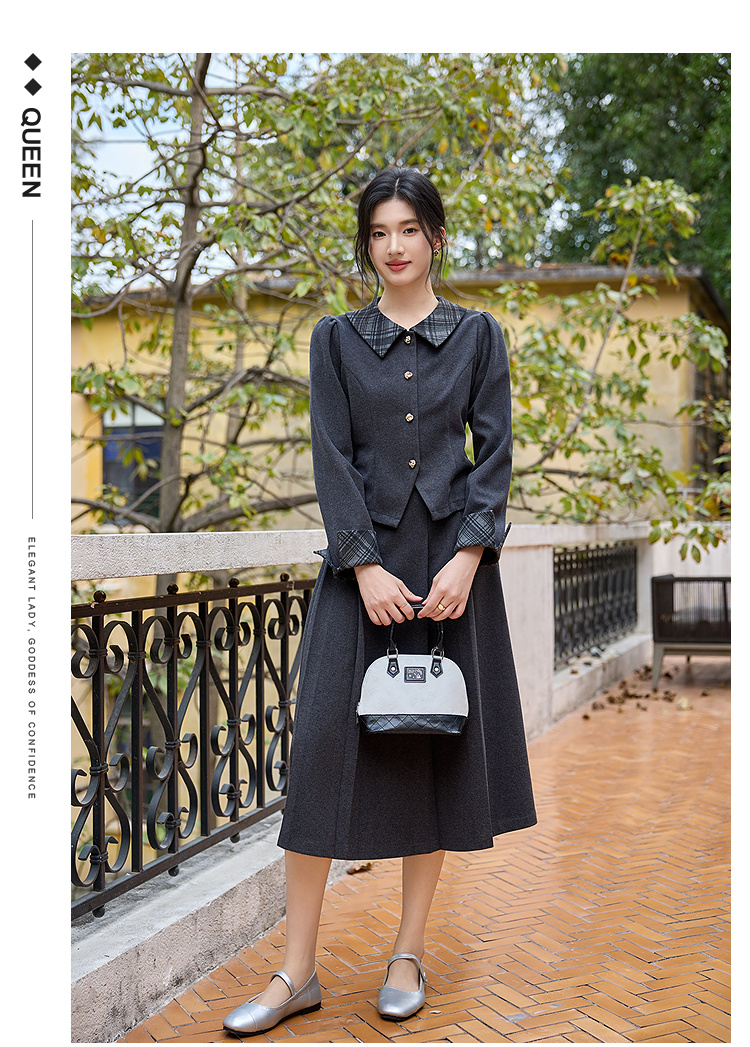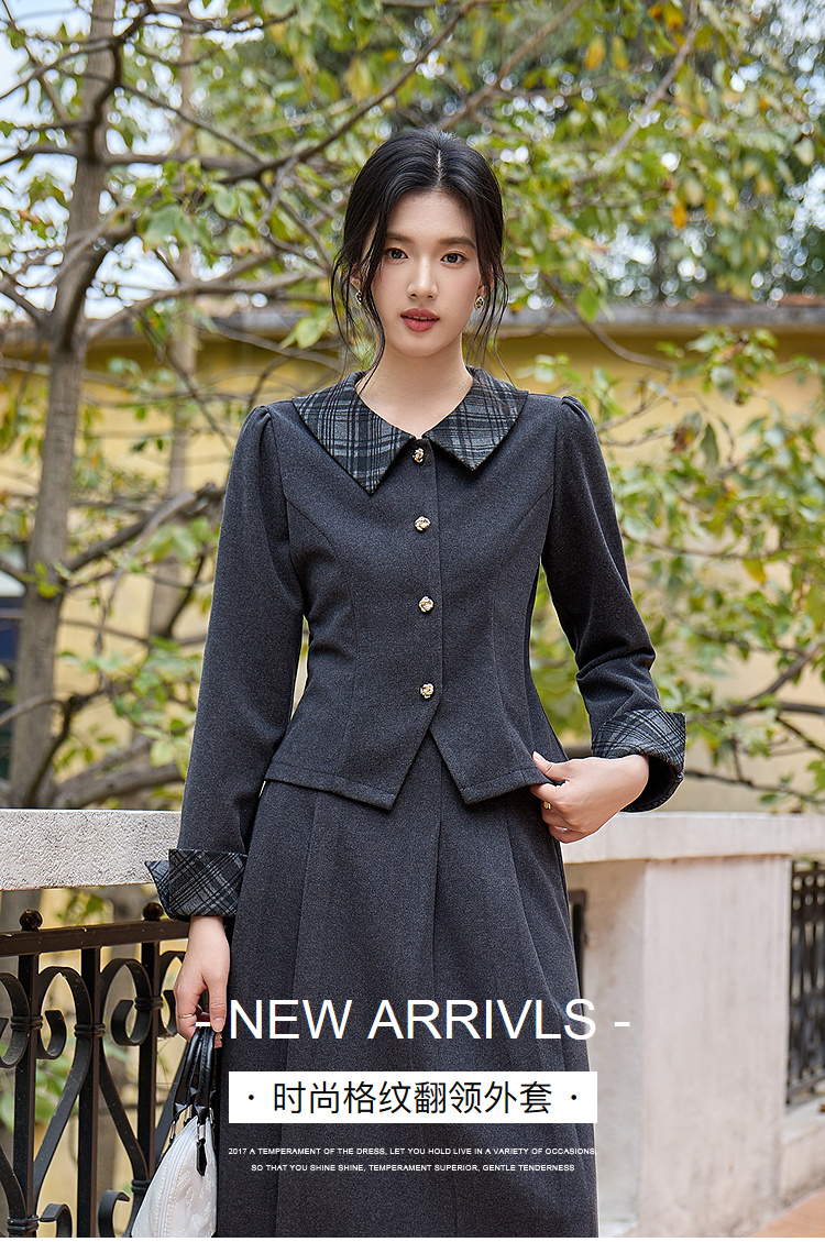 奢姿大码女装2025冬季胖妹妹时尚格纹翻领外套胖妹妹气质通勤上衣9954294414A