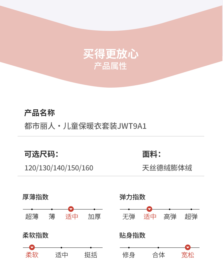 都市丽人眯雅佳保暖衣舒暖套装天丝德绒膨体绒中厚童装儿童保暖衣套装JWT9A1