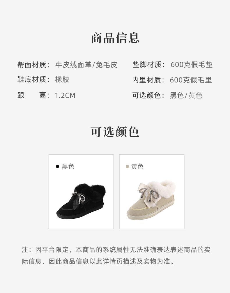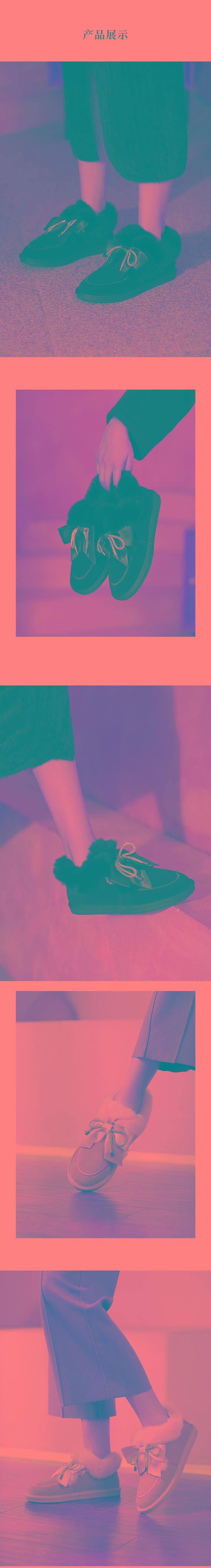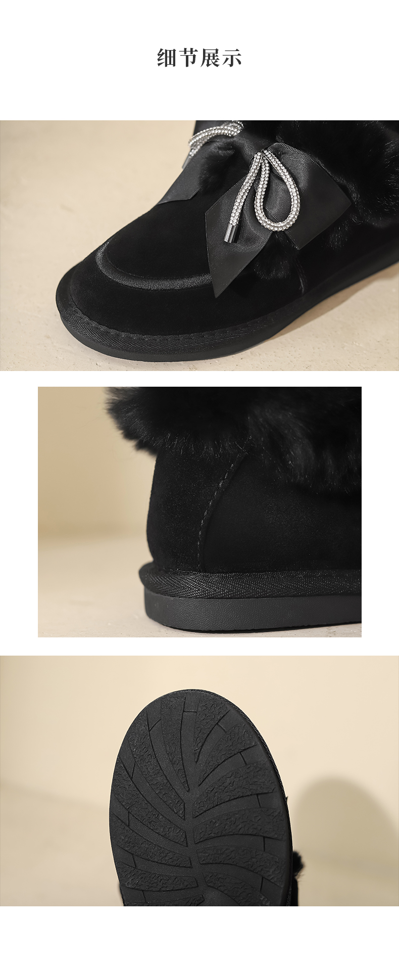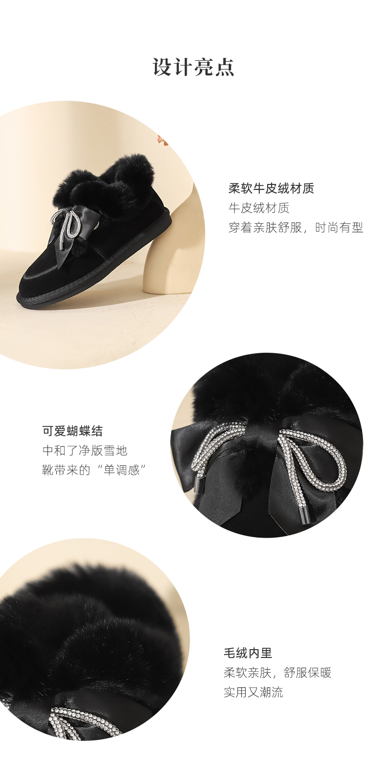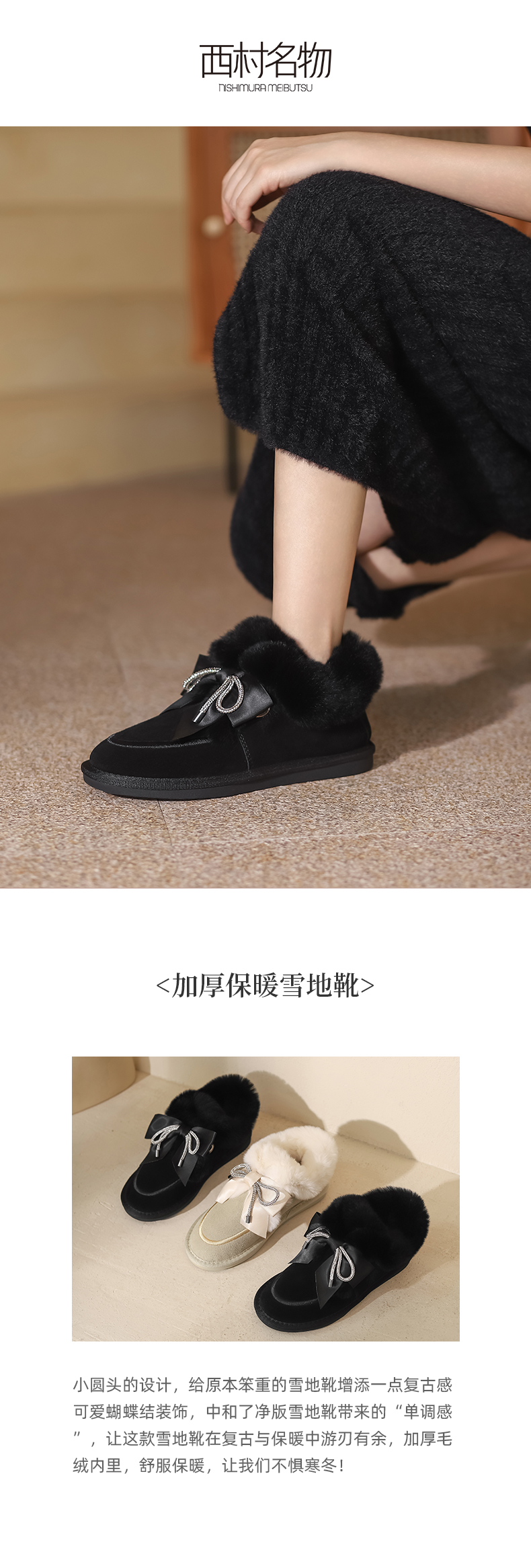 西村名物2021冬季新款毛球雪地靴女皮毛一体丝带蝴蝶鞋加绒T21CM36441
