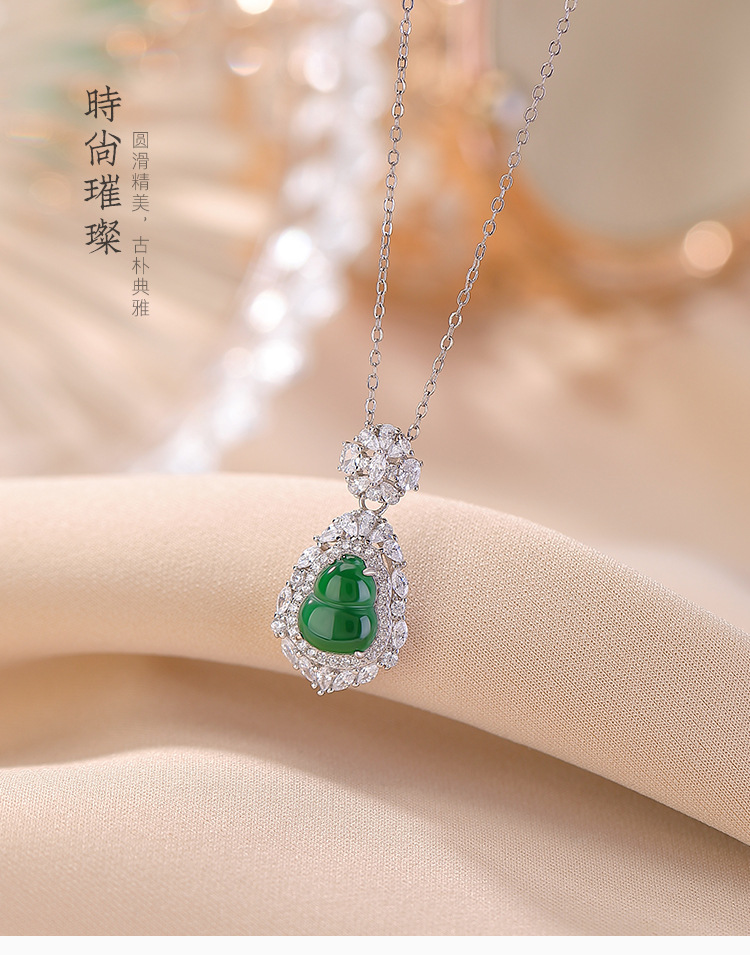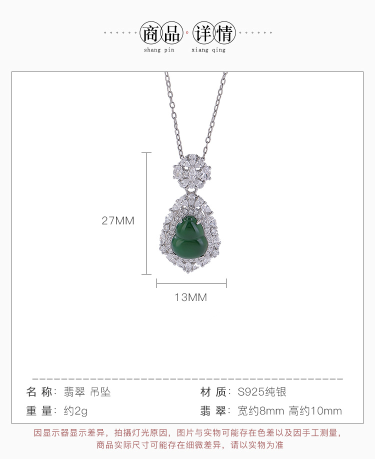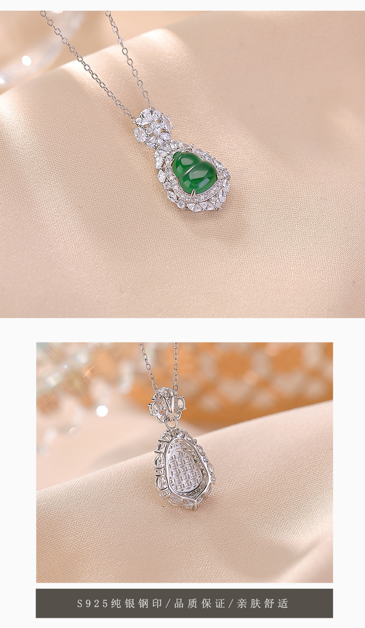 【福禄岁岁】S925纯银绿翡翠福禄葫芦镶嵌吊坠【CW-DZ07110】