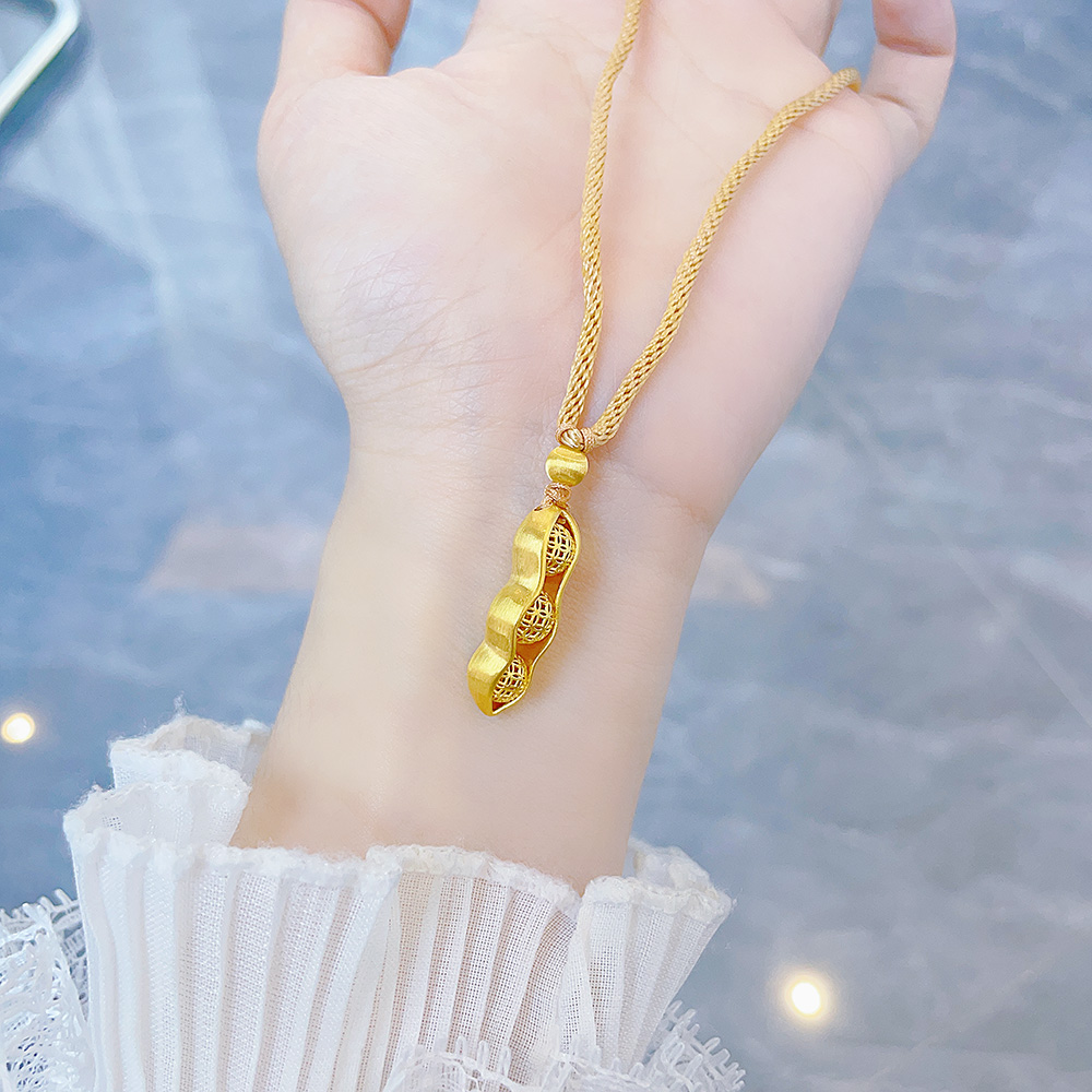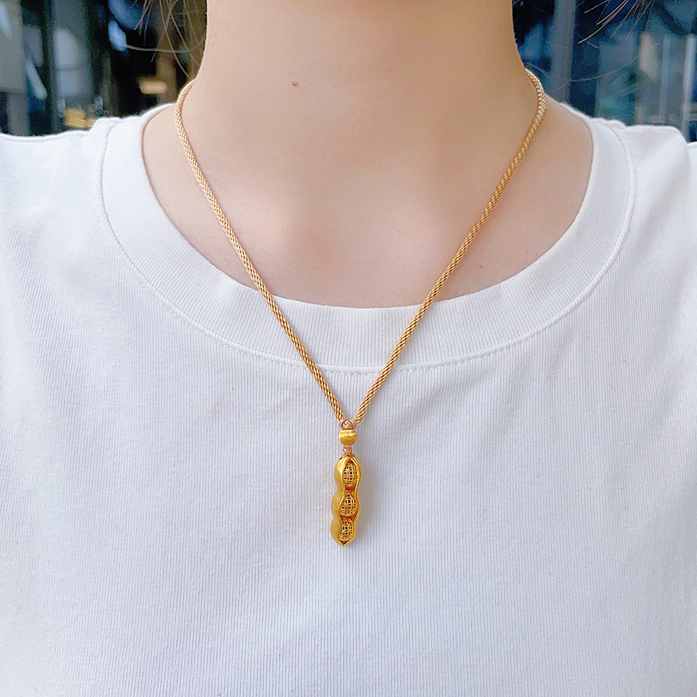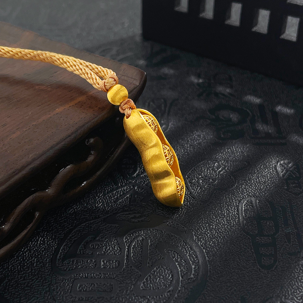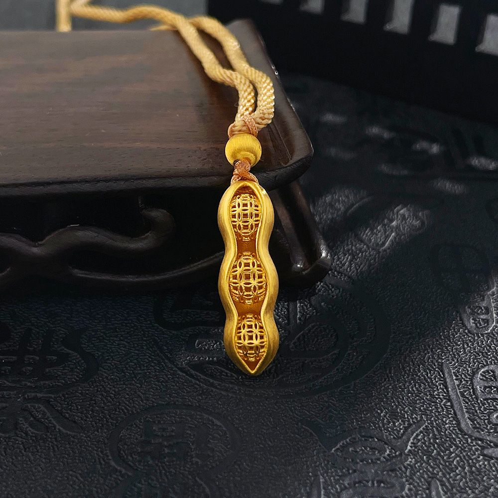 【限时克减150元】足金999 #招财纳福 古法空心挂绳吊坠国潮传承铜钱图案三元豆冰丝金丝绒金福豆吊坠(含珠子)(AUQGFDZ00142)(预售产品下单后不退款不退货不换货不补差价)