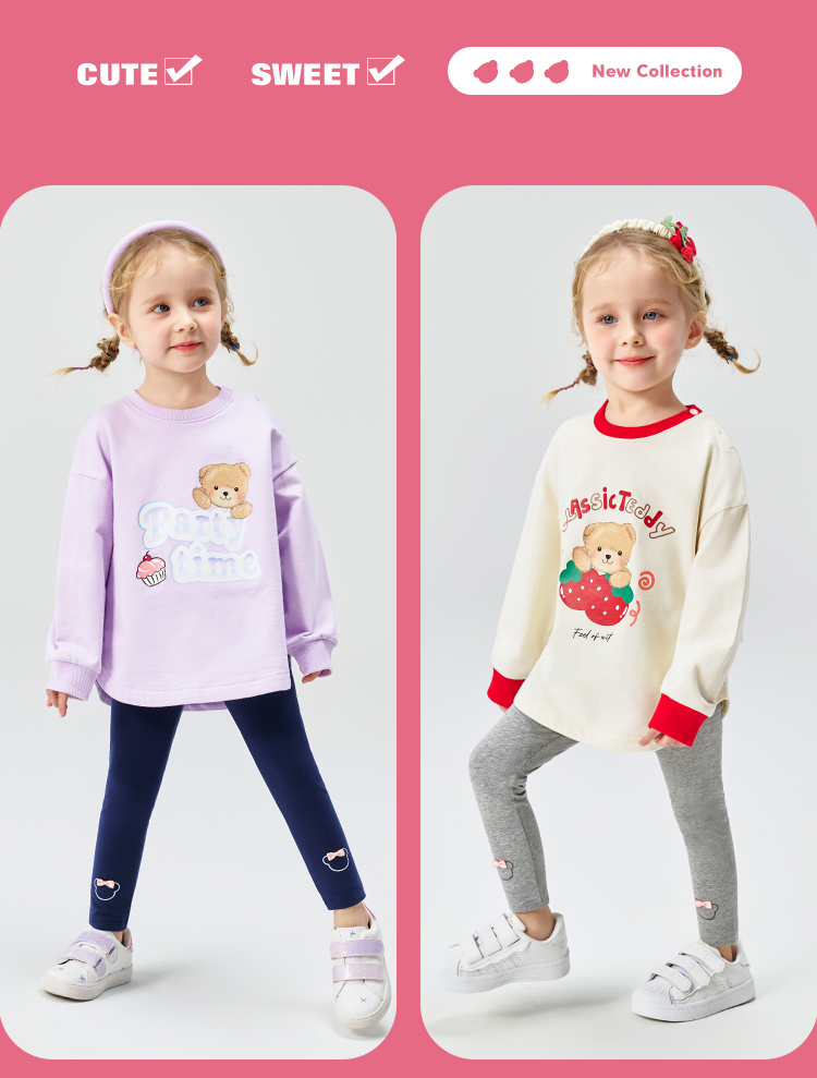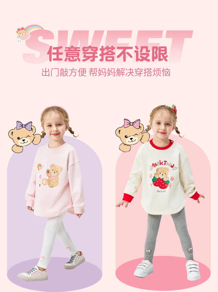 【英氏】【两件套】【110-170】女童春秋卫衣打底裤套装