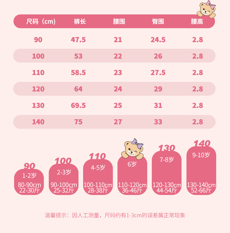 【90-140】【精典泰迪】女童春秋打底裤蝴蝶结泰迪