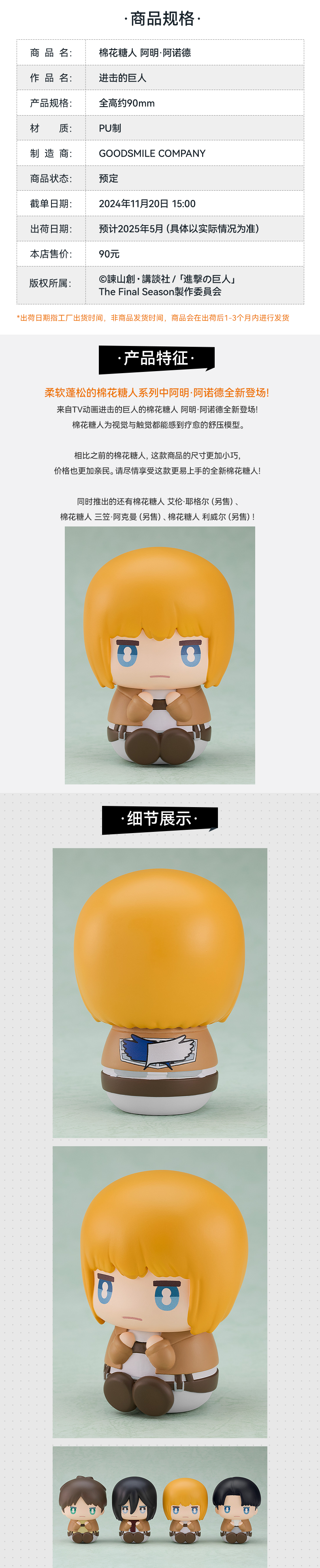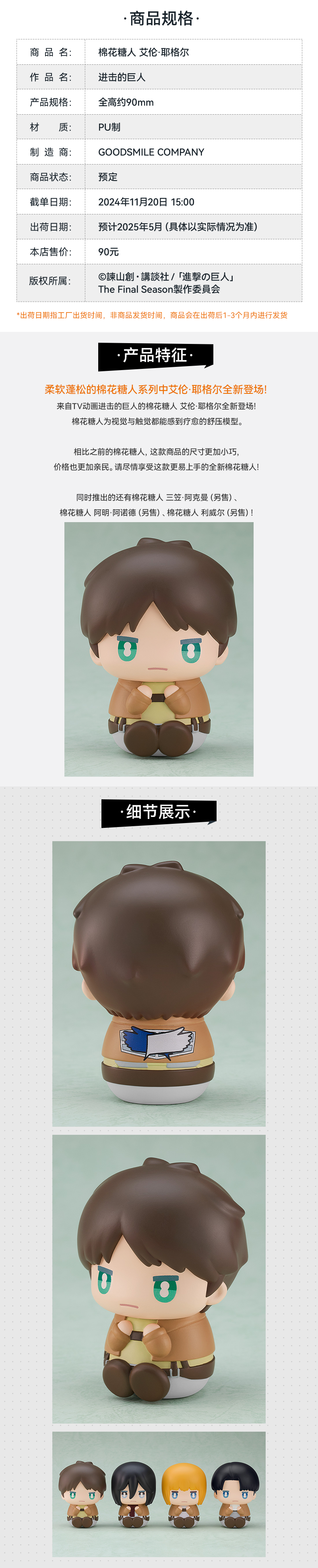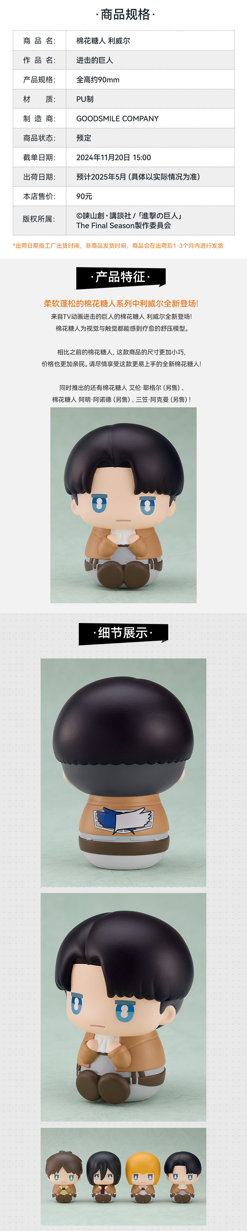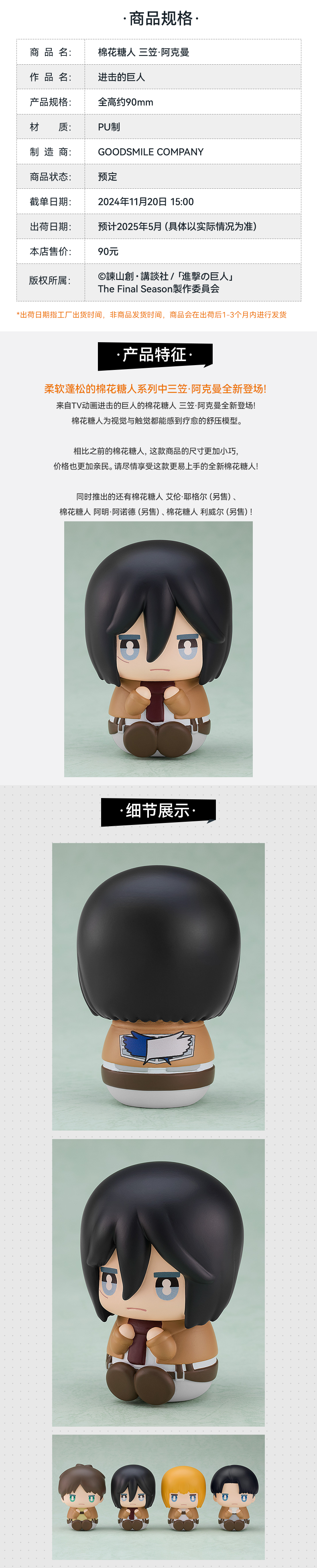 【GSC现货】棉花糖人 艾伦/三笠/利威尔/阿明 进击的巨人