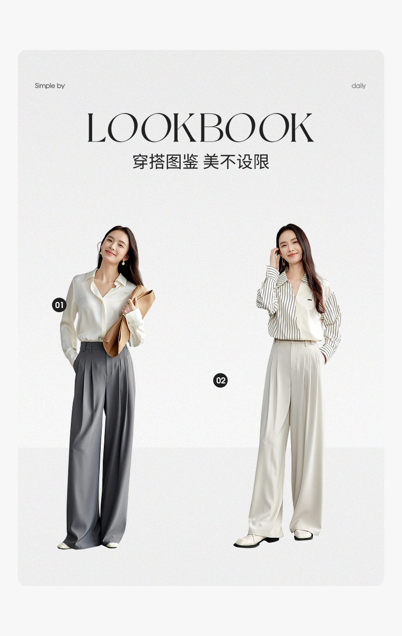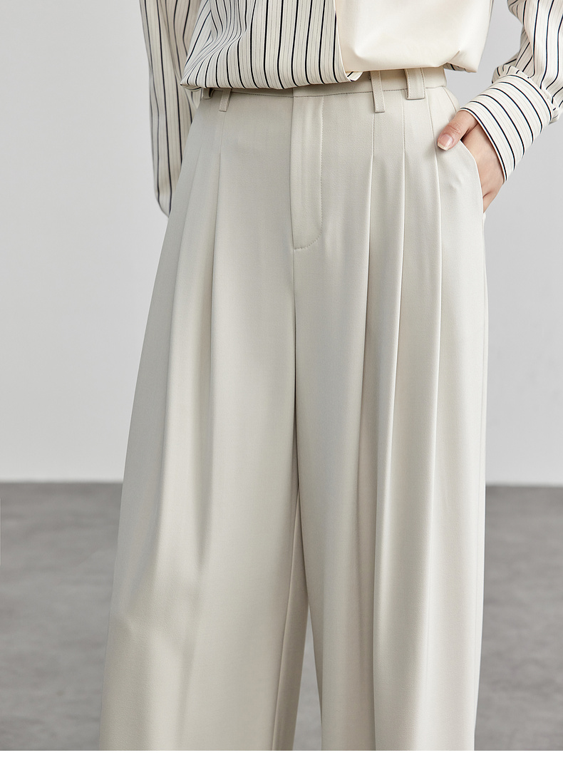【尚都比拉】通勤系列都市白领高级窄版阔腿裤女垂感显瘦直筒休闲西装裤-151K57880
