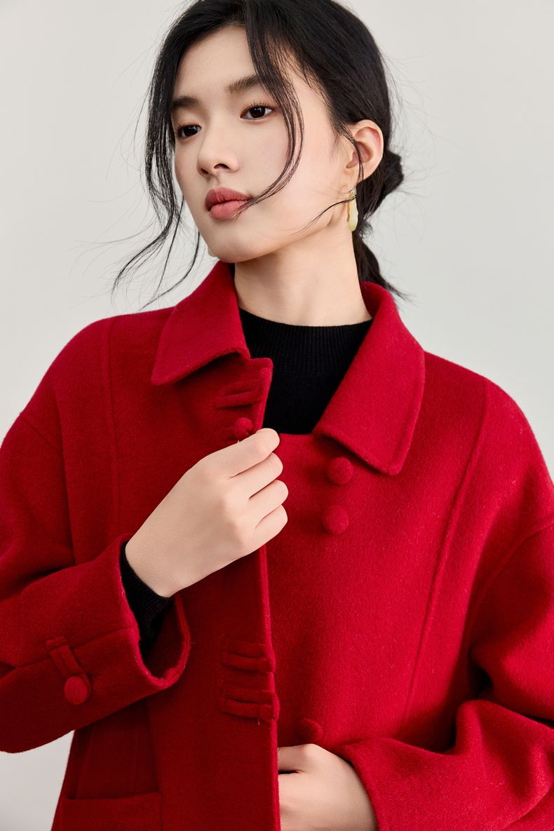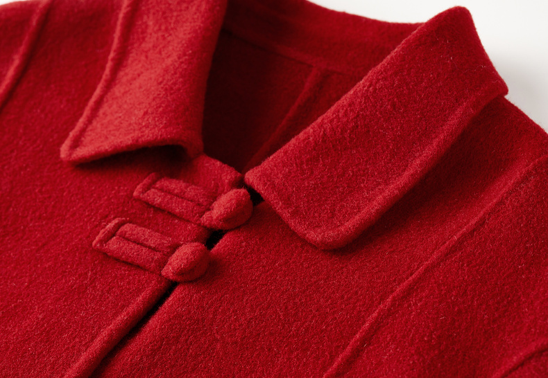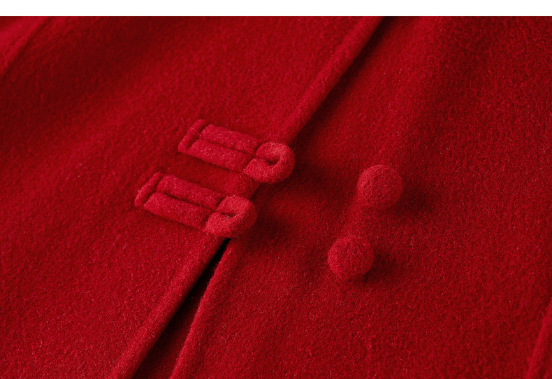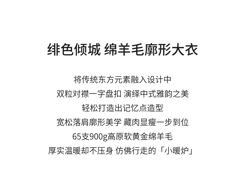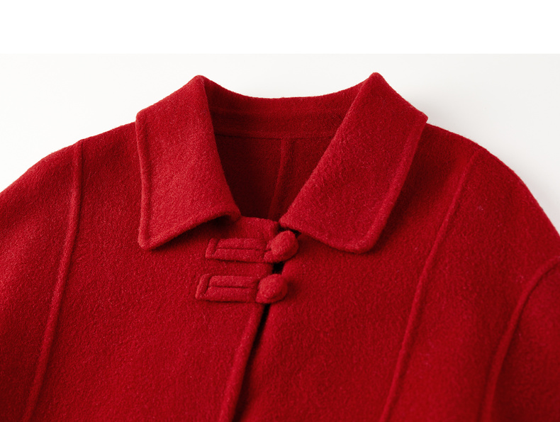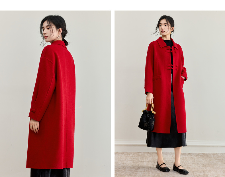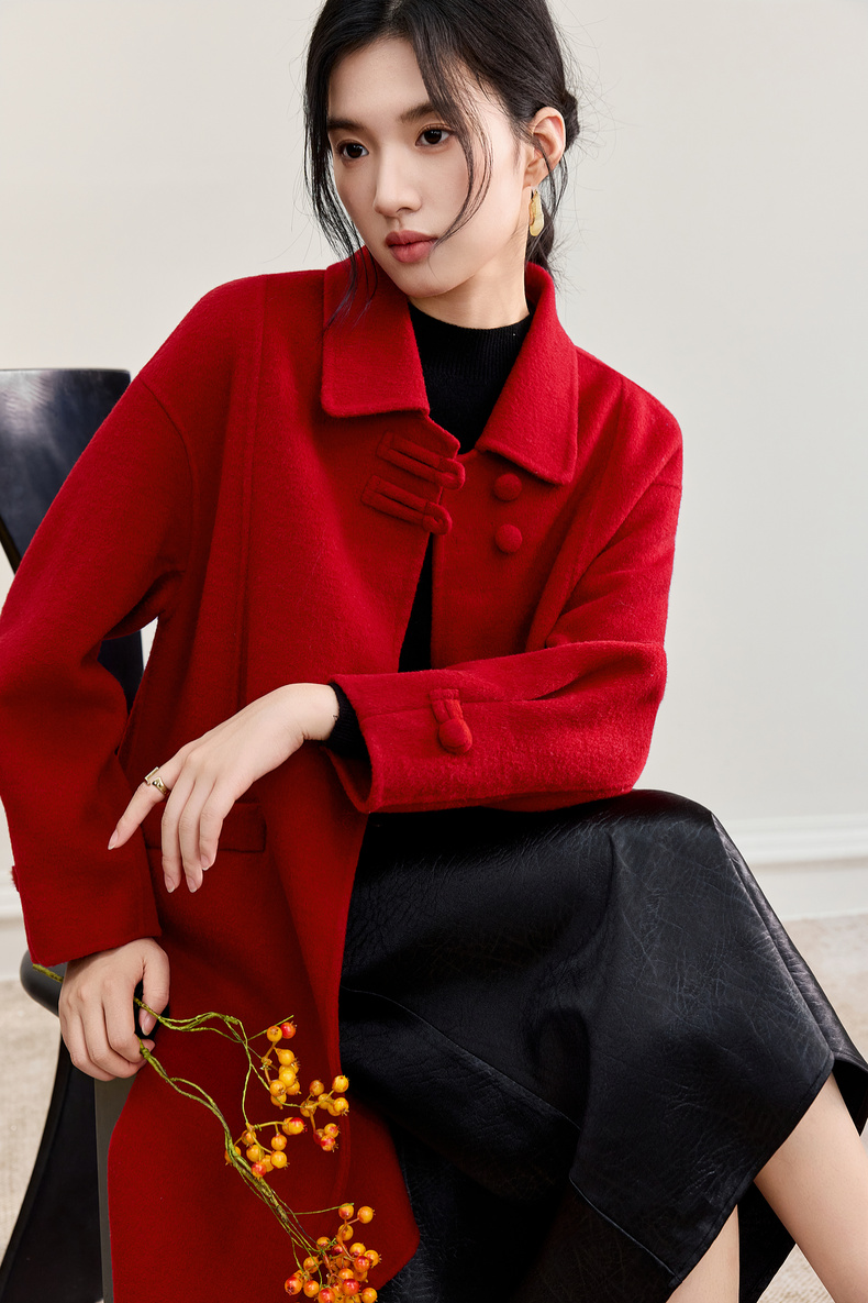 【内购】【绵羊毛】优雅通勤翻领国风一字盘扣宽松落肩保暖长款双面呢大衣-W54OC3440