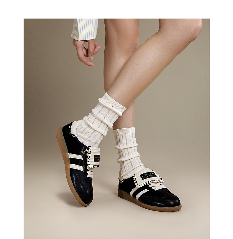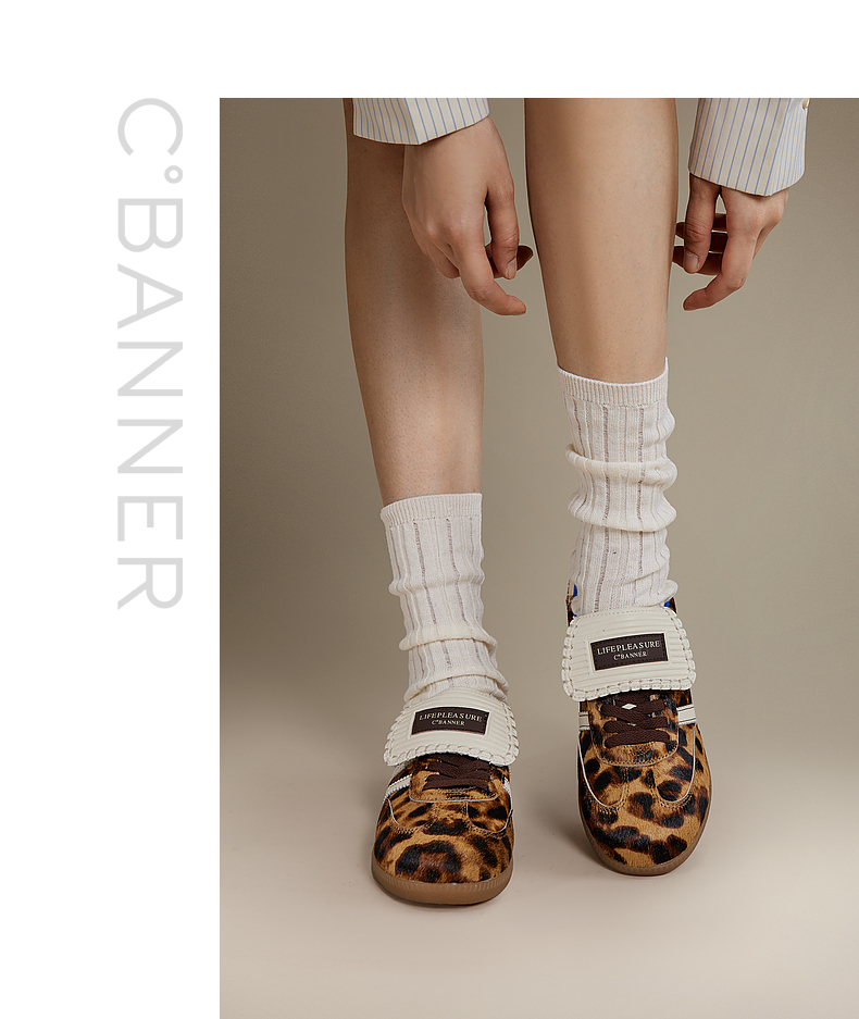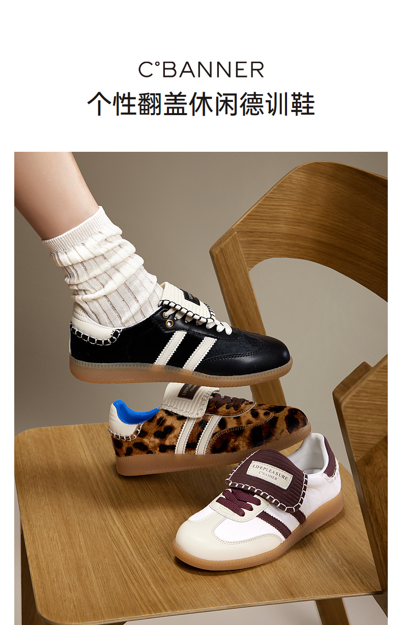 千百度复古个性德训鞋女秋季时尚休闲鞋豹纹潮酷运动鞋A24497802