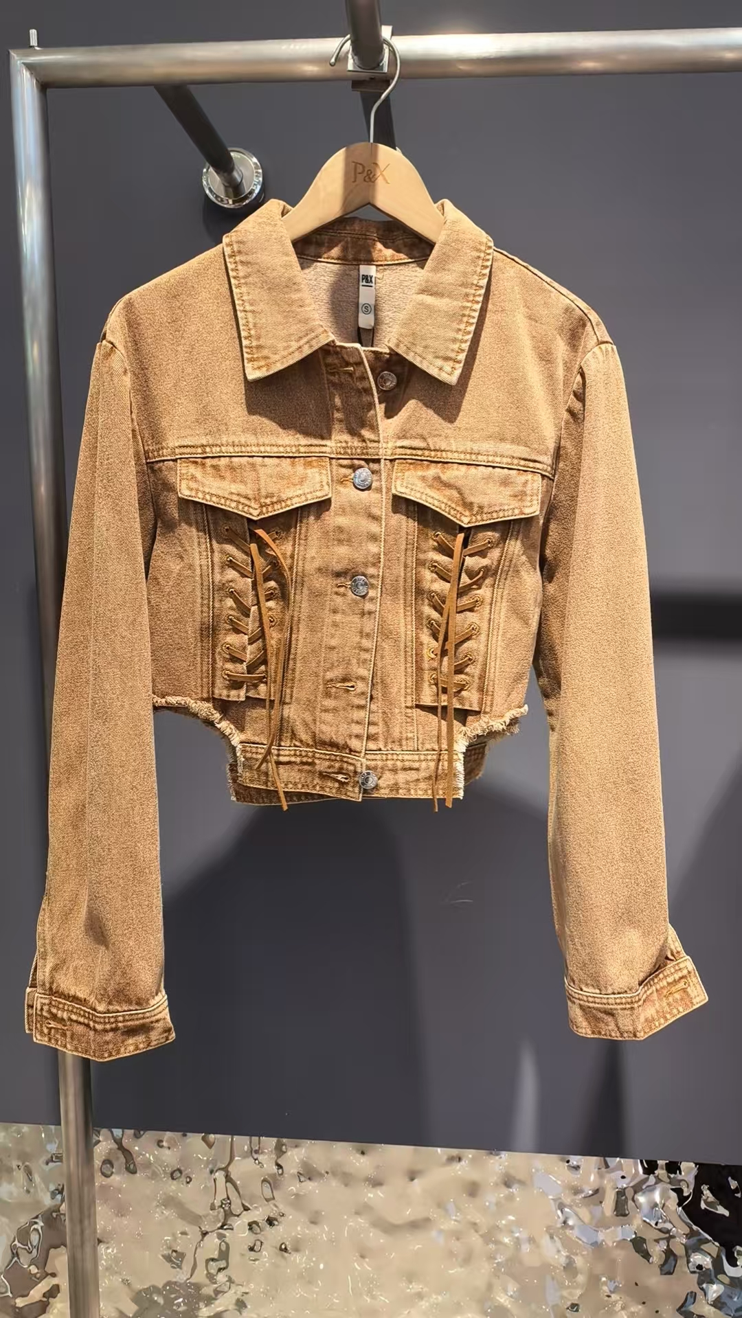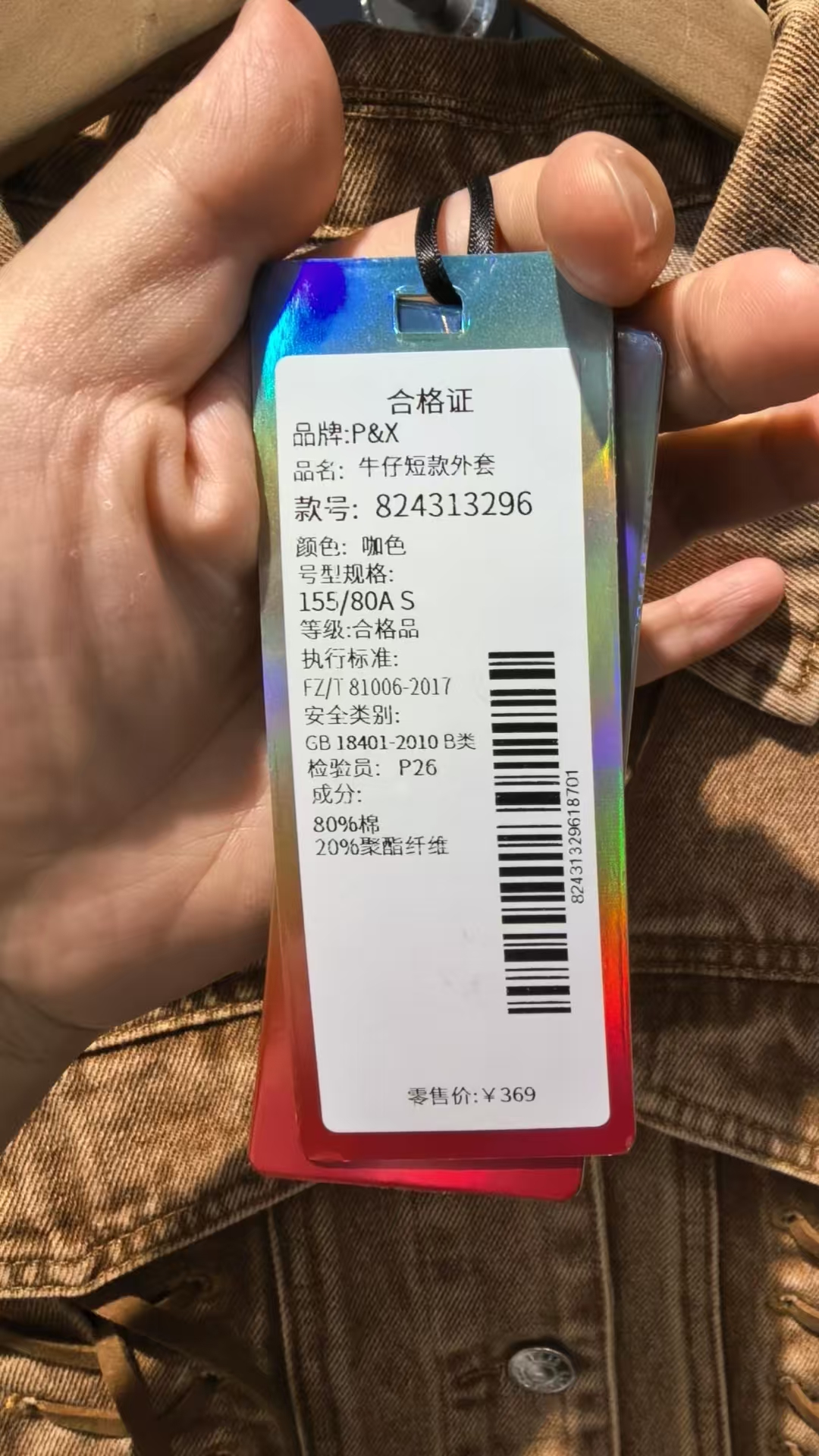 P&X设计师女装 牛仔短款外套824313296 咖色
