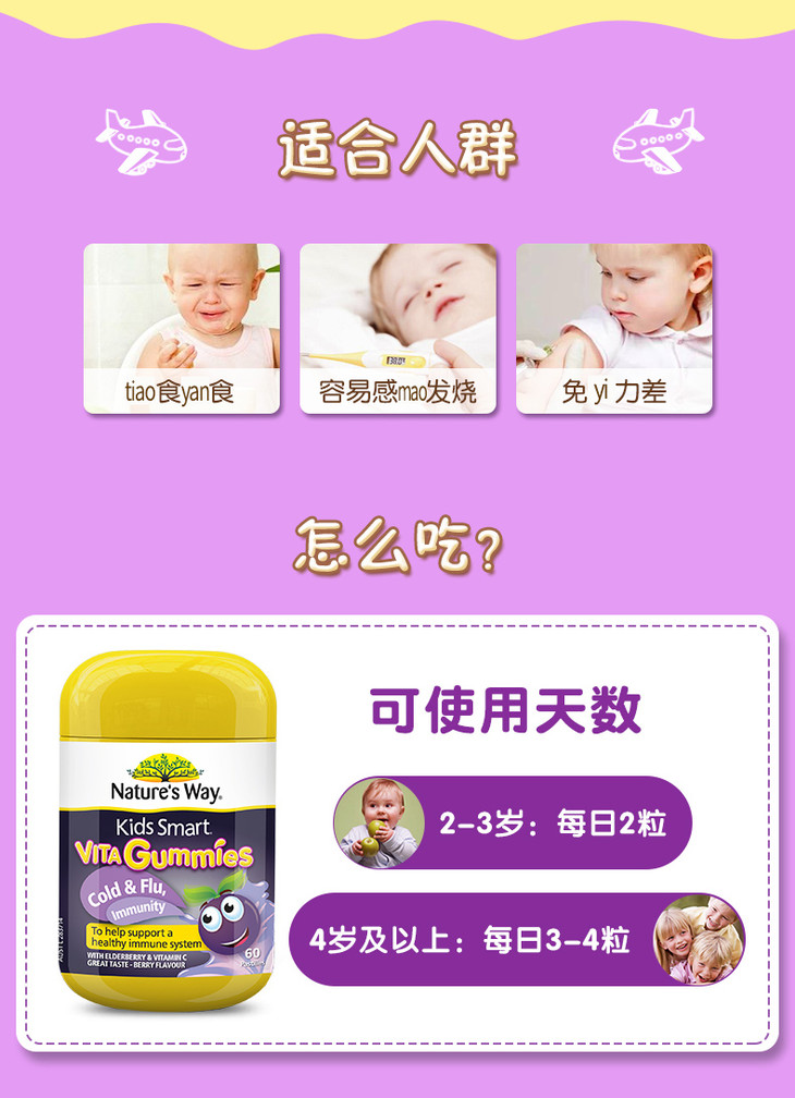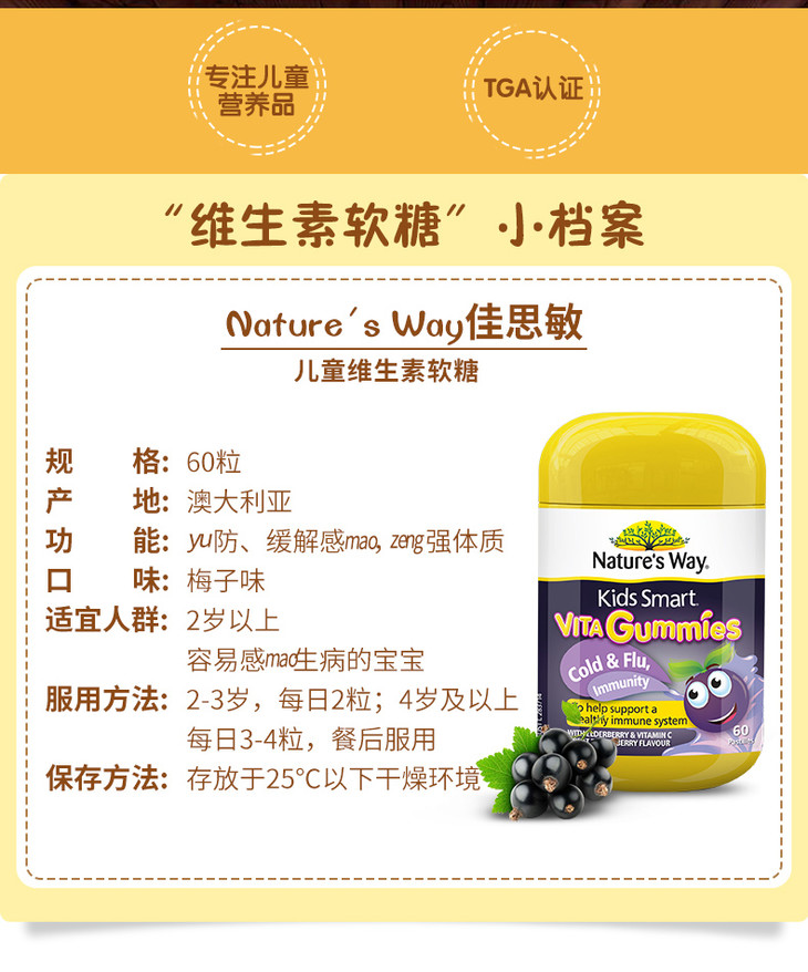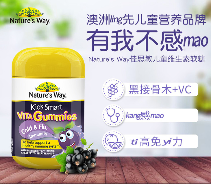 Nature’sWay/佳思敏儿童维生素接骨木软糖60粒(2瓶装)