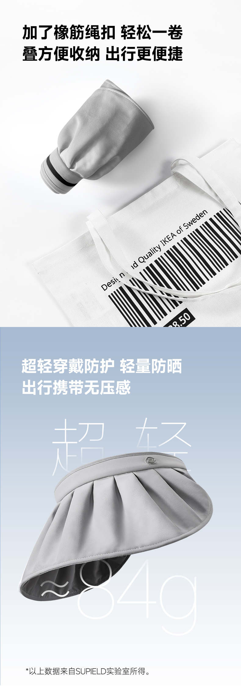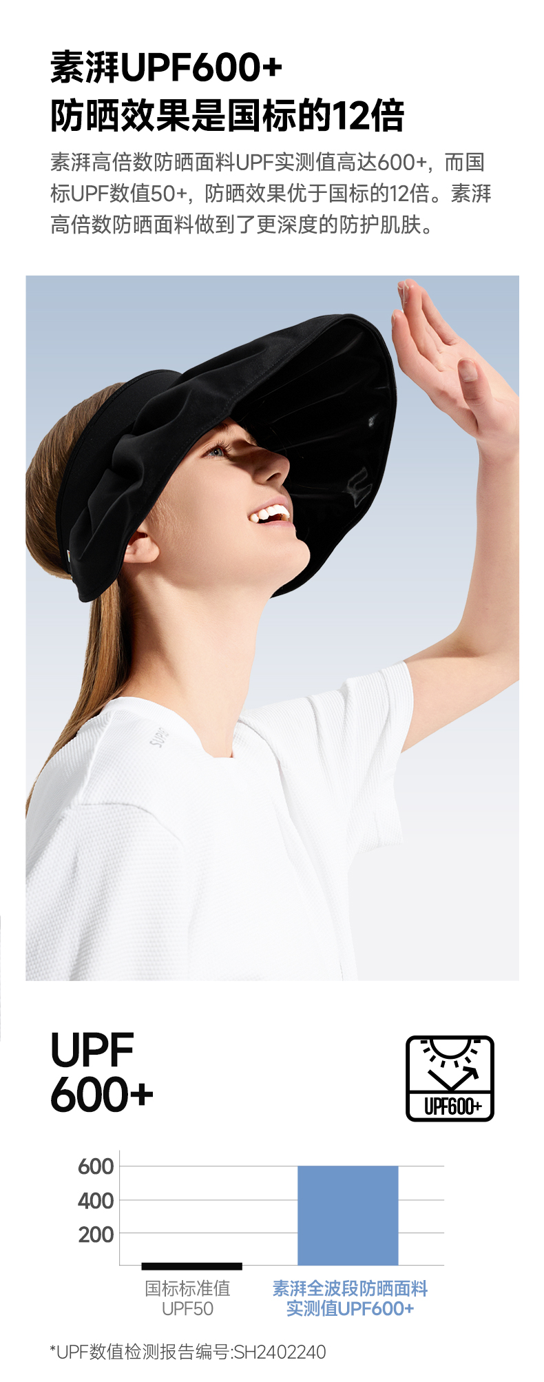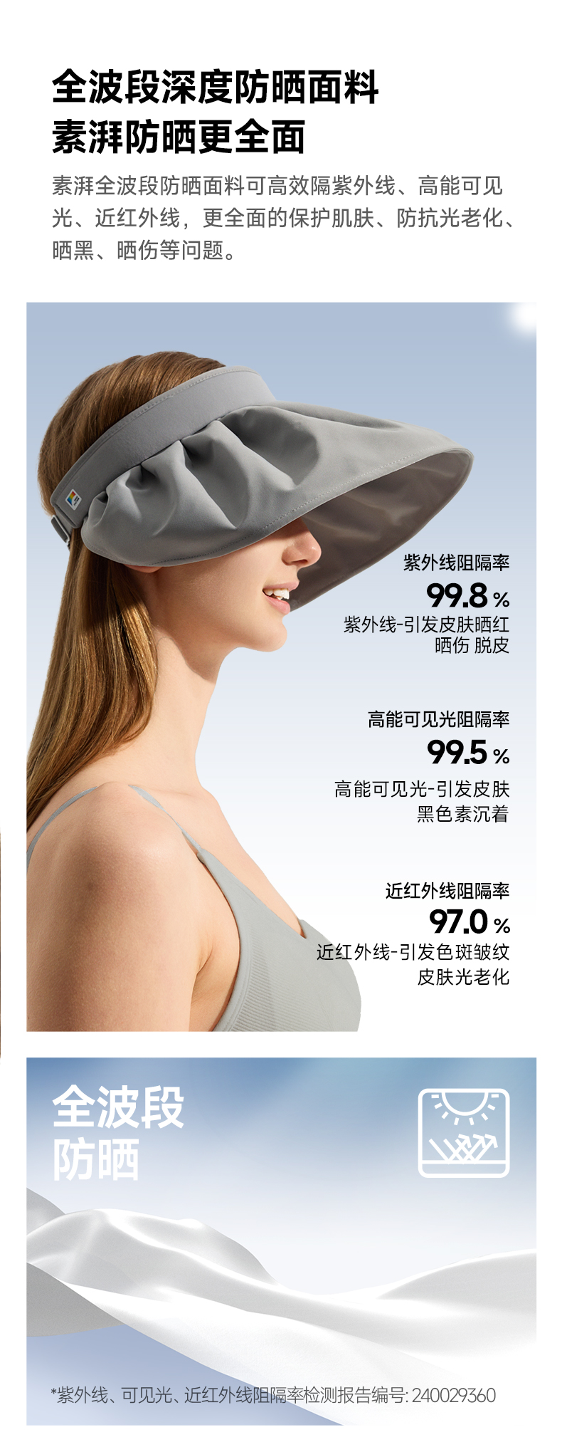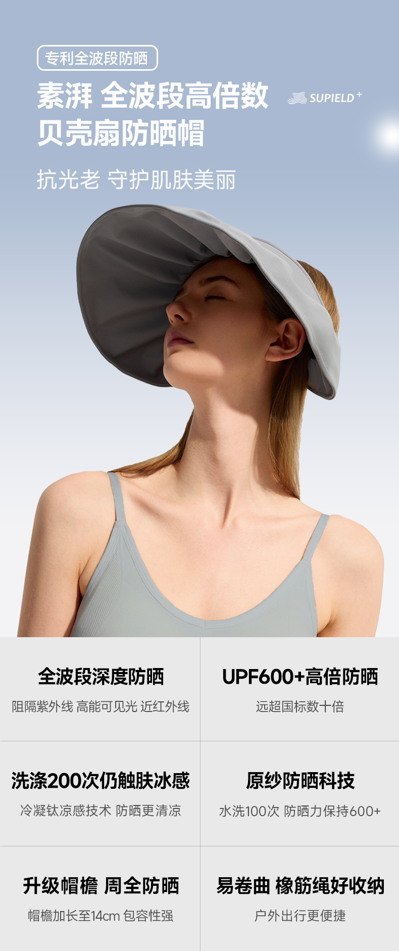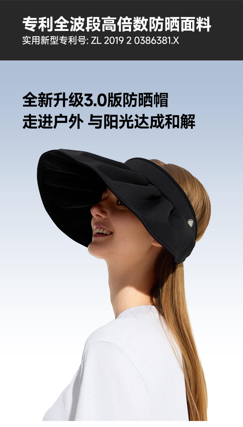 Supield素湃全波段空顶防晒帽女夏季防紫外线可折叠大帽檐太阳帽