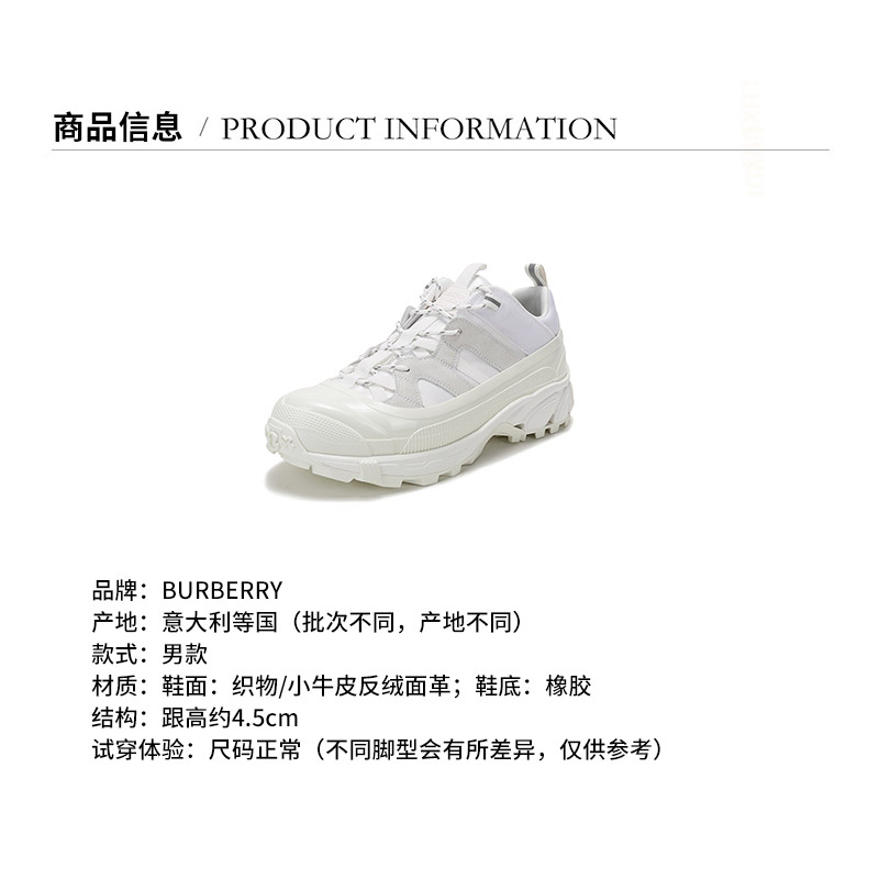 BURBERRY/博柏利 男款织物/小牛皮反绒面革Arthur系带休闲运动鞋老爹鞋 80203471
