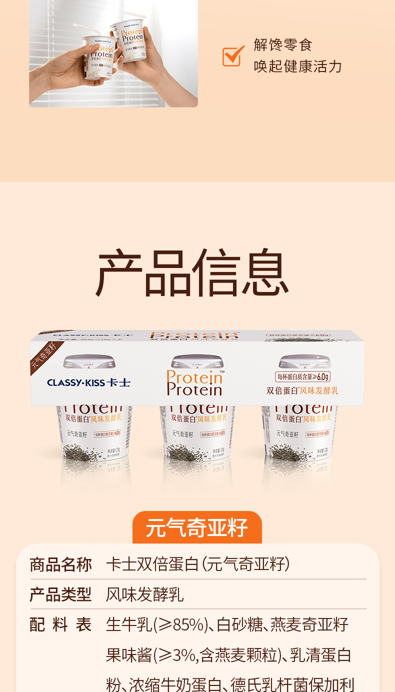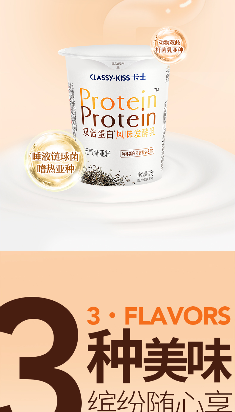 【7天内发出,发出后不支持拦截退货】卡士 双倍蛋白(原味/奇亚籽/柠橙)128g 9瓶装/12瓶装