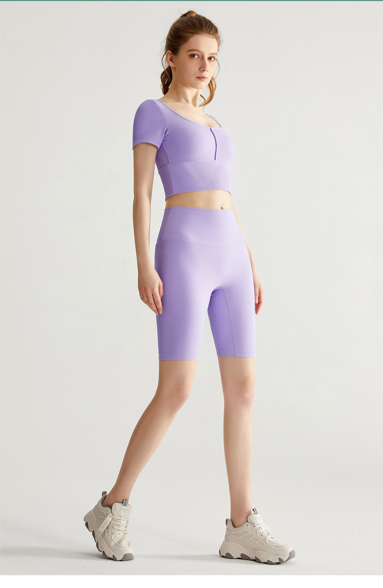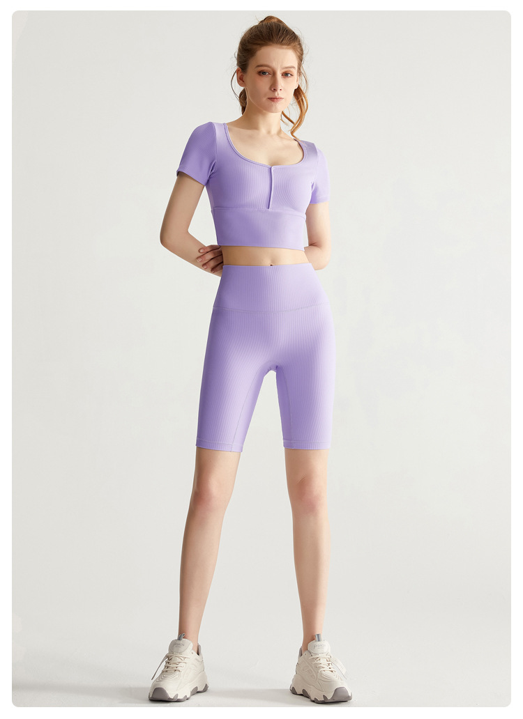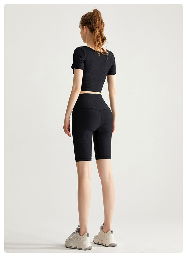 福利款丨【两件套】螺纹一体式运动短袖女外穿跑步健身套装