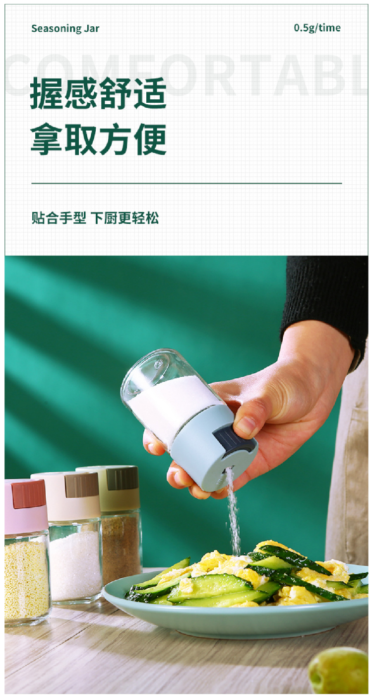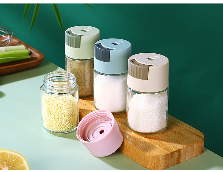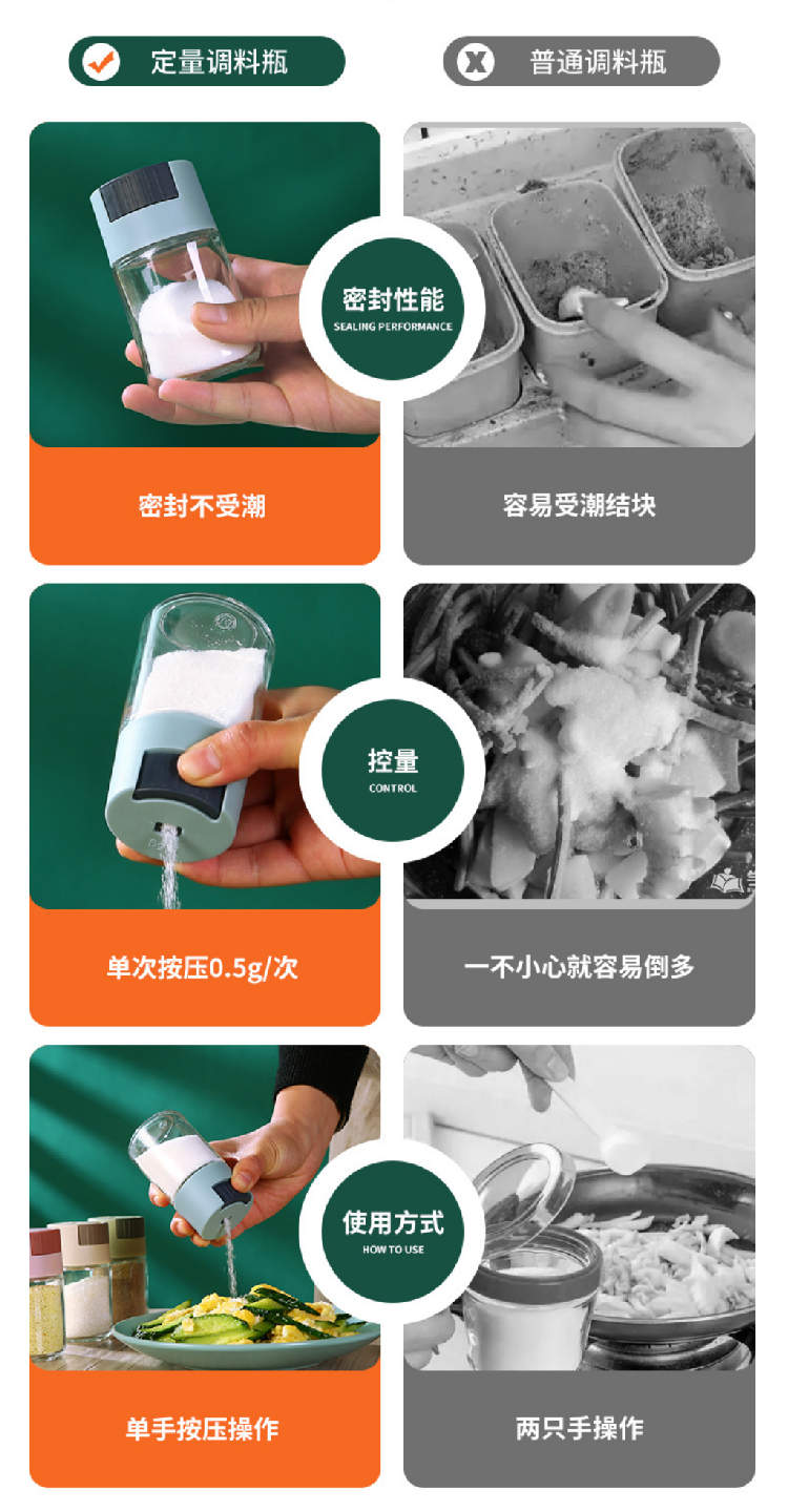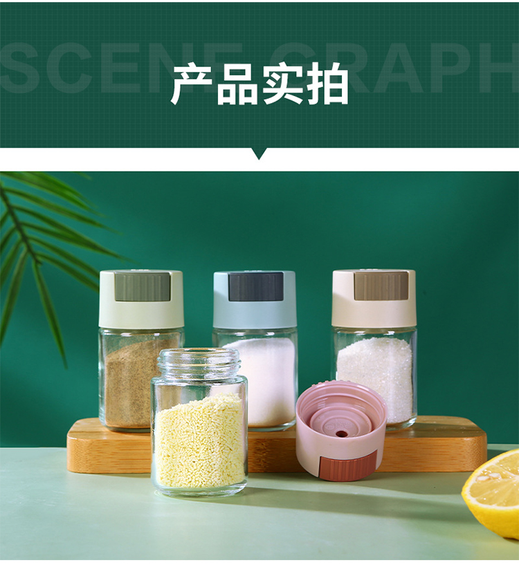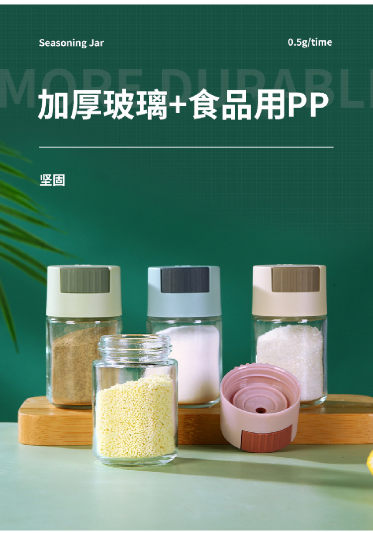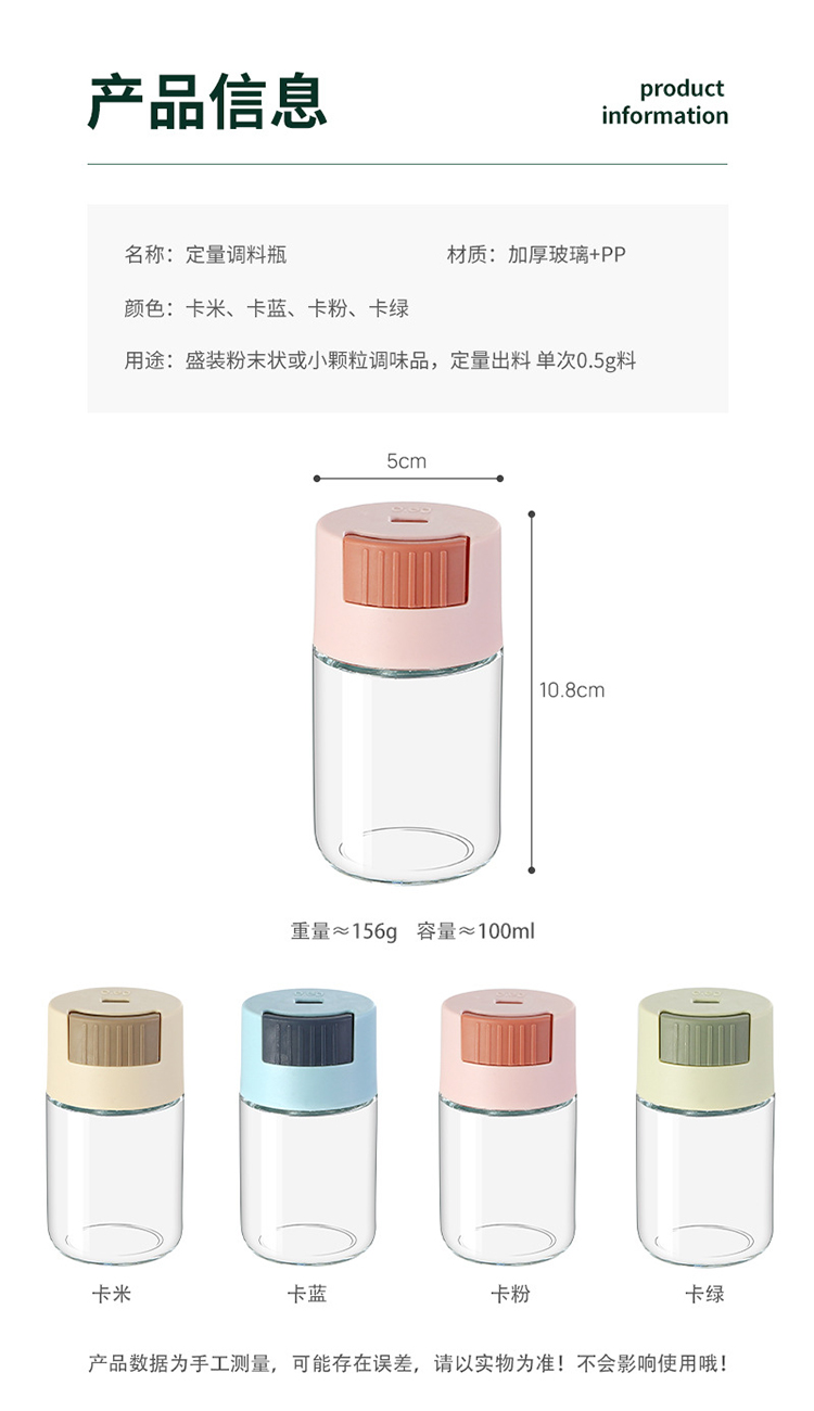 【定量调料瓶4只装】厨房按压圆形玻璃佐料瓶 烧烤调料罐计量控盐瓶