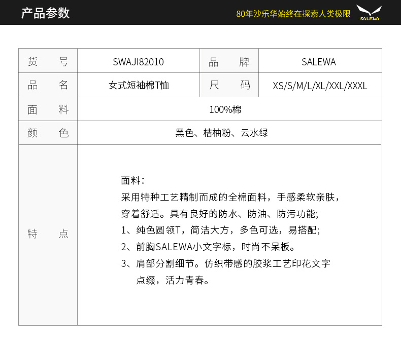 SALEWA|女式短袖棉T恤 SWAJI82010