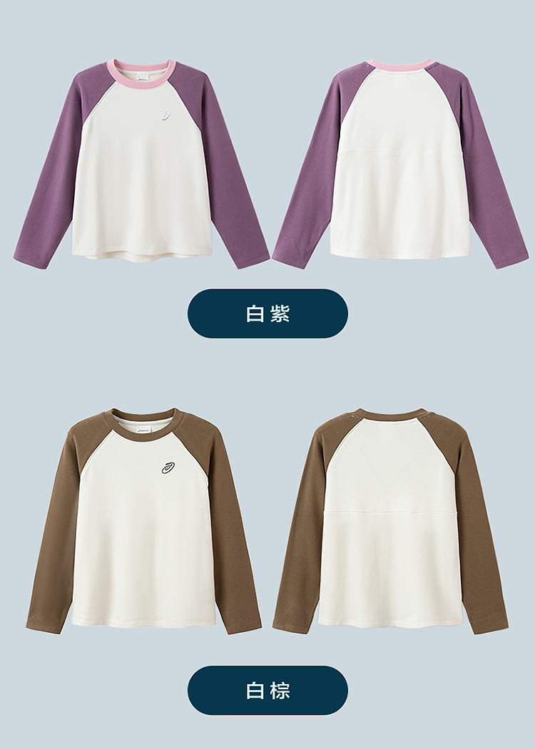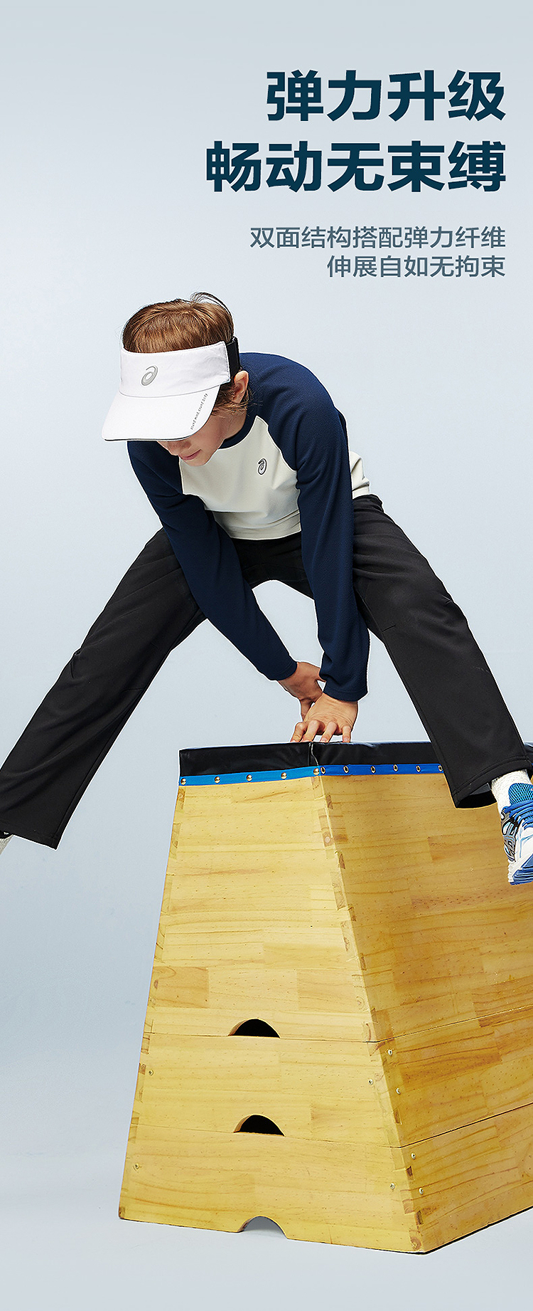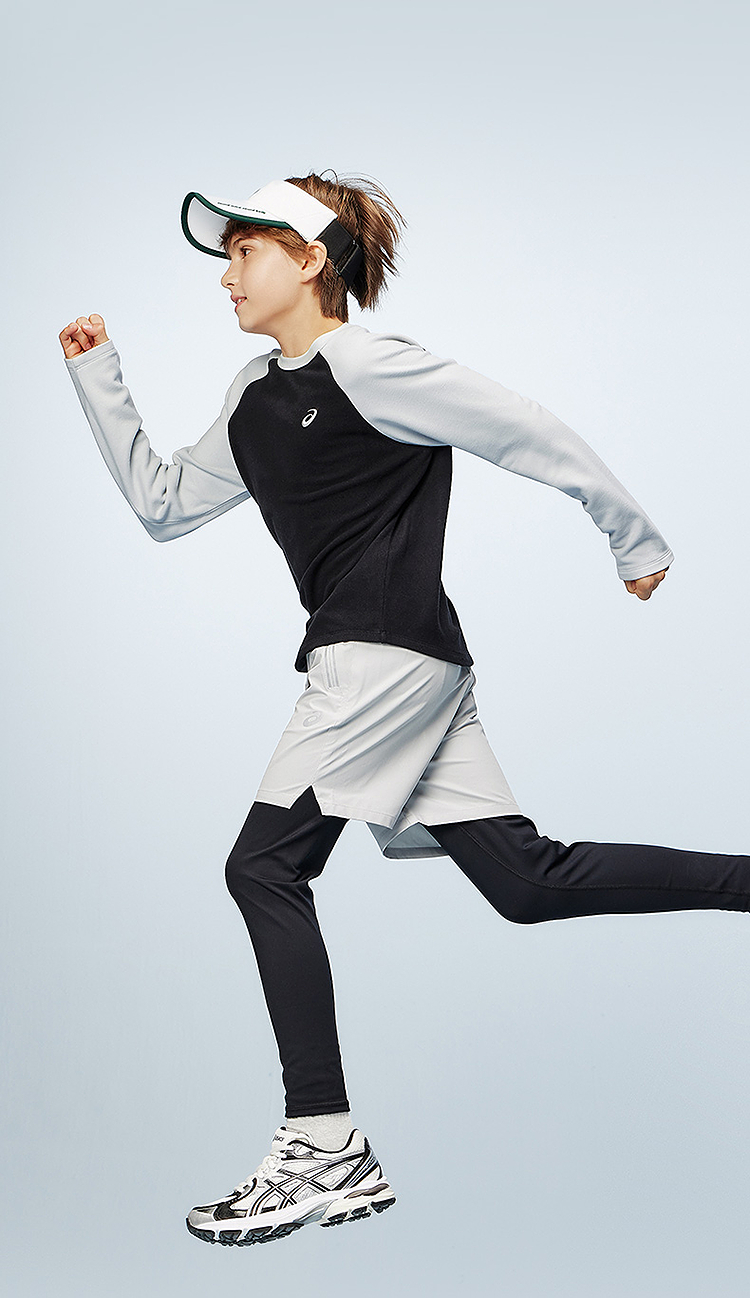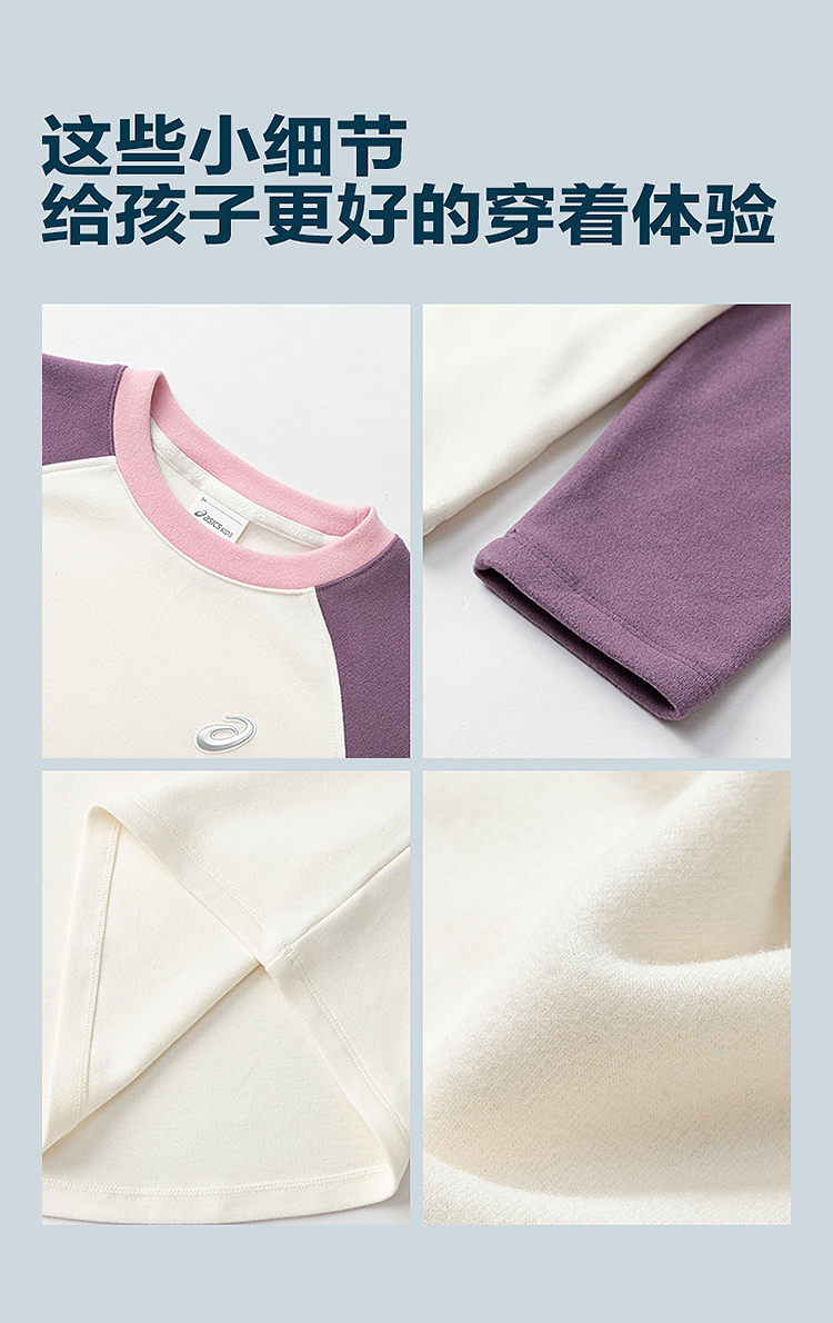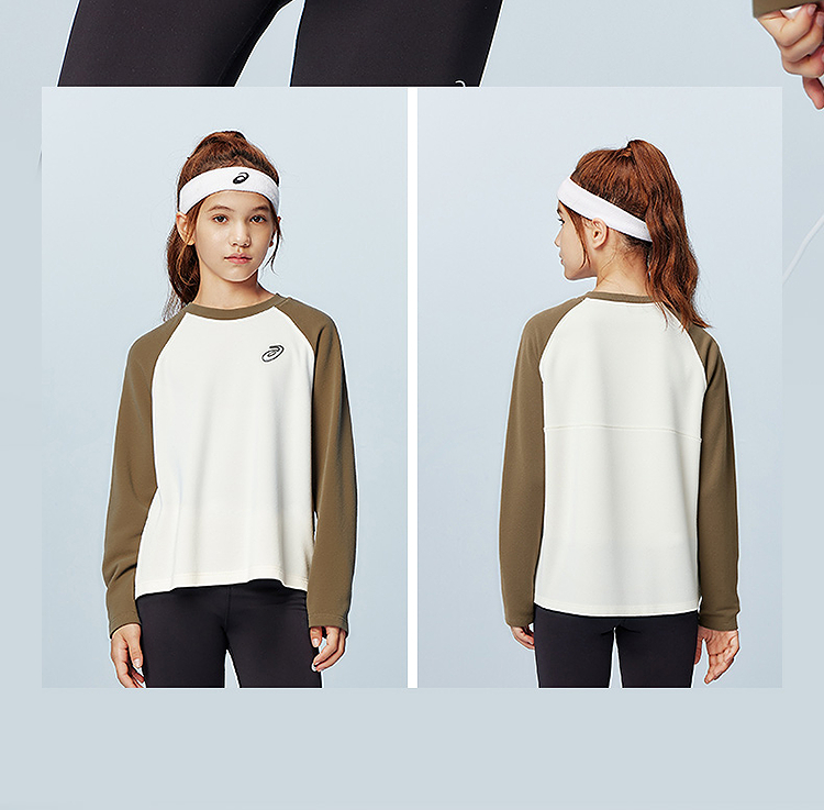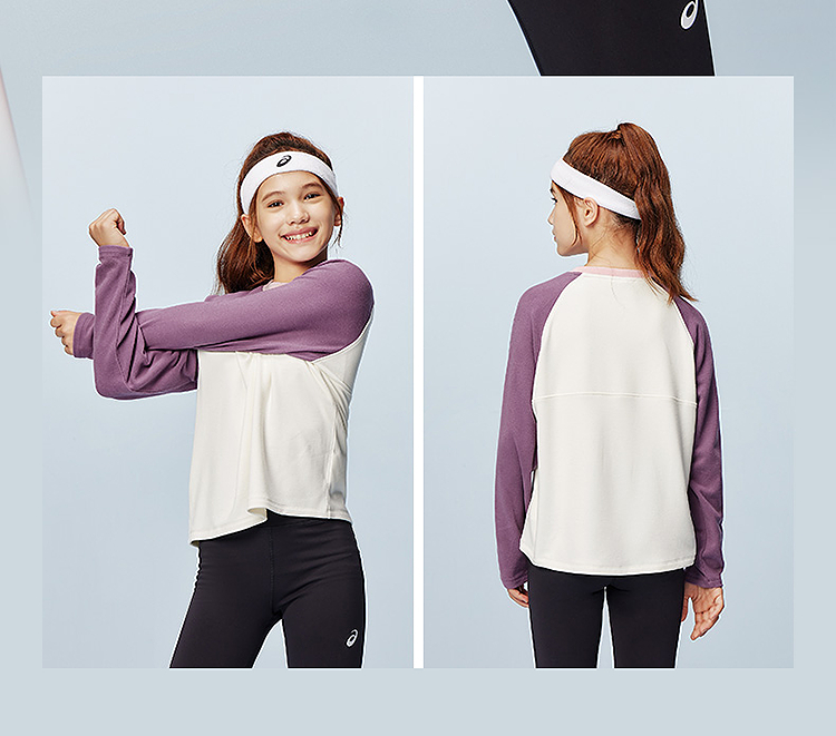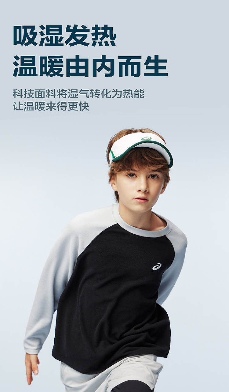 ASICS/亚瑟士童装25年冬季儿童长袖拼色插肩袖保暖舒适吸湿发热