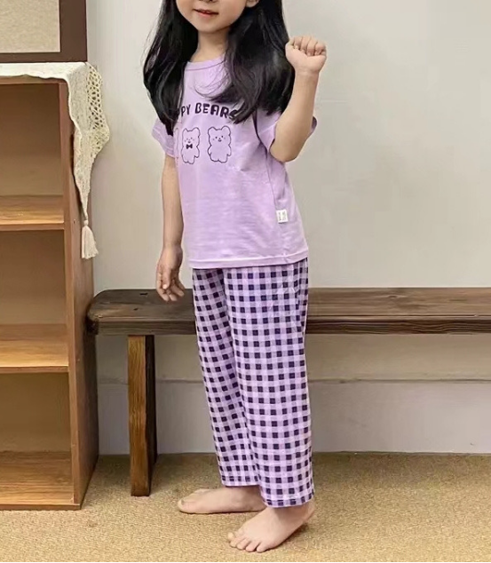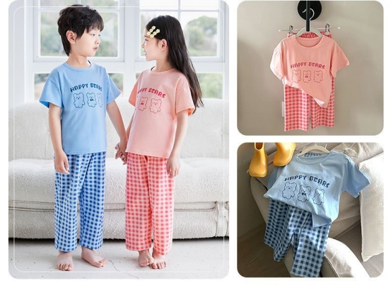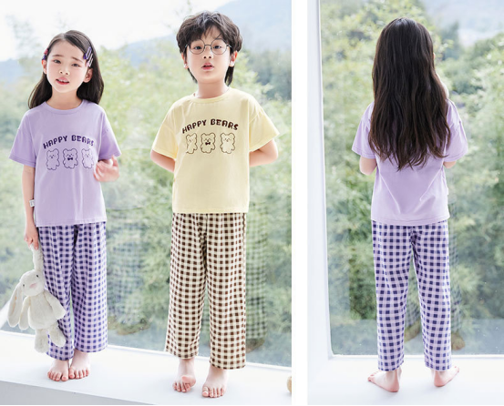 💫比裸睡还舒服❗️【索菲文·亲子格纹莱卡棉家居服】 🍁藏在云朵里的舒适❗️一套解决N种需求,居家or打底or睡衣🎉🎉儿童亲子款 短袖➕九分裤 ❗像果冻一样清新马卡龙配色,质感绝啦!好看又好穿!视觉上看着舒服,手感上更加轻柔〰️