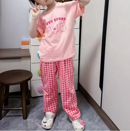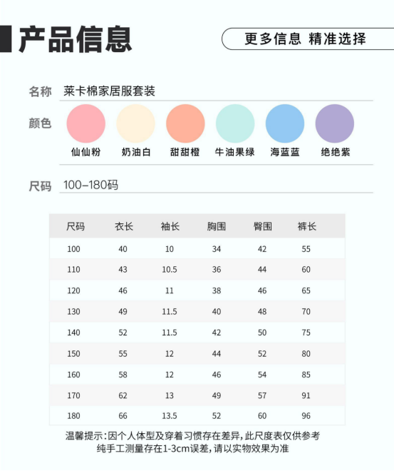 这款莱卡棉材质家居服,舒适无刺激,超柔超软糯,透气吸湿不过敏! 95%棉+5%氨纶 A类婴幼儿面料 新型水性印染不易褪色,可手洗机洗方便清洁✅ 6个花色闭眼必入!!短袖+九分裤,男女宝亲子搭配可爱加倍! 100码-180码,身高选择可到170cm🥳(喜欢宽松的建议拍大一码) 要好看,也要好舒适~
