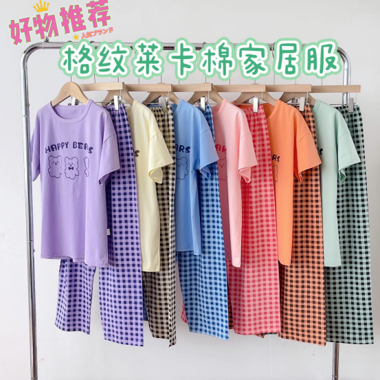 🛒【格纹莱卡棉家居服套装】🌸1、像果冻一样清新马卡龙配色,质感绝啦!好看又好穿!🉑