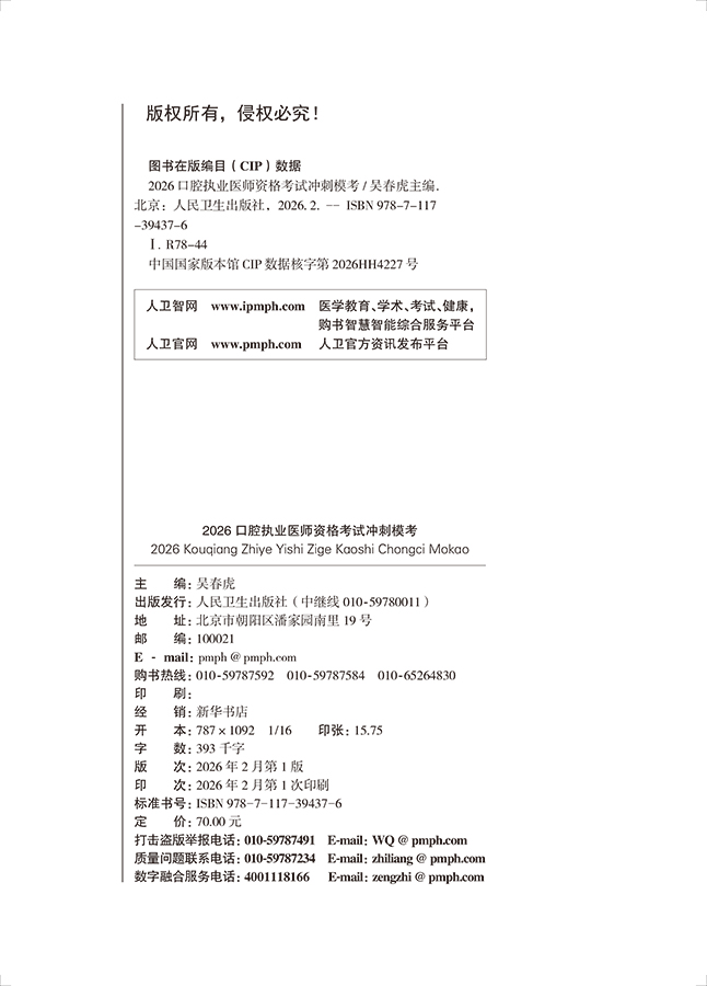 考试达人2026口腔执业医师资格考试冲刺模考 医师资格考试用书 吴春虎 医药卫生类职称考试 执业医师 9787117394376人民卫生出版社