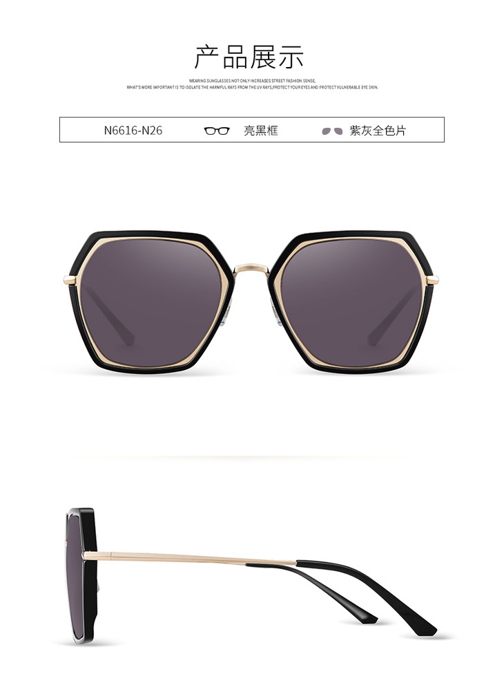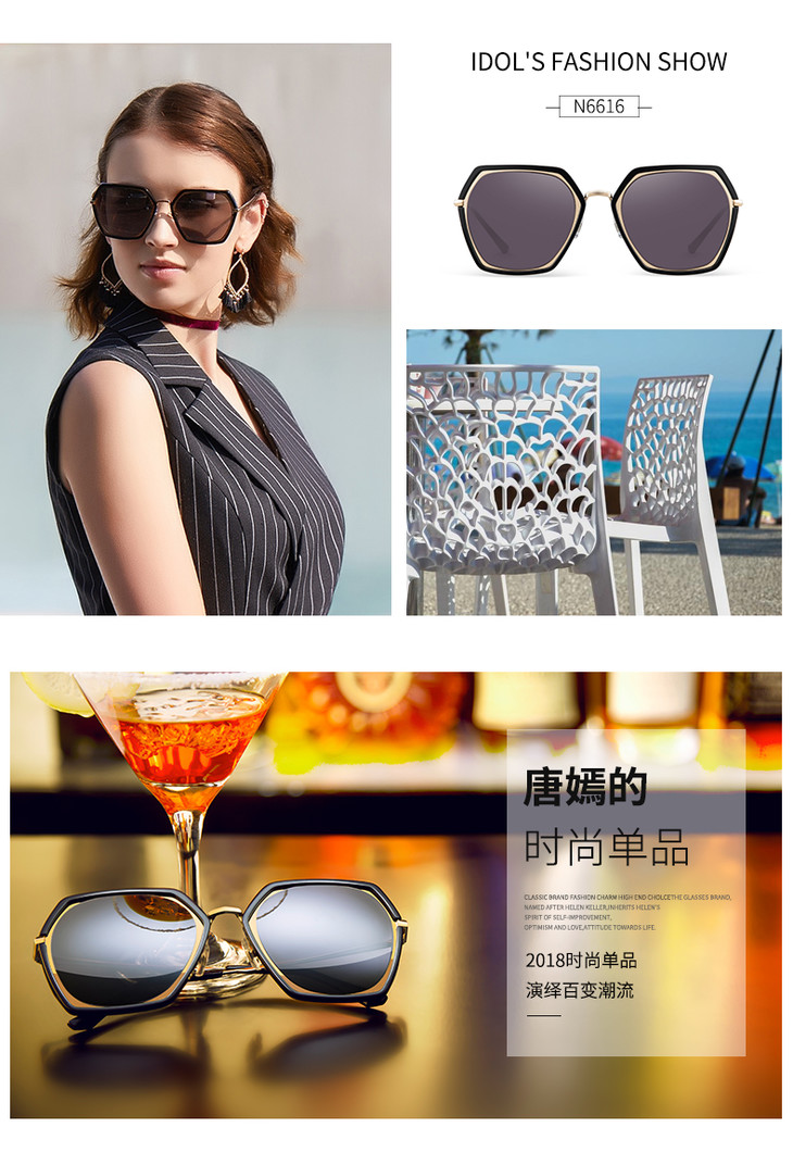 海俪恩新款女士炫彩墨镜个性时尚潮人太阳镜几何街拍大框N6616