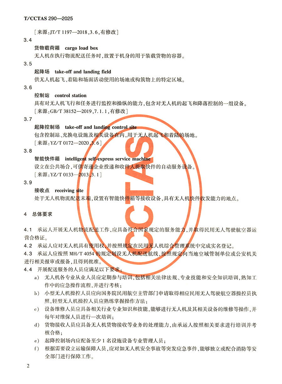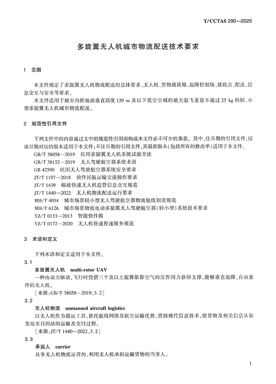 书名:多旋翼无人机城市物流配送技术要求T/CCTAS 290—2025