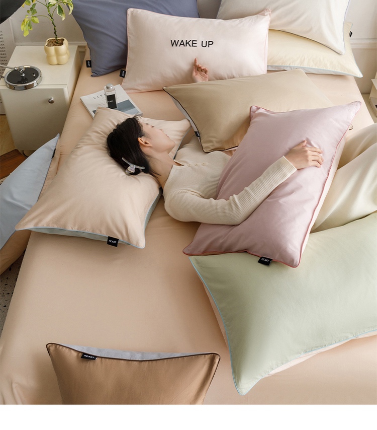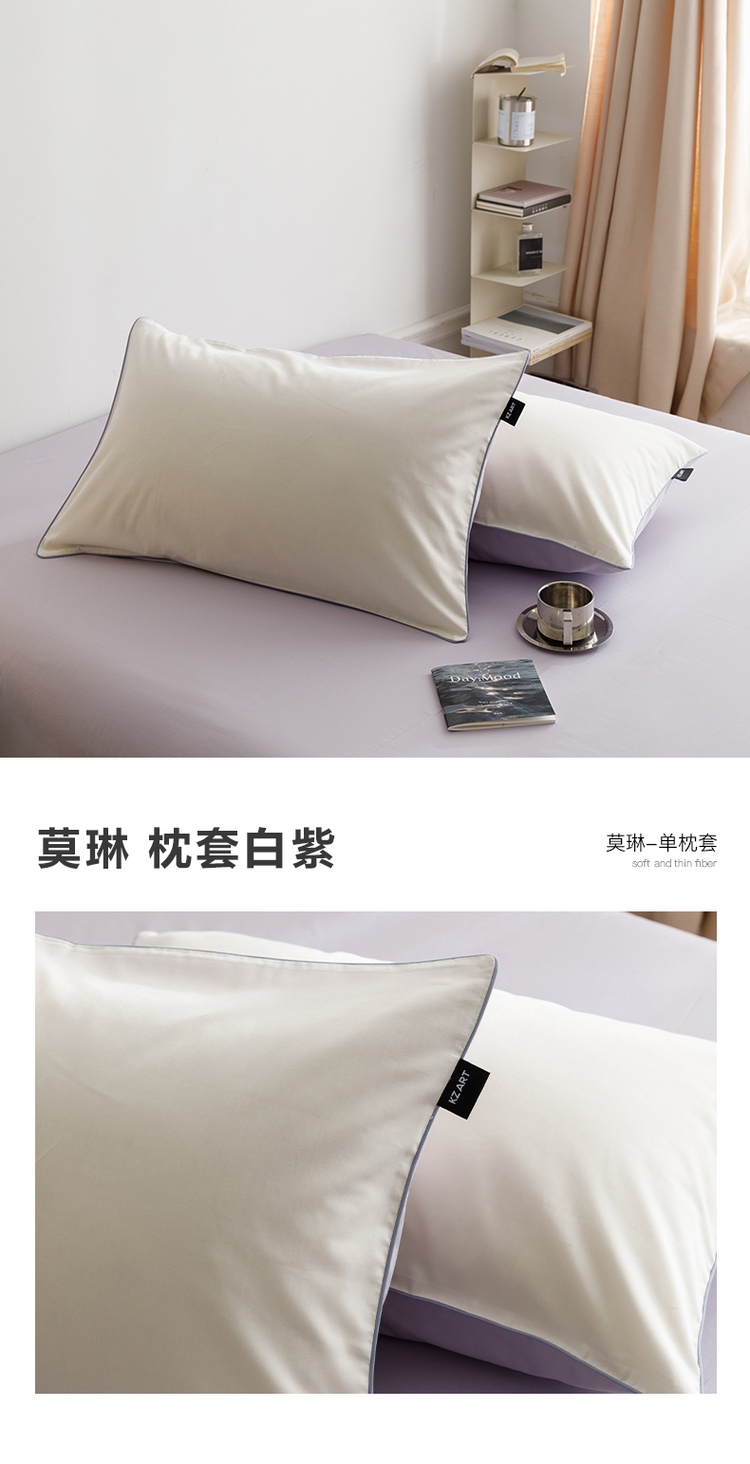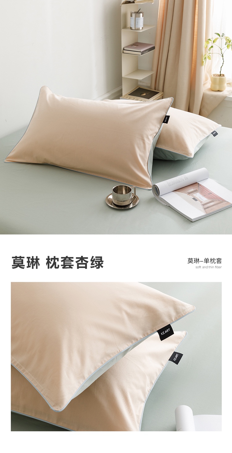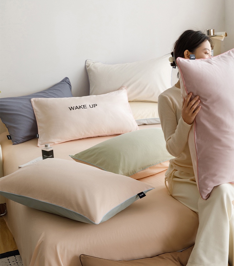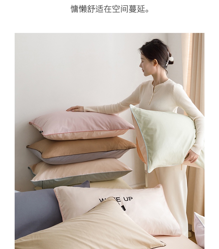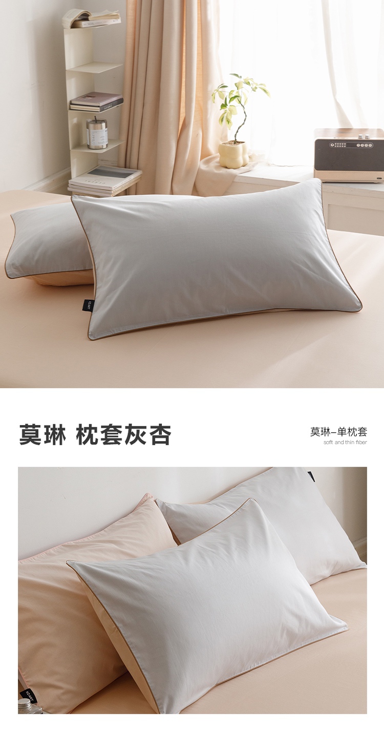【清仓55元/2对装共4只】简约北欧风全棉纯色双拼单枕套【不支持退换货】