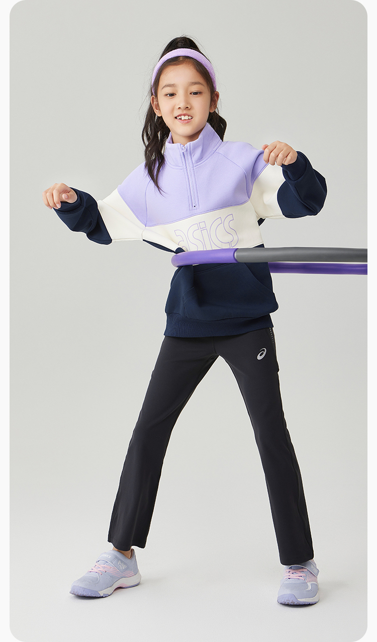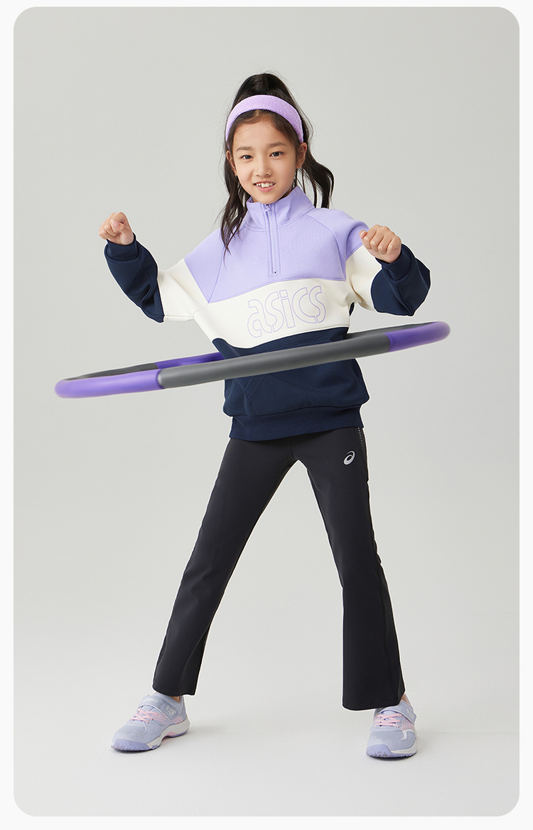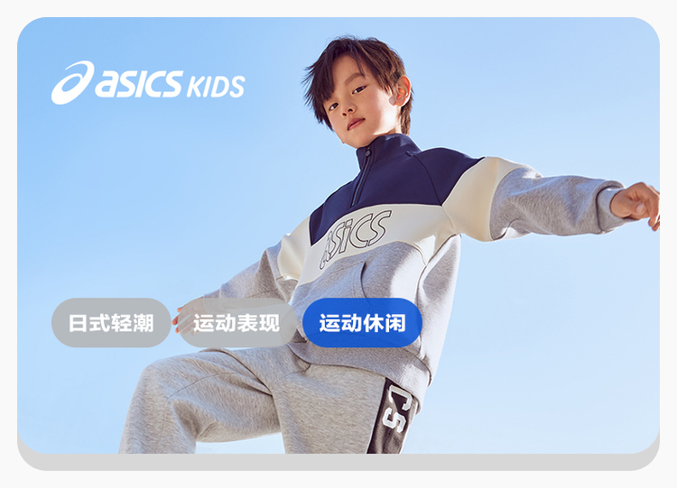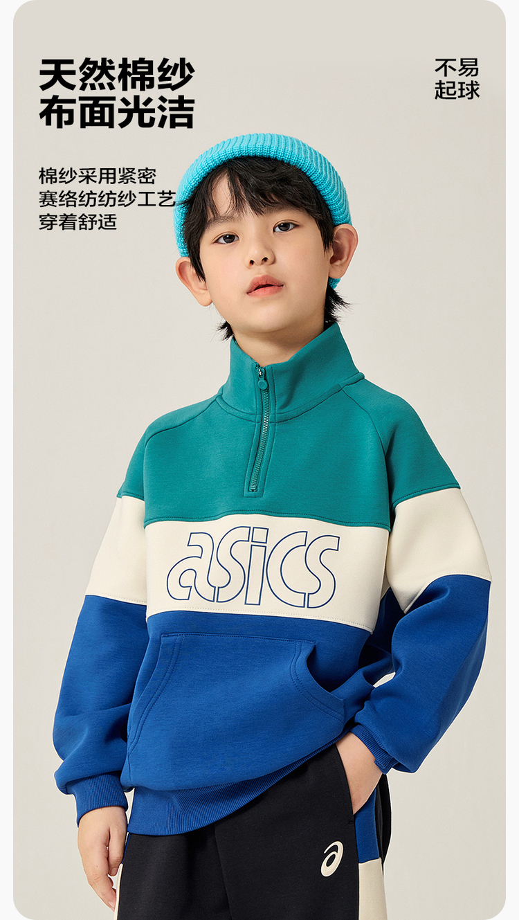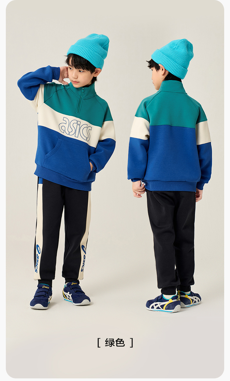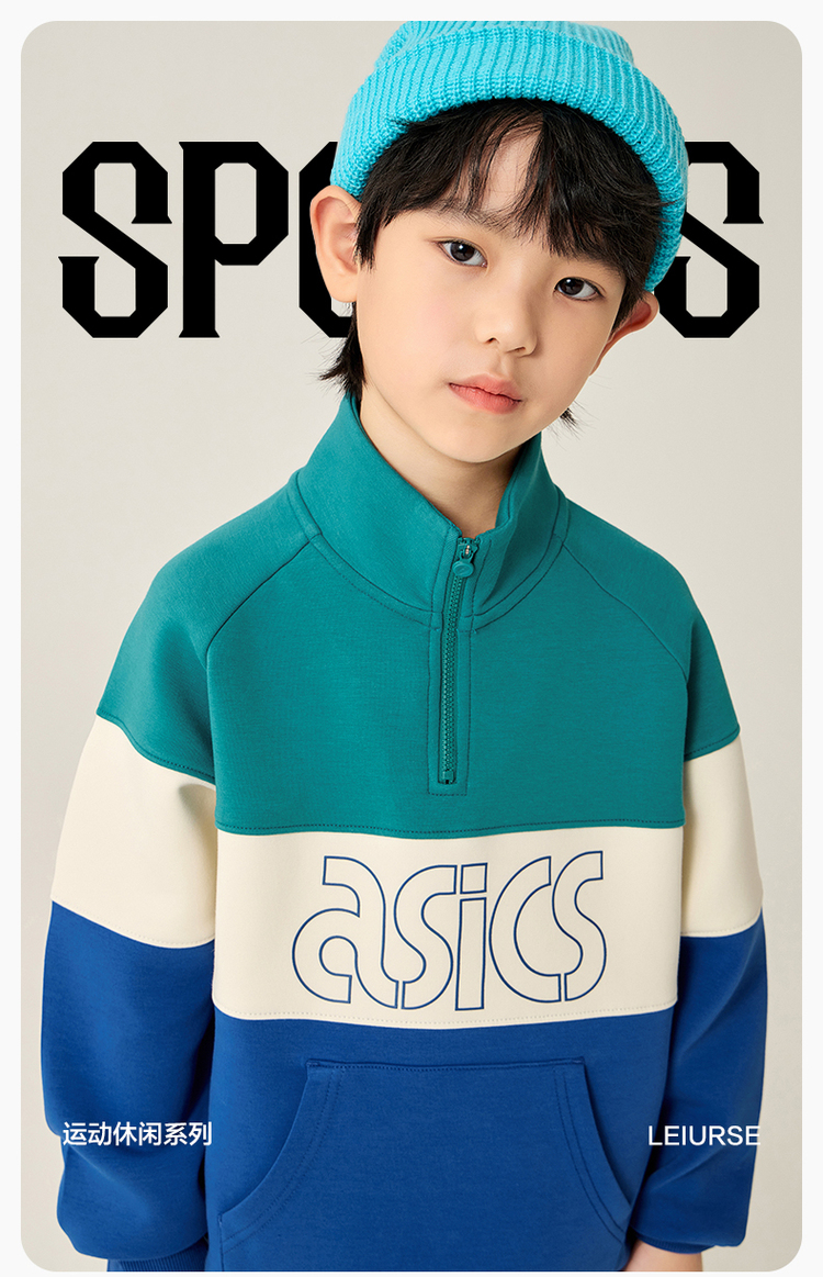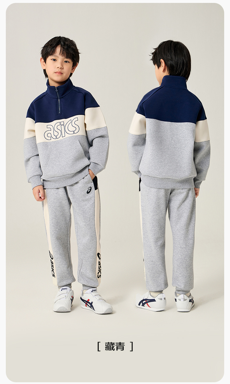 ASICS/亚瑟士童装23年秋季新款男童运动休闲个性插肩长袖卫衣T恤