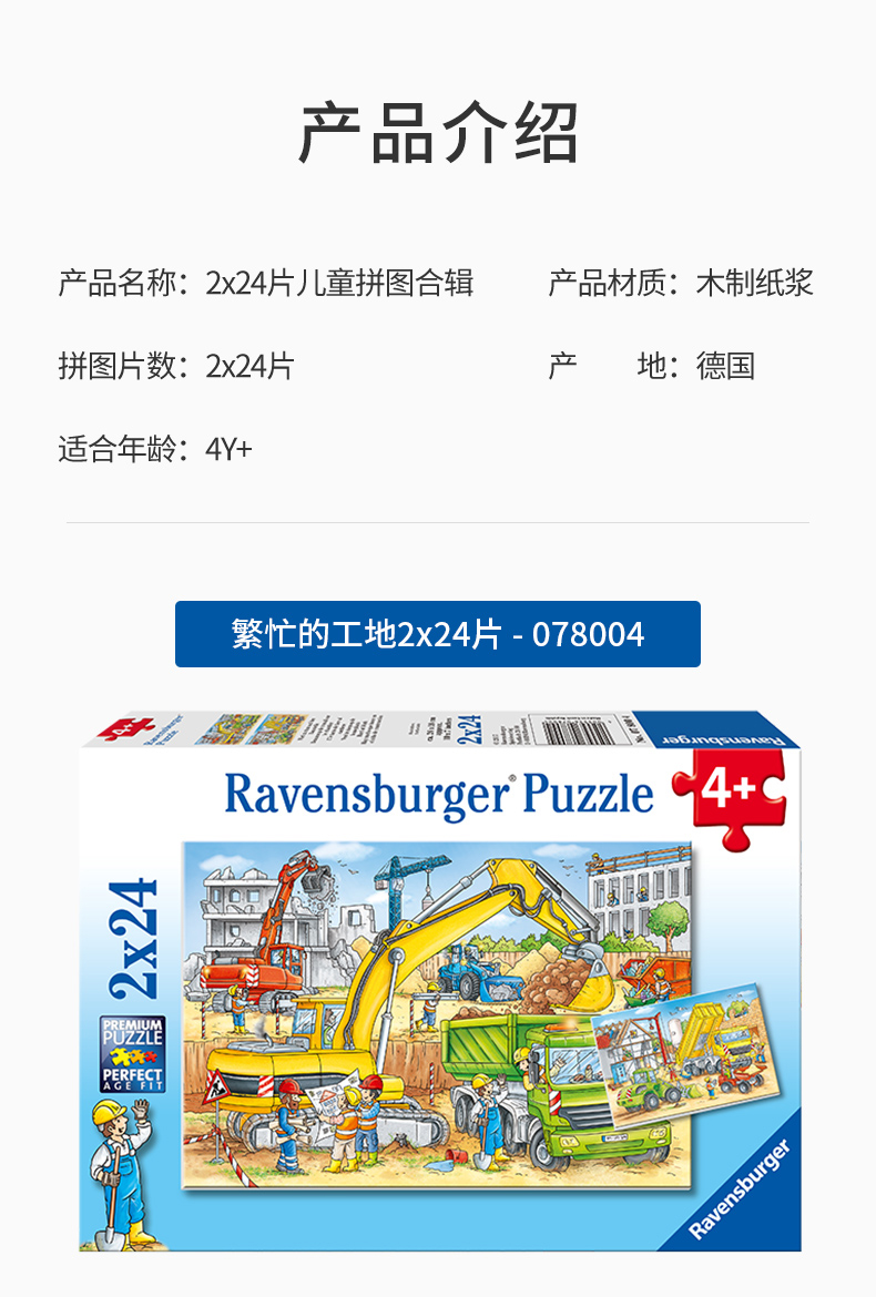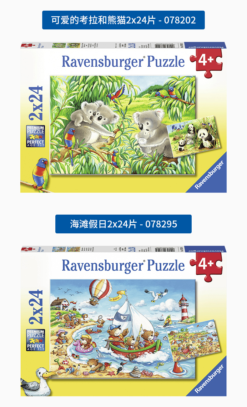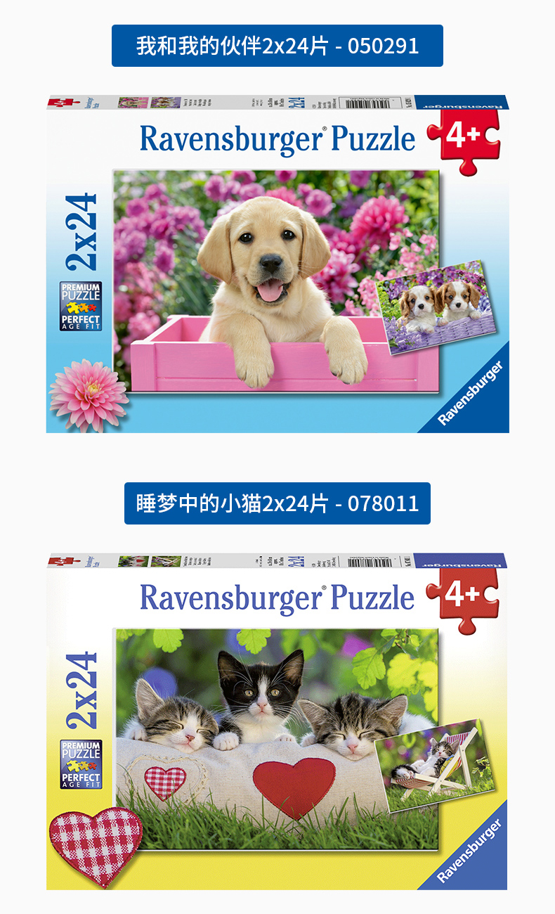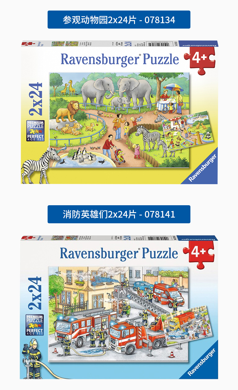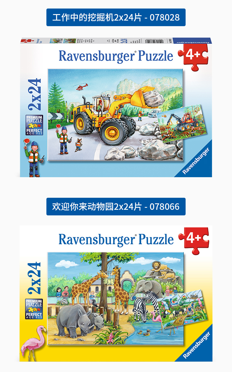 Ravensburger拼图 儿童益智玩具动物园2x24片男孩女孩