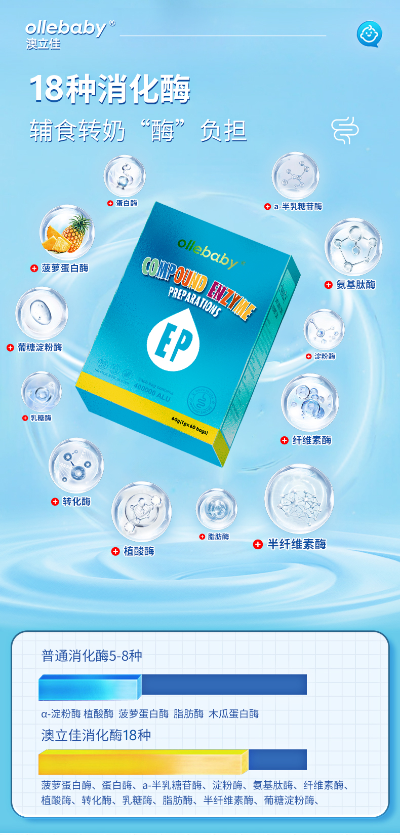 ollebaby【升级版】澳立佳18种多维消化酶复配酶制剂(60袋)