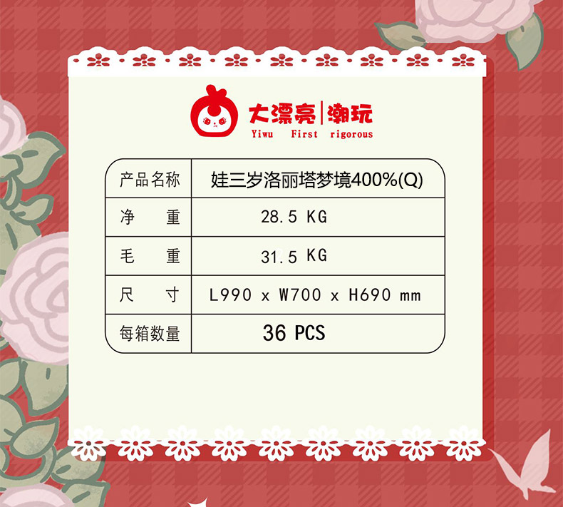 娃三岁洛丽塔梦境400%毛绒盲盒-纪念日百货门店同款168000400