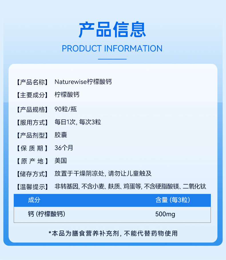 Naturewise牌柠檬酸钙胶囊90粒
