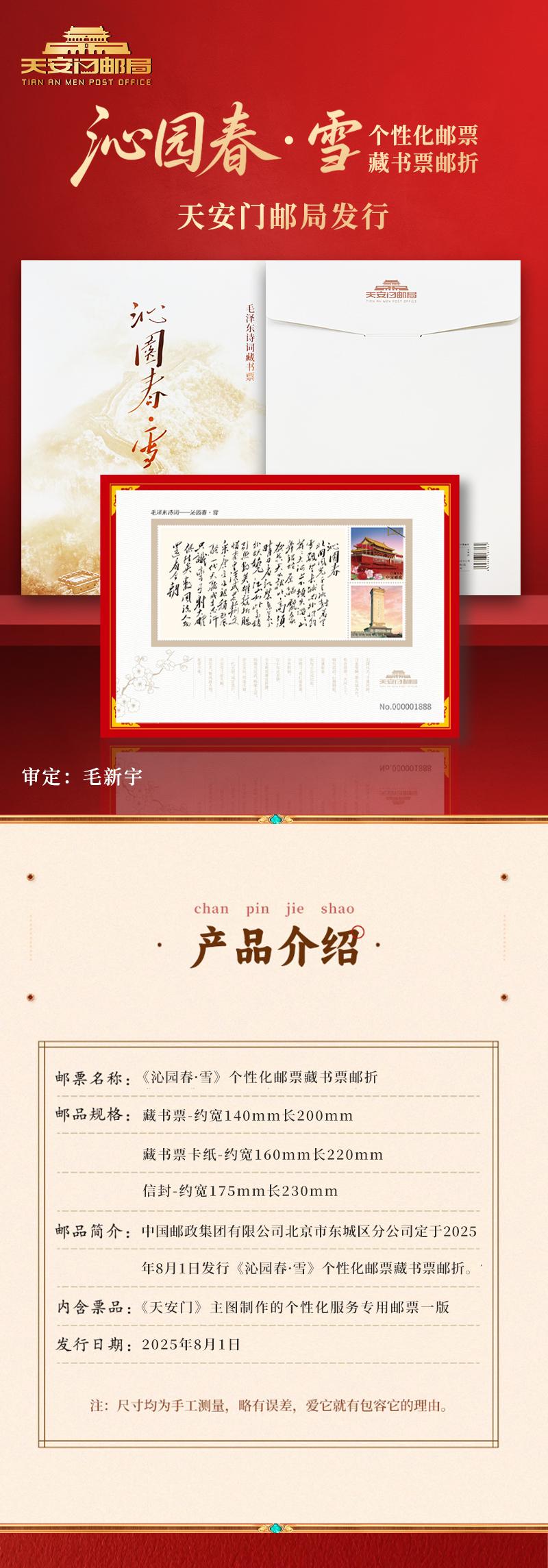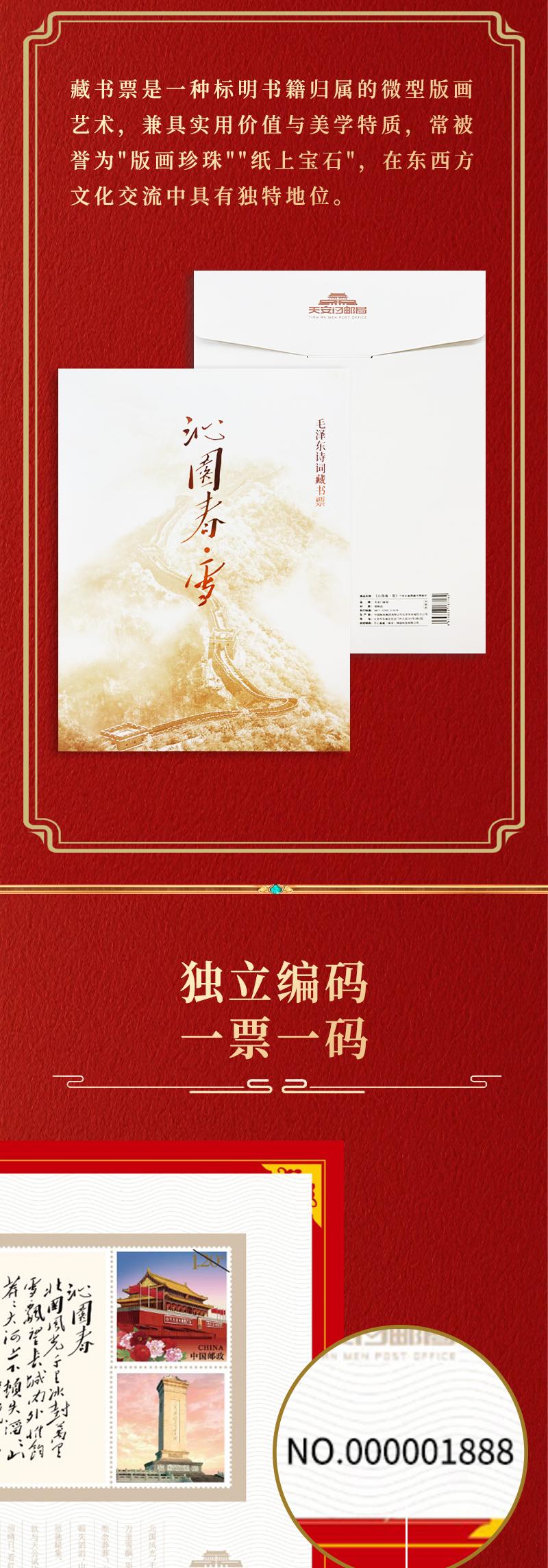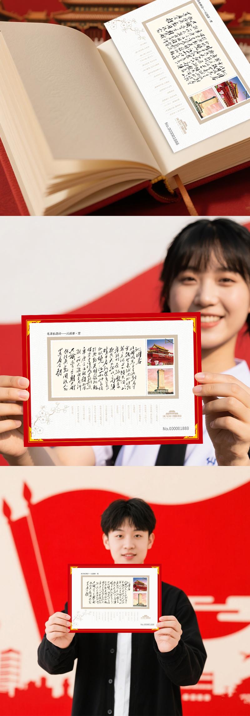 毛主席题词《沁园春•雪》个性化邮票藏书票邮折