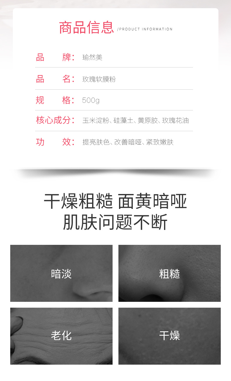 【69元3件、99元5件】玫瑰软膜粉面膜丨 500g 养颜淡斑