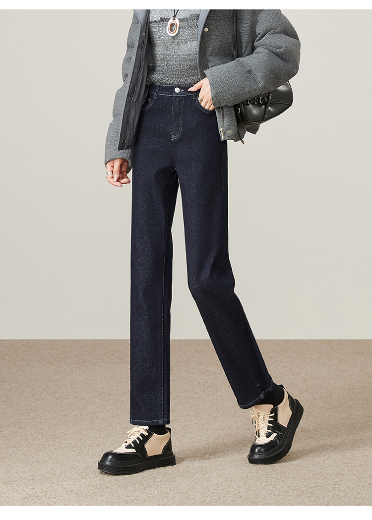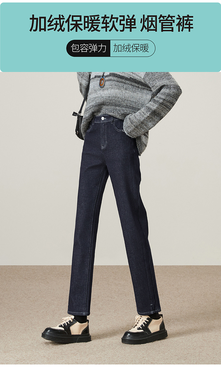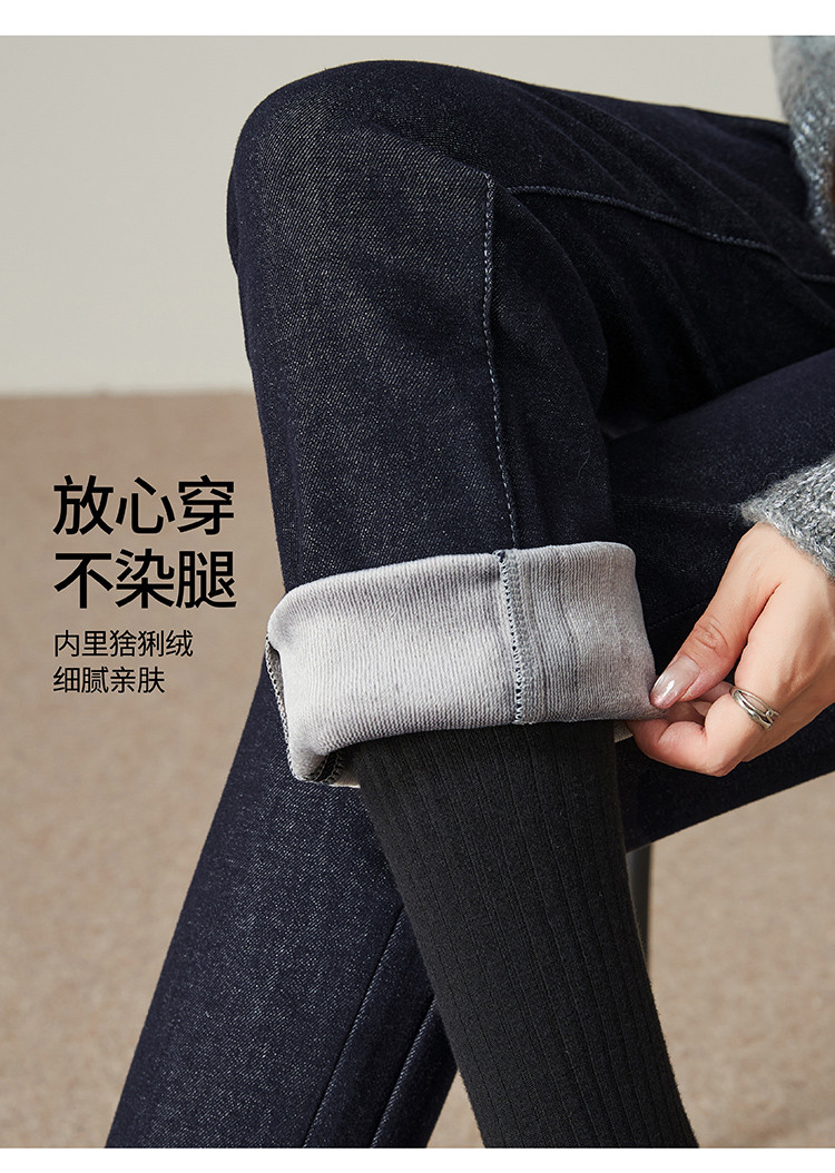 【中厚绒-烟管牛仔】逸阳冬新品不易褪色加绒加厚猞猁绒直筒裤9815